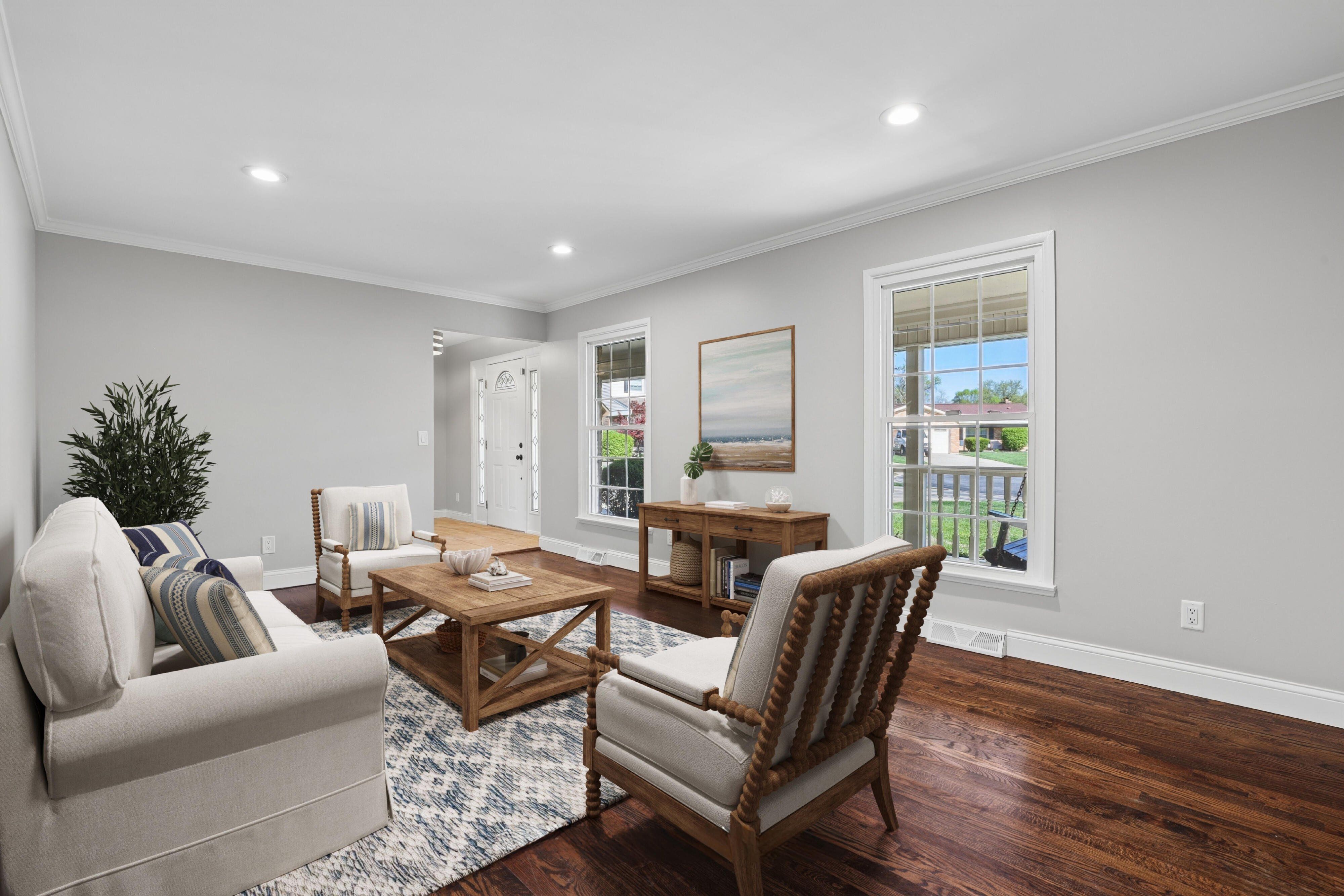 Beautifully updated 4-bedroom home on a quiet cul-de-sac lot in the desirable Golf View neighborhood with a spacious fully fenced backyard. This move-in ready home provides comfortable living with thoughtful modern updates throughout. The renovated kitchen features granite countertops, updated cabinetry, tile flooring, and an open layout for everyday living and entertaining. Hardwood floors run throughout the main living areas, and the home has been refreshed with new baseboards, interior doors, and paint. All bathrooms have been updated, including a primary bath with a custom tile shower. A finished basement adds valuable living space with a renovated bathroom and plumbing for a future bar or kitchenette. Major improvements include basement waterproofing and steel I-beam foundation reinforcement, along with a new water heater. Two-car garage and convenient access to Winton Woods Park, shopping, and highways.