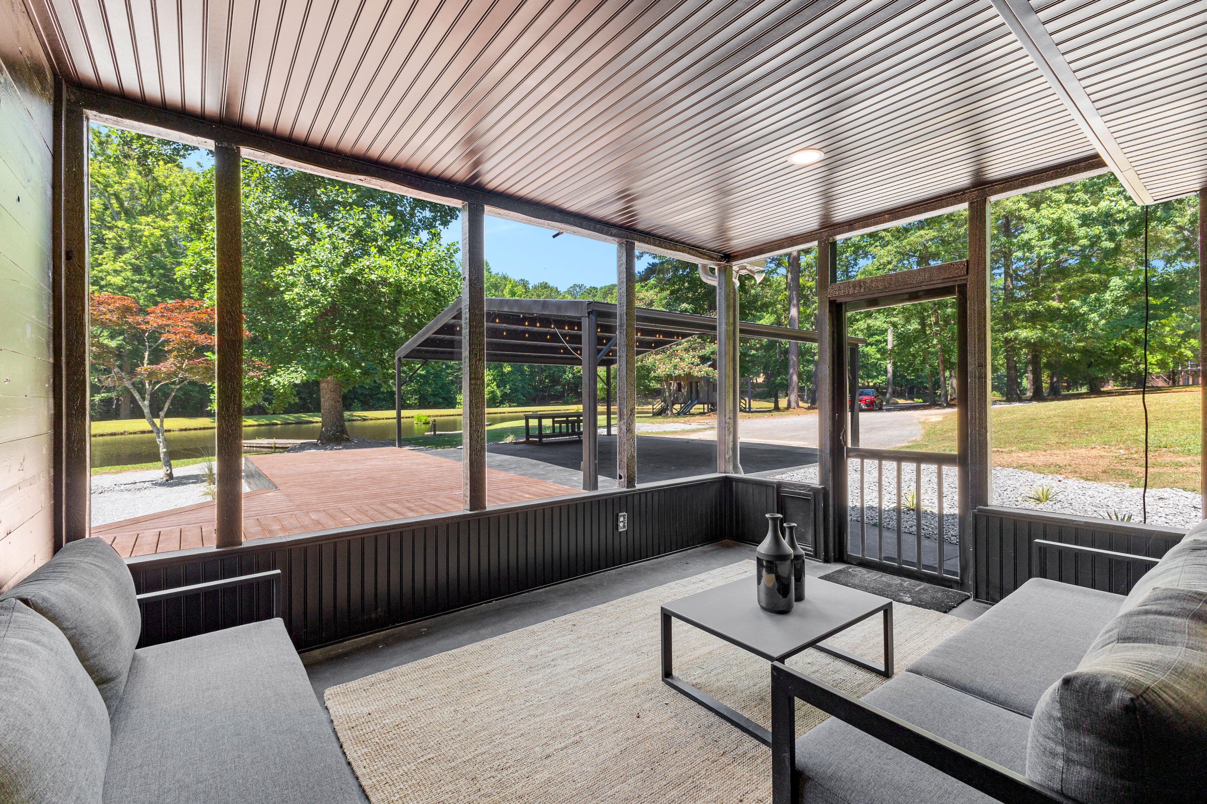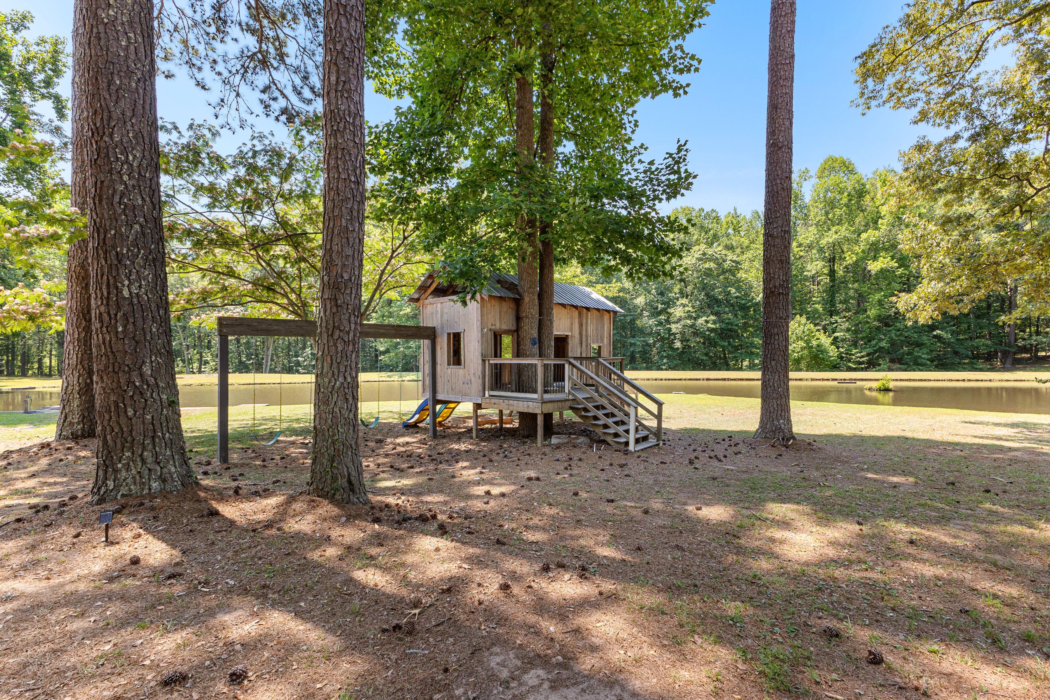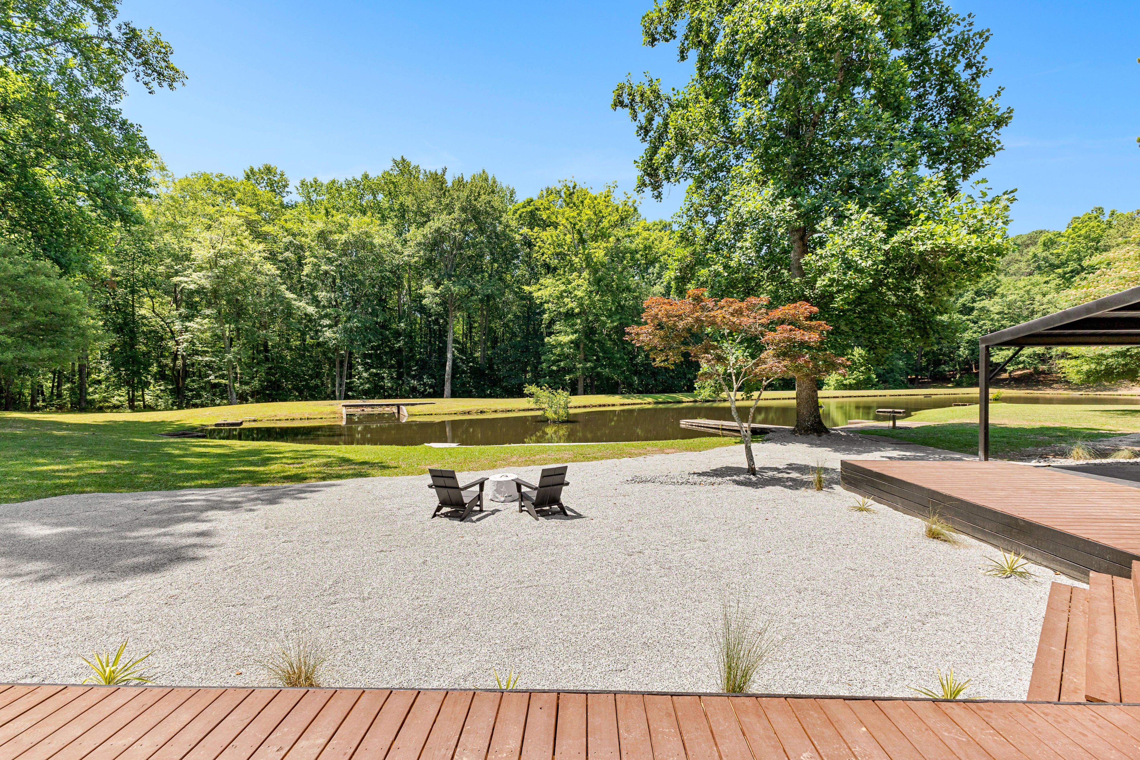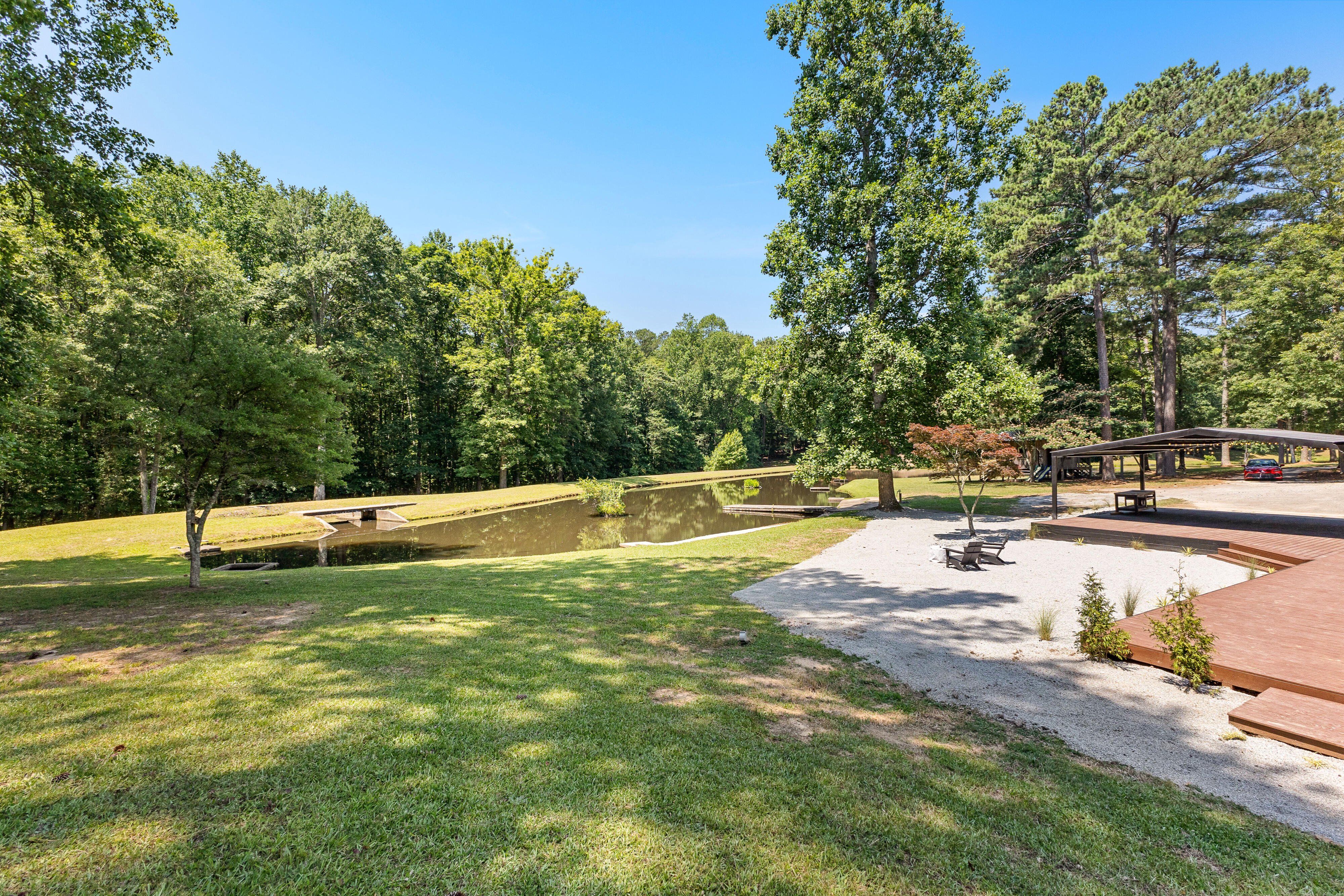 7.5 Acres | 4-Acre Stocked Pond | ~1,943 Total Sq Ft | Fully Renovated A private retreat on 7.5 acres of rolling countryside, anchored by a 4-acre stocked fishing pond, wrapped in mature hardwoods, and tucked away from the noise of everyday life. This fully renovated berm-style home sits at the heart of it all, delivering modern comfort in a setting that feels worlds away yet remains minutes from everything. Every inch has been renovated. Brand-new floors run throughout the entire home. The kitchen is outfitted with all-new appliances, fresh cabinetry, fresh tile, lighting, paint, and granite countertops. All bathrooms feature custom microcement walls and new tile throughout, creating a sleek, modern aesthetic. Every fixture in the home has been replaced. A complete new HVAC system paired with mini-split units and Nest thermostats delivers zoned, energy-efficient climate control to every room. The exterior received new paint, updated siding, and larger windows that flood the interior with natural light and frame panoramic views of the pond and acreage. The granny suite provides true flexibility — whether for extended family, aging parents, long-term guests, or a dedicated home office with complete privacy from the main living areas. It has a separate entrance but could be connected easily. This property delivers genuine privacy without isolation. Close to Trilith Studios, downtown Fayetteville, Peachtree City, and Hartsfield-Jackson International Airport. Fayette County schools. No HOA. The 7.5-acre parcel carries R2 zoning, which opens the door for future possibilities — an additional ADU, workshop, barn, or other accessory structure could further unlock the property's income or lifestyle potential. At a Glance: ~1,943 total sq ft (1,447 main + 496 granny suite) · 7.5 private acres with 4-acre stocked fishing pond · Fully renovated — new floors, kitchen appliances, microcement bathrooms, new tile, all fixtures replaced · New HVAC system + mini-splits with Nest thermostats · New exterior paint, siding, and larger windows · Granny suite with bedroom, bath, kitchenette & living area · Massive deck, hardscape entertaining area, screened porch · Full playhouse, zip line, and half-acre fenced garden/farm enclosure · 200 sq ft storage shed w/ electricity · Berm construction for superior energy efficiency & storm resistance · 2-car carport · Well water · No HOA Fayette County schools | Parcel #0711 002