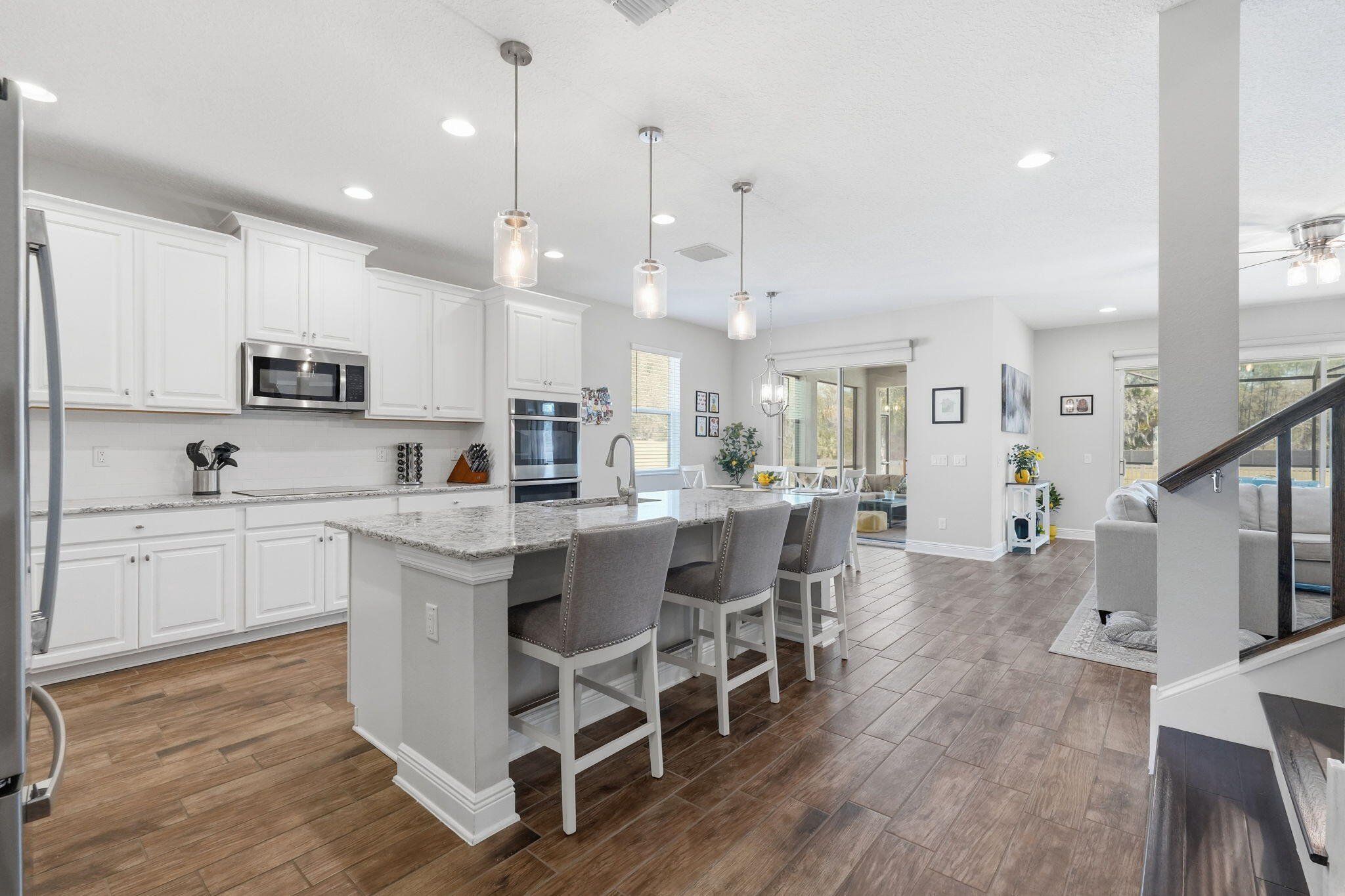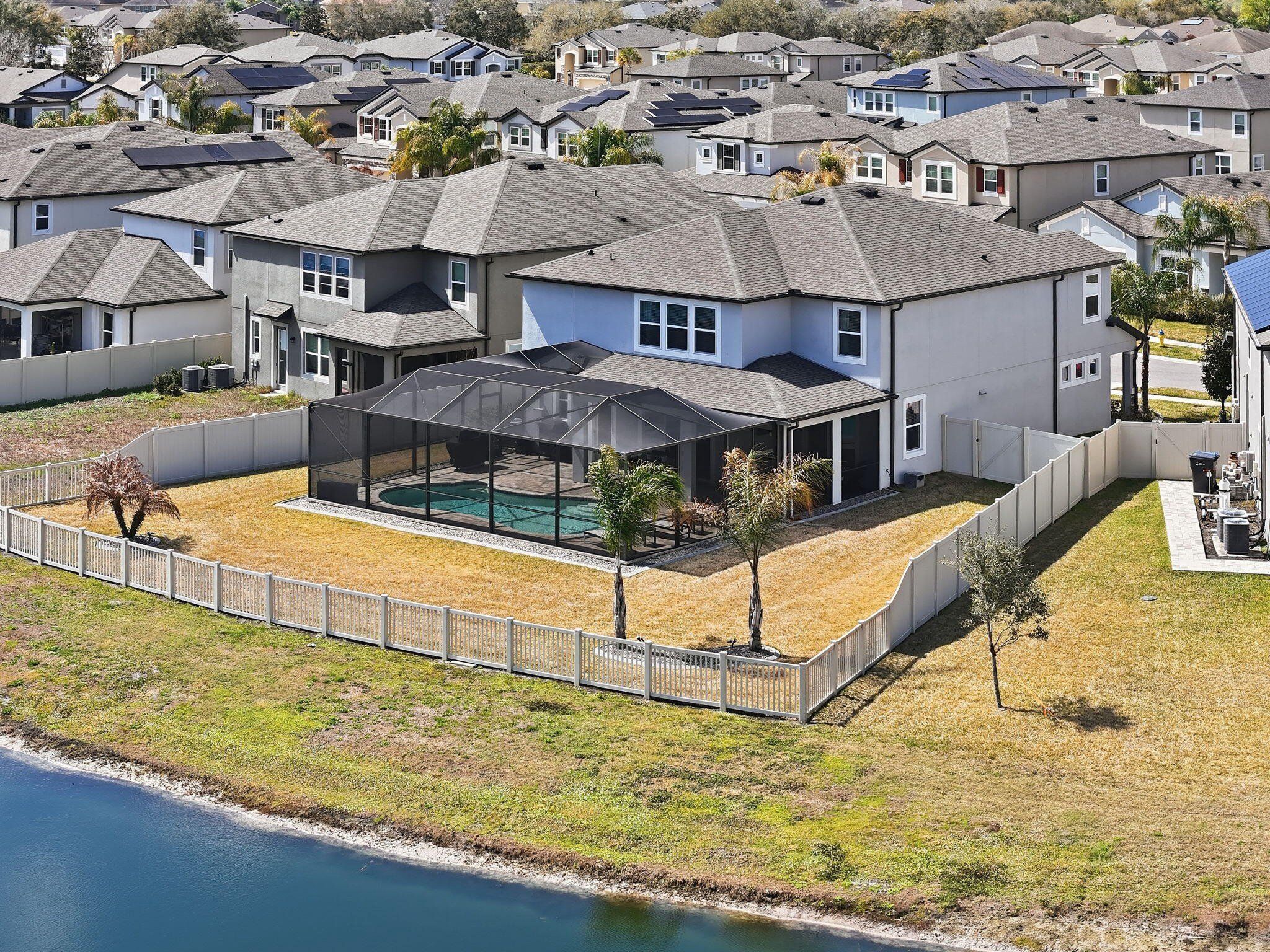 NO CDD, LOW HOA 5bed 3bath HEATED POOL home with over 3500 sqft and 3 car garage on oversized 10k square foot lot with water view. The lowest price house in Hillsborough County with those specs above built after 2020. Meticulously maintained and tastefully upgraded with accent walls, custom pantry and laundry room along with full master closet build out. Pool built in late 2021 is the perfect place to relax in the summer or winter with its heater. 10,161 square foot fully fenced lot giving you plenty of space outside of the screened pool area. 3 car garage giving you space for cars, storage or as seen in pics, a home gym also has full home water softener. Quick access to I75, Publix and restaurants less than a mile away, along with brand new county park featuring playground, splash pad, pickleball courts and dog park. Select furniture can be purchased as well.