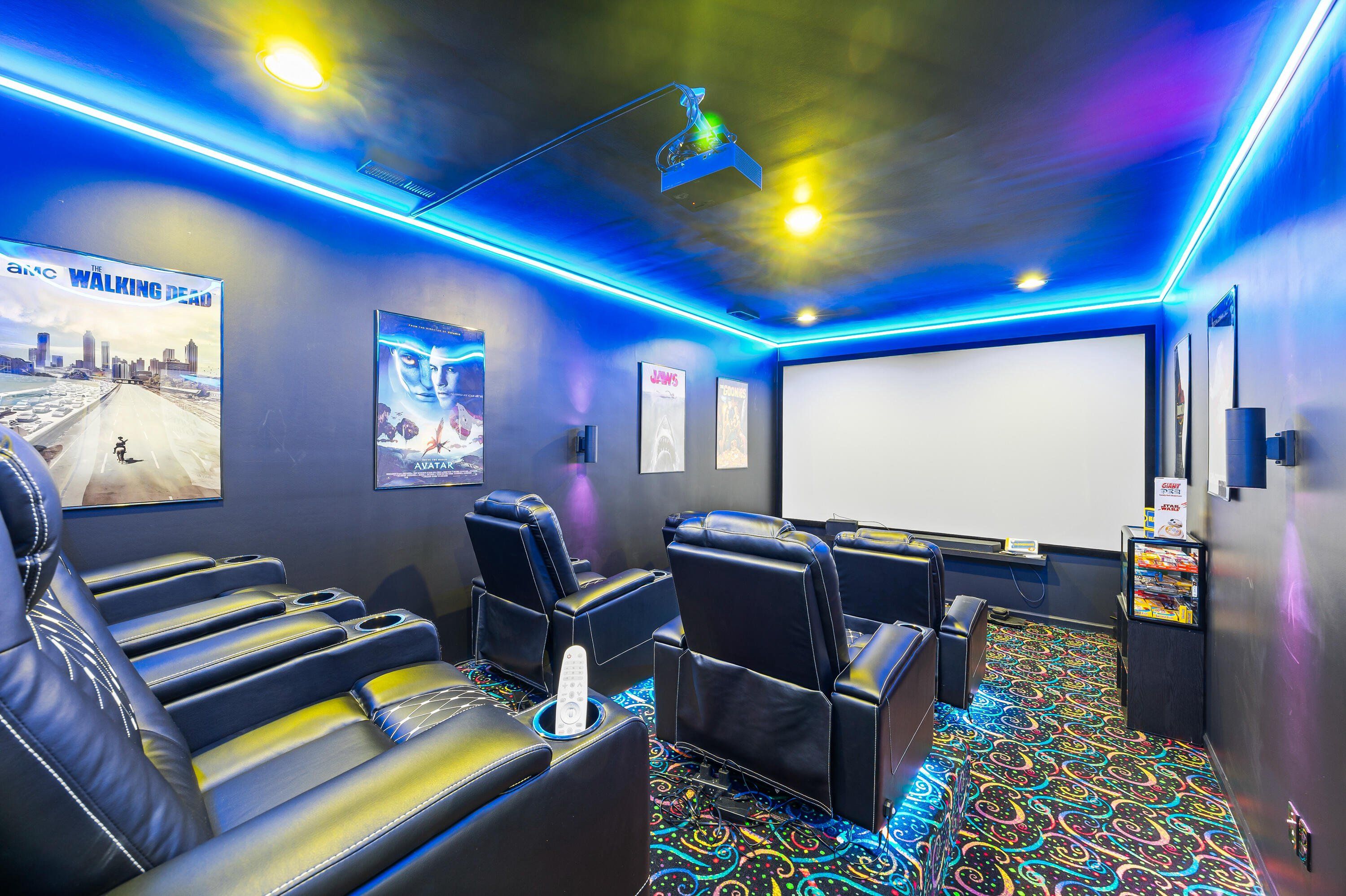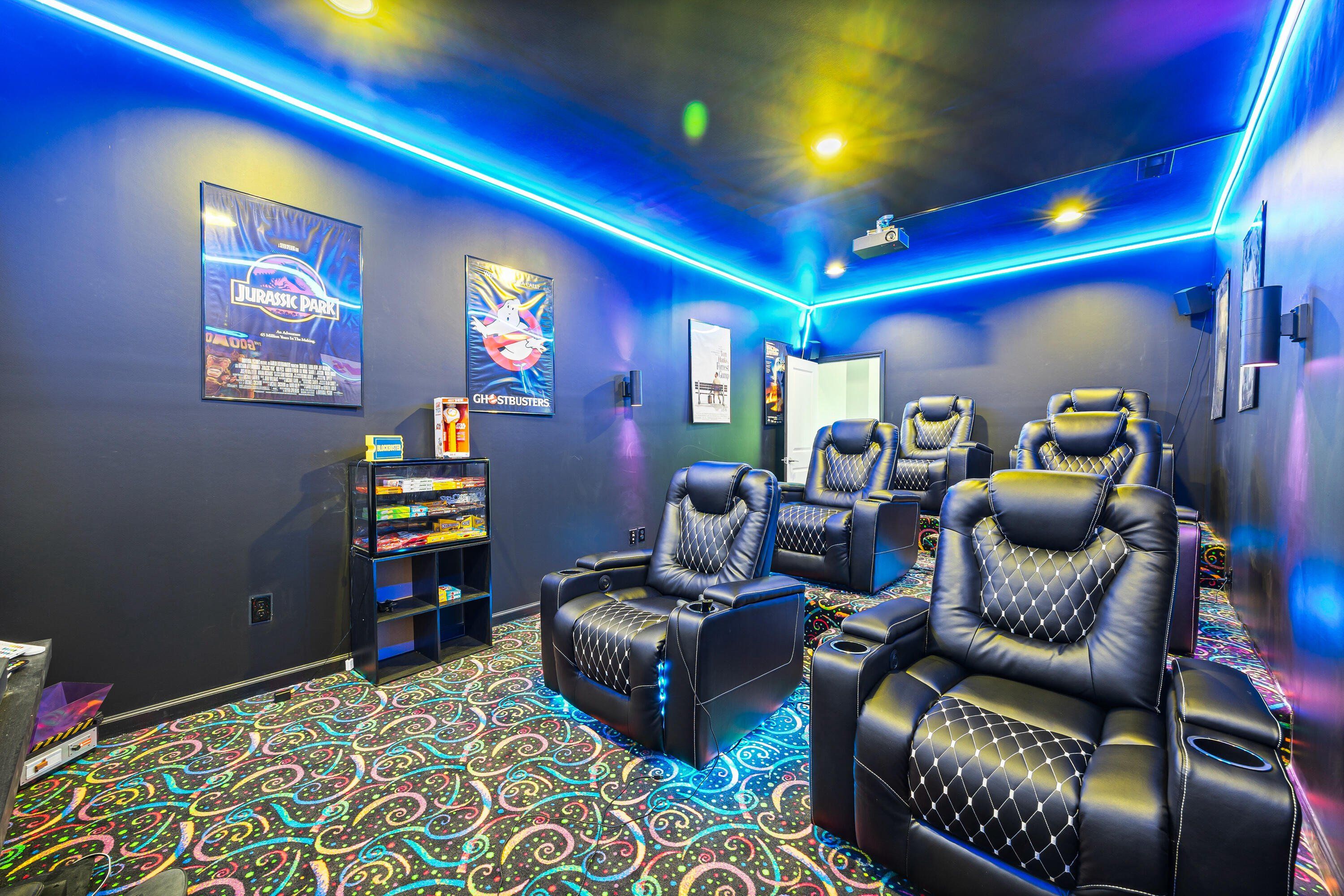Looking for a home with your own private theater. You won't find a home like this anywhere else in Charlotte with special lighting, brand new reclining chairs, theater surround sound, glow in the dark theater carpet, along with its own concession stand and theater projection system. There are several other custom features within this 5 bedroom 5 bathroom layout. Enjoy a beautiful marble stone fireplace, a double picketed fence which covers your entire backyard which is large enough to fit two swimming pools, custom designed closets, new porcelain waterproof flooring on the entire bottom floor, new wall paint and 2 EV charger stations. This house is very spacious throughout with an open floor plan and tall entryways to include a guest room and a french door office.