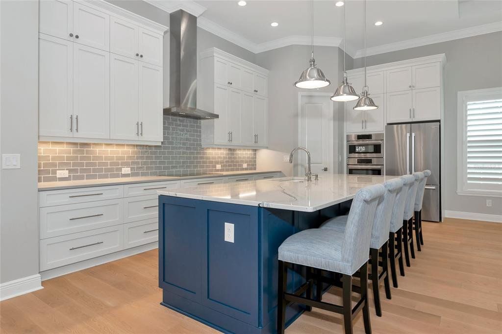 Exquisite Luxury Living in Country Club East. Welcome to this exceptional residence that seamlessly blends pristine condition, refined upgrades, and a coveted setting within one of Lakewood Ranch’s premier gated communities. This Neal Signature home was Built in 2021 and thoughtfully enhanced in 2022 and 2024, this home shows like a model and features IMPACT WINDOWS AND DOORS at both the front and rear. Meticulously maintained, every detail reflects quality and care. From the moment you arrive, the craftsmanship is evident. A grand gallery hallway with dual coffered ceilings and elegant chandeliers creates a striking first impression, drawing your eye straight through to tranquil preserve views. The open-concept design balances sophistication and comfort, with expansive windows that fill the home with natural light and showcase lush surroundings from nearly every room. The gourmet kitchen is a true showpiece, appointed with top-tier Wolf and Bosch appliances, deep-drawer cabinetry, a spacious walk-in pantry, and an oversized island that anchors the space. It flows effortlessly into the great room, making it ideal for both entertaining and everyday living, all while offering seamless indoor-outdoor connection and uninterrupted views of vibrant flowering trees and greenery. The owner’s suite serves as a private retreat, featuring direct lanai access, serene preserve views, and a spa-inspired bath with dual vanities, an oversized walk-in shower, and a custom closet that conveniently connects to the laundry room. Two guest bedrooms are tucked into their own wing, sharing a beautifully appointed bath that provides privacy and comfort for visitors. A flexible bonus room adds versatility, perfect for a home office, media room, or creative studio. Step outside and embrace the Florida lifestyle. The oversized 12’ x 27’ saltwater pool and elevated spa are surrounded by mature landscaping for exceptional privacy, while the covered lanai includes a fully equipped Lynx outdoor kitchen—ideal for entertaining or unwinding at day’s end. Additional highlights include an oversized two-car garage plus a separate third bay, perfect for a workshop, gym, or golf cart storage. Wide-plank white oak floors, custom wood ceiling accents, and premium finishes throughout underscore the level of craftsmanship typically found in far more expensive homes. Located in a maintenance-free section of Country Club East with lawn care included, this extraordinary home offers the rare opportunity to move right into a like-new residence without the wait of new construction. Schedule your private showing today and experience luxury living at its finest.