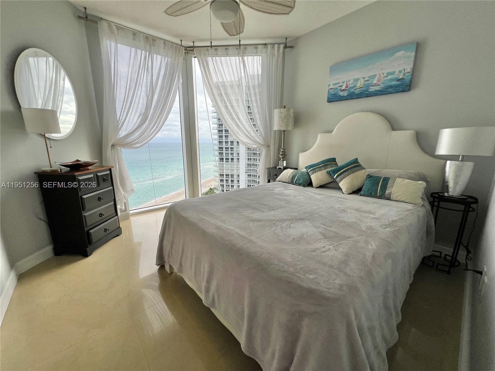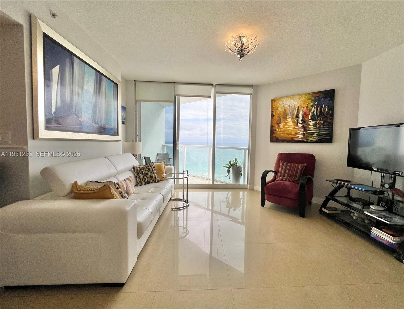 Spacious and bright furnished 2-bedroom, 2-bath residence located in the desirable oceanfront building La Perla in Sunny Isles Beach. This well-maintained unit features an open floor plan, tile floors throughout, and large windows providing abundant natural light. The living and dining areas flow seamlessly, creating a comfortable space for everyday living and entertaining. The kitchen offers ample cabinetry and modern appliances. The primary bedroom includes generous closet space and a private bathroom. The second bedroom is well-sized and ideal for guests or a home office. Enjoy beautiful ocean and city views from the balcony, perfect for relaxing and enjoying South Florida sunsets. La Perla is a full-service oceanfront building offering resort-style amenities, including direct beach access, oceanfront pool, fitness center, children’s playroom, 24-hour security, valet, and concierge services. Prime location steps from the beach and close to top-rated Sunny Isles schools, parks, shopping, and dining. Minutes to Aventura Mall and Bal Harbour Shops. Furnished. Available from April 1 for 6 months. An excellent opportunity to enjoy coastal living in Sunny Isles Beach.
