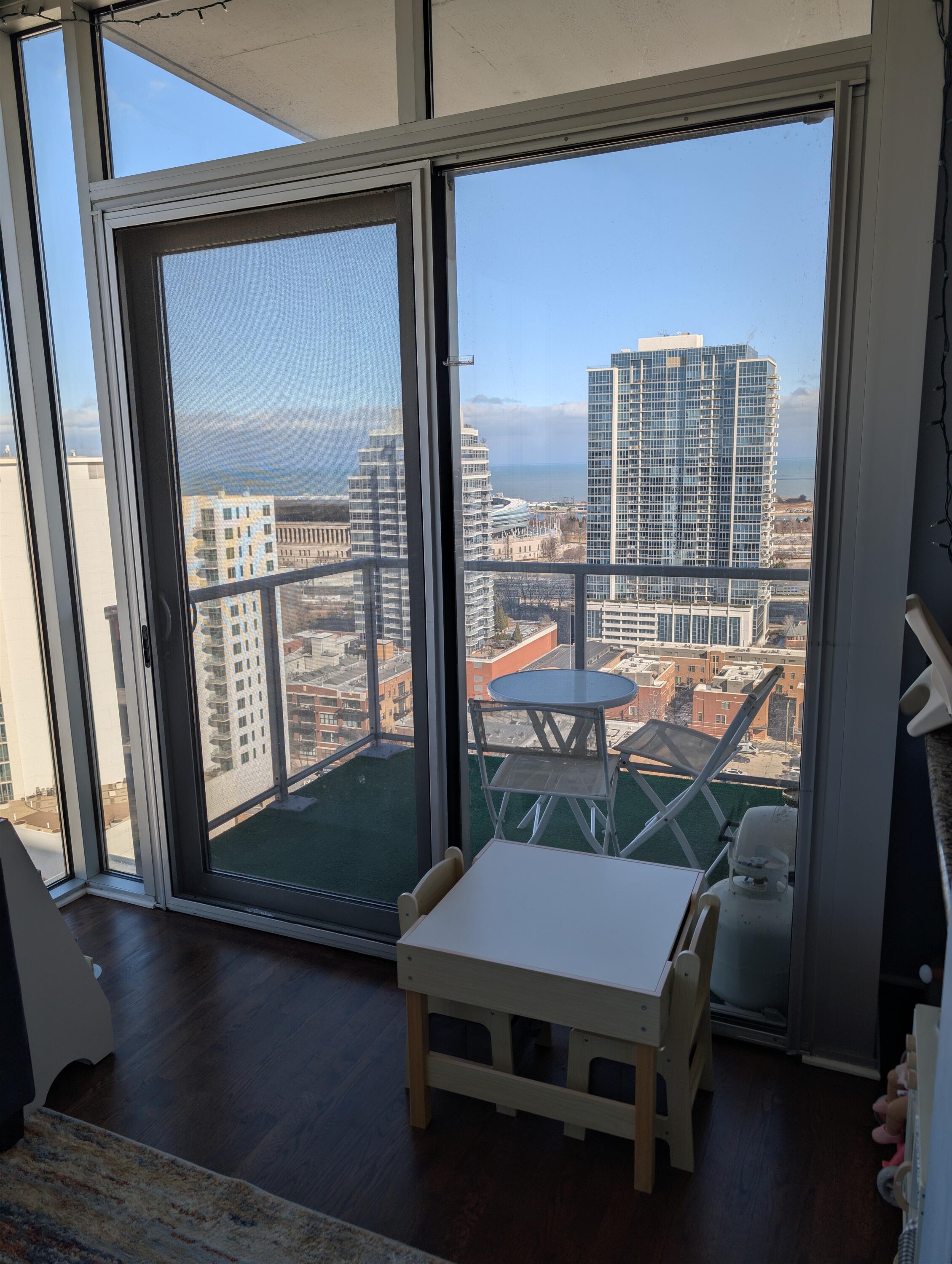 MAJOR WOW FACTOR VIEWS IN THIS SPECTACULAR 3 BEDROOM/2BATHROOM HOME! FLOOR TO CEILING VIEWS OF THE SKYLINE AND LAKE FROM EVERY ROOM! NEWLY REFINISHED HARDWOOD FLOORS THROUGHOUT. BEAUTIFUL KITCHEN OPENS UP TO LIVING ROOM/DINING ROOM. STAINLESS STEEL APPLIANCES KITCHEN. NEW MICROWAVE 2/2026.MAIN BEDROOM SUITE INCLUDES LARGE WALK-IN CLOSET, BLACK-OUT BLINDS, FULL BATH WITH DOUBLE VANITY, RAIN SHOWER AND JACUZZI TUB. GREAT SIZE 2ND AND 3RD BEDROOMS. GREAT SIZE BALCONY OVERLOOKING THE CITY AND LAKE. IN-UNIT LG WASHER/DRYER, TONS OF CLOSET SPACE, NICE LARGE FOYER MAKES THE CONDO FEEL LIKE A HOME. FIRST FLOOR PARKING DEEDED FOR $30K. WALKING DISTANCE TO MARIANO'S, LAKE, PARK, SHOPS AND RESTAURANTS! DON'T MISS!
