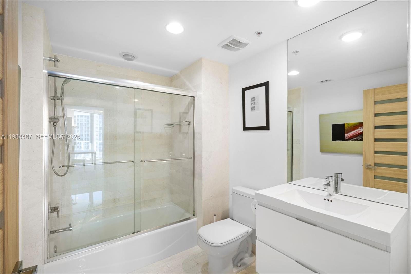 Luxury Lease Available Now! 12 MONTH MINIMUM! Chic waterfront residence at Marina Palms! Set above the marina with wide, unobstructed Intracoastal and ocean views, this 1,670 SF residence offers a calm, refined take on waterfront living in Aventura. Featuring upgraded finishes and a thoughtful coastal design framed by floor-to-ceiling windows and a private terrace overlooking the water. The split-bedroom layout enhances privacy while inviting natural light throughout the home. Interior details include electric blinds, blackout shades, drop-down ceilings with recessed lighting, custom millwork, custom doors and door frames, and a contemporary open kitchen appointed with integrated appliances and stone countertops. The primary suite serves as a peaceful retreat with a custom walk-in closet and a spa-inspired bath finished in glass and stone—all oriented toward wide water views. Practical conveniences include two assigned parking spaces and a well-managed building with no current assessments. Residents enjoy access to a full-service marina and yacht club, along with resort-style amenities including a waterfront pool deck, fitness center, spa, children’s playroom, concierge, valet, and 24-hour security. Ideally located within Aventura’s marina district, close to beaches, dining, SoLé Mia Hospital, and shopping—with Houston’s next door—Residence 1803 blends modern coastal design with the comfort and convenience of luxury waterfront living.