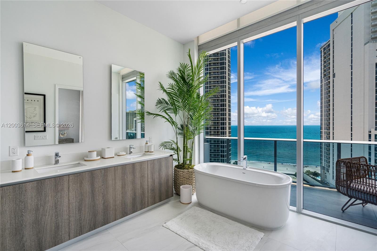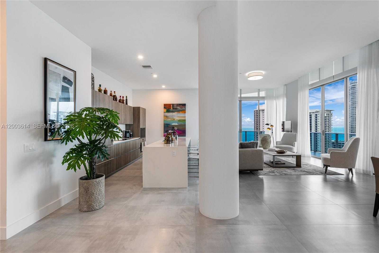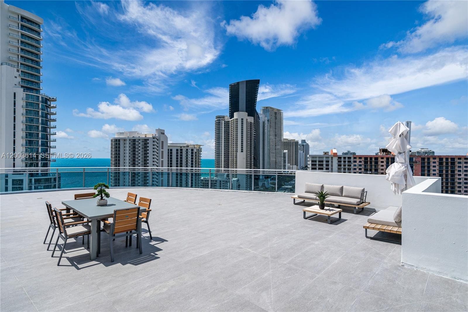 BEAUTIFUL PENTHOUSE IN AN OCEANFRONT EXCLUSIVE BOUTIQUE BUILDING WITH ONLY 63 RESIDENCES IN SUNNY ISLES. SPACIOUS 3 BEDROOMS/3.5 BATHS PROFESSIONALLY DECORATED WITH HIGH-END FURNITURE. PROPERTY FEATURES 10" HIGH CEILINGS, HURRICANE IMPACT FLOOR-TO-CEILING WINDOWS, PRIVATE TERRACES W/PANORAMIC VIEWS OF THE OCEAN & THE CITY, BIG HIS/HERS BUILT-IN CLOSET, SHOWER & FREE STANDING TUB IN MASTER BEDROOM. HIGH-END APPLIANCES, INCLUDING SUB-ZERO FRIDGE AND KITCHEN CABINETS FROM ITALKITCHEN. SPECTACULAR HUGE 2700 SF ROOF TOP TERRACE W/OUTDOOR KITCHEN FOR OUTDOOR ENTERTAINMENT.