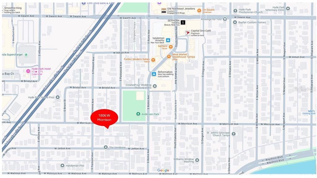 Live across from Anderson Park in Hyde Park on Morrison. This 2nd floor spacious newly renovated 1922 vintage apartment is undergoing final touches and will be available for annual lease in MAY 2026. Relax on the 20ft by 8ft covered screen front balcony overlooking Morrison and Anderson Park. Large Apt with 1175 Sqft, one bedroom one bath with fireplace, storage closets, off street parking. Water, sewer, trash, and yard maintenance included. Features include: front load washer and dryer, stainless steel appliances, granite countertops, gleaming original wood floors, tile floors, high ceilings, heavy base board moldings, picture railings, crystal door knobs, window sash, plaster walls, and very light and bright throughout! Enjoy Living in the heart of Hyde Park shopping, dining, events, and convenience to SoHo District and Bayshore Blvd, the longest linear sidewalk in South Tampa along the bay and connectivity to Davis Island and Harbour Island and downtown.