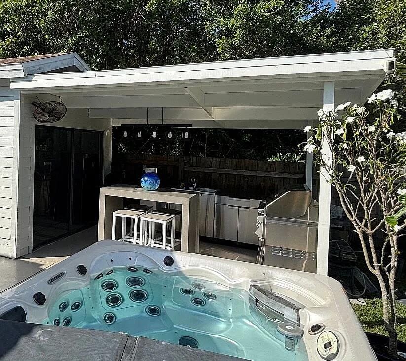 Beautifully remodeled 3BR/2BA home on a private corner lot with no neighbors on either side or behind—just peaceful preserve views. This 1,585 sq ft home features new flooring, fresh paint, a remodeled open kitchen, upgraded baths, modern fixtures, new hardware, and all new doors. Outside is an elevated travertine patio with electric screens, outdoor kitchen, storage shed styled as a sports bar, plus a large pool and hot tub. NO HOA and plenty of parking, including a 15x75 rock driveway. Low‑maintenance landscaping and a travertine entryway complete the clean, modern look.