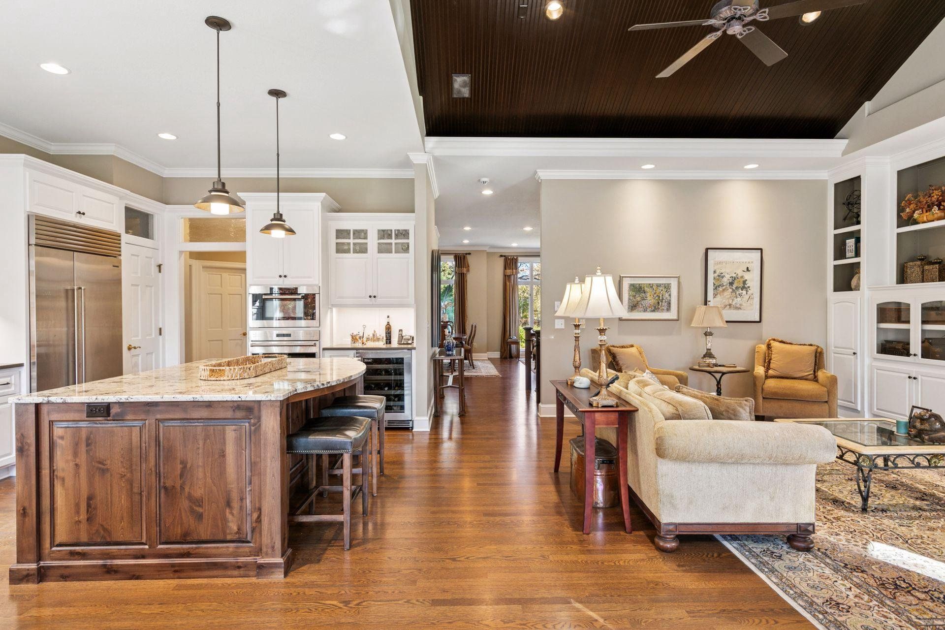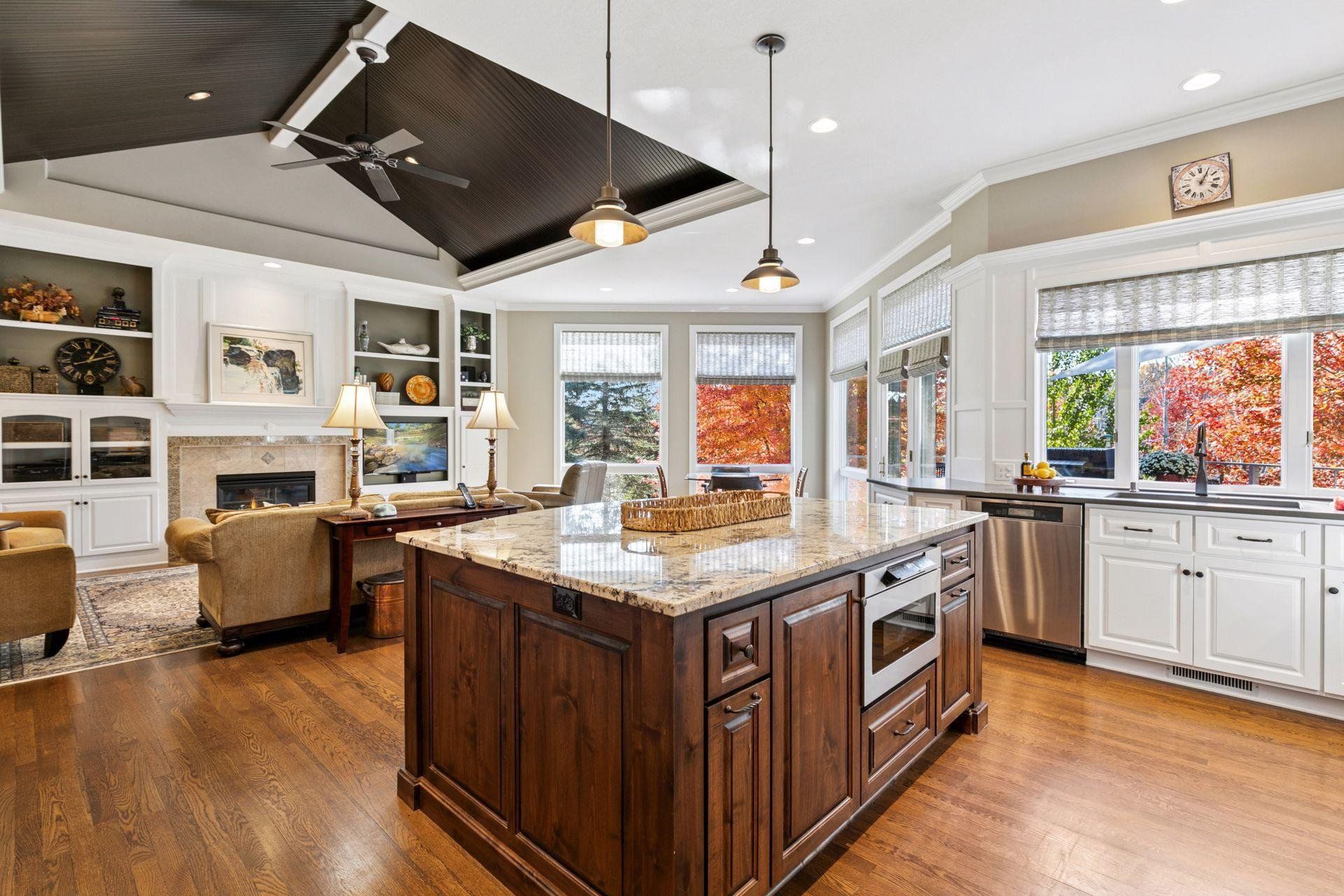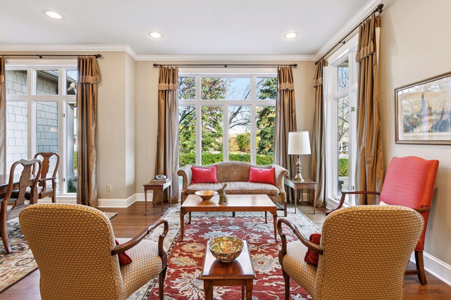 Experience refined living and unmatched privacy in this beautifully updated Lecy-built rambler, positioned on a premium lot within the gated Bearpath Golf & Country Club community. Surrounded by mature landscaping, serene views, and exceptional outdoor living spaces, this home offers the rare combination of elegance, comfort, and a true lock-and-leave lifestyle. Thoughtfully refreshed by Bruce Kading Design, the home blends timeless architecture with modern sophistication. Soaring vaulted ceilings, rich hardwood floors, and expansive windows create a warm, inviting atmosphere. The credibly equipped gourmet kitchen serves as the heart of the home, featuring custom cabinetry, Wolf and Sub-Zero appliances, a steam oven, warming drawer, and refined designer finishes that elevate both everyday living and entertaining. A private main-floor office provides an ideal workspace, while the luxurious primary suite offers a peaceful retreat with a spa-inspired bath, oversized walk-in closet, and heated floors for year-round comfort. The main level seamlessly connects to the refreshed deck and maintenance-free stairs, creating an effortless indoor-outdoor flow perfect for morning coffee or evening gatherings. The walkout lower level is designed for hosting and relaxation, featuring a spacious family room anchored by a stone fireplace, a custom wet bar, three additional bedrooms, and two baths. Step out to the screened porch—a tranquil retreat that captures the beauty and privacy of the surrounding landscape. Located within one of the Twin Cities’ premier gated communities, this home offers more than a residence—it offers a lifestyle. Bearpath residents enjoy championship golf, vibrant community events, and a welcoming environment for all ages. A perfect blend of luxury, privacy, and impeccable design. Welcome to 18709 Melrose Chase—where exceptional living begins.