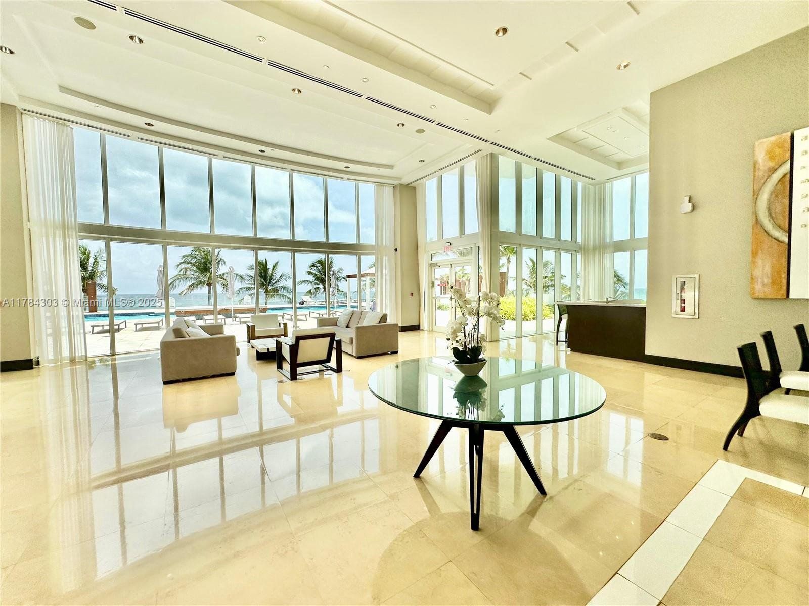 LEASED TILL 9-26-- QUICK CLOSE POSSIBLE: Stunning oceanfront home- furnished with breathtaking southeast views- over 3,000 sq ft of elegant open living space with 10 ft ceilings, 3 spacious ensuite bedrooms, with luxurious bathrooms, a large open floor plan, den, and two balconies. It is the only unit in the building with a private 2000 sq ft balcony that offers direct access to the pool area. Private elevator access, an assigned parking space, valet service, resort-style amenities including a INHOUSE BISTRO, billiards, full-service spa, state-of-the-art-gym, multiple pools, tennis and pickleball courts, full Concierge services, 5 minutes to Prada, Eataly, SKIMS, Hermès, Sephora, Zara, Aritzia, Massimo Dutti, Cartier, Saint Laurent all at Aventura Mall, airports and ports close by