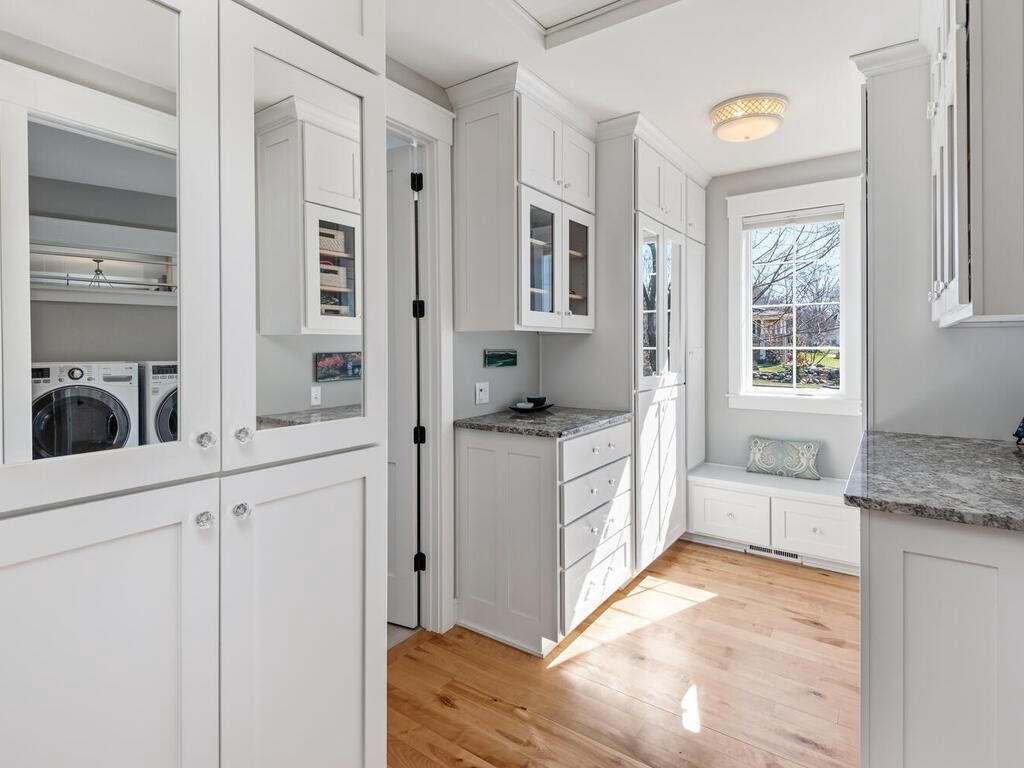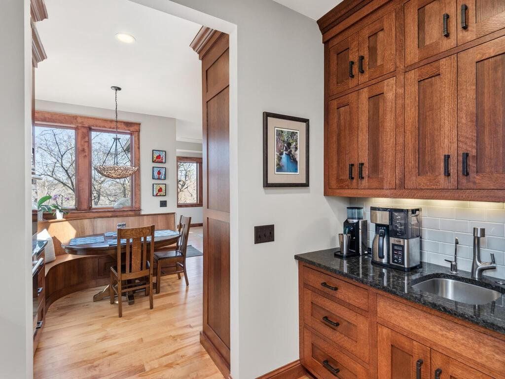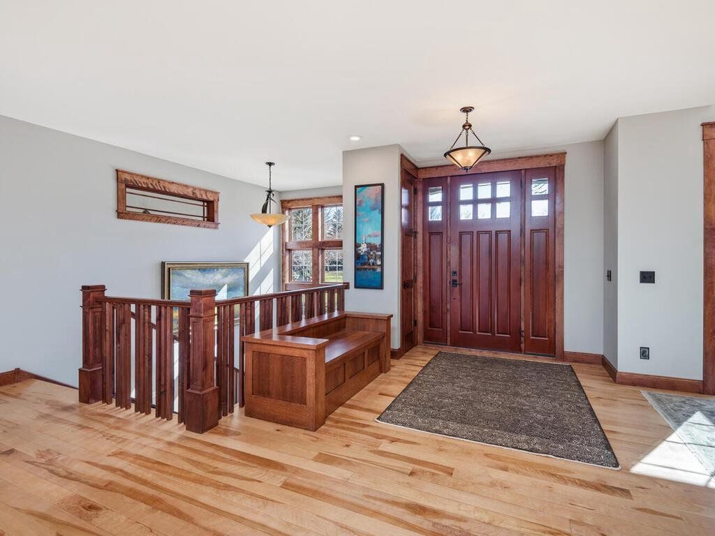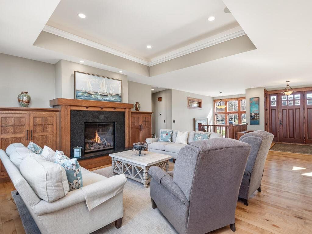 Offered for the first time, this beautiful, architecturally designed Craftsman-style rambler is set on a wooded 1.16-acre cul-de-sac lot with west-facing treetop views in the highly sought-after Wayzata School District. Built in 2014, the home was thoughtfully designed for effortless main-level living, with expansive windows that invite natural light and highlight exquisite woodwork throughout. Serving as the heart of the home, the kitchen is both elegant and highly functional, featuring custom quartersawn oak cabinetry, granite countertops, professional-grade appliances, a cozy built-in breakfast nook, and generous island seating for gatherings. The formal dining area showcases a vaulted dormer, custom buffet, and French doors to the east-facing front porch - perfect for coffee on those favorable mornings! The inviting vaulted great room is anchored by a striking fireplace and custom built-ins, while the sunroom area features a charming wood-burning stove and sweeping 180-degree woodland views. A butler’s pantry with bar sink provides a seamless & practical connection to the mudroom. The spacious primary suite is a private sanctuary, complete with a spa-inspired bath, custom-designed walk-in closet, conveniently located dedicated laundry room, and direct access to the screened porch - perfect for quietly enjoying the surrounding natural beauty. A second main-level bedroom or office with its own deck adds flexibility. The finished walkout lower level, enhanced with in-floor heat, expands the home’s livability with a large, inviting family room featuring a raised hearth stone fireplace & a wet bar kitchenette, and a dedicated theater room – all ideal for entertaining. This level also includes two bedrooms connected with a Jack-and-Jill full bath, an additional bedroom or office, and a convenient half bath. The finished workshop offers a highly functional and productive space for hobbies & creative pursuits. Above the garage, an unfinished bonus space with dormers and rough-in bath provides exceptional potential - perfectly suited for a private guest or junior suite, inspiring studio, or thoughtfully designed living space tailored to your needs. The low-maintenance exterior is equally impressive, featuring a 7-zone irrigation and drip system that supports lush, well-established perennial landscaping, invisible pet fencing, and a hydronic snowmelt system that ensures the driveway, front steps, and welcoming front porch remain easily accessible year-round. This exceptional home is ideally located just 2.5 miles from downtown Wayzata, near Lake Minnetonka, and a short jaunt to a vibrant array of dining/retail options. With easy access to Hwys 394 & 494 for a smooth commute to downtown Minneapolis, you’ll love the vibrant city & diverse cultural attractions that it’s known for.
