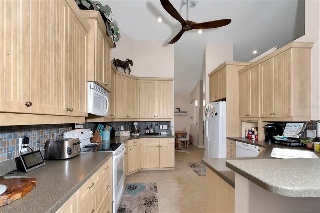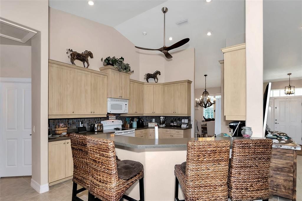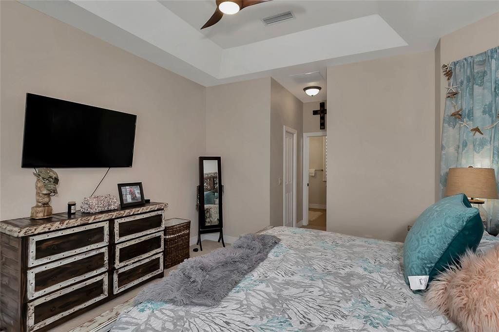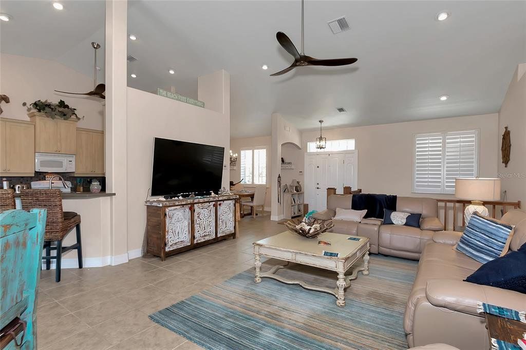 Interior Features: Ceiling Fan(S), Eating Space In Kitchen, Kitchen/Family Room Combo, Living Room/Dining Room Combo, Open Floorplan, Pest Guard System, Solid Surface Counters, Solid Wood Cabinets, Split Bedroom, Stone Counters, Thermostat, Thermostat Attic Fan, Tray Ceiling(S), Vaulted Ceiling(S), Walk-In Closet(S), Window Treatments