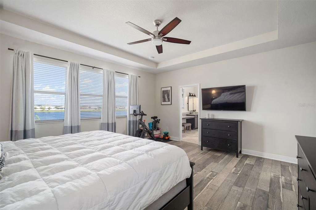 Welcome to Long Lake Ranch, Tampa Bay’s award-winning community in Lutz! This beautiful lakefront 4BR + Loft, 3.5BA, 2,643 sq ft home sits on a premium lot within an A-rated school zone and offers the best of Florida living. The open-concept layout features a gourmet kitchen with Cambria quartz counters, large island, 42" white cabinetry, Whirlpool Gold Series appliances, and double oven. A spacious family room flows to an extended covered lanai overlooking tranquil lake views—perfect for entertaining or unwinding. The owner’s suite offers a tray ceiling, oversized walk-in closet, and spa-inspired bath with dual vanities and frameless shower. A private en-suite bedroom is ideal for guests. Residents enjoy resort-style amenities including a pool with splash zone, tennis and basketball courts, dog park, playgrounds, and scenic picnic areas. Long Lake Ranch surrounds a 40-acre lake for fishing and kayaking, with acres of lush conservation and wetlands. Conveniently located near shopping, dining, golf, and beaches with easy access to SR-54, Suncoast Parkway, US-41, I-75, and Tampa International Airport. Experience lakefront living in a vibrant, family-friendly community—move-in ready and beautifully maintained!