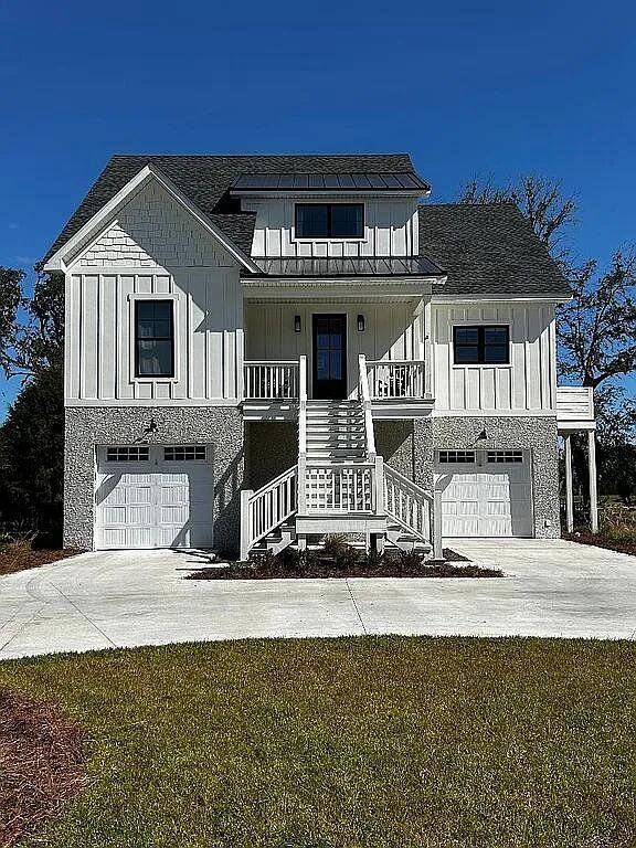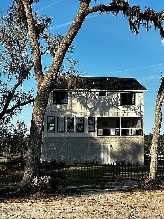 Custom Coastal Creek Construction home featuring four bedrooms and three and one half baths overlooking the 16th green of the Sanctuary Golf Club (sanctuary golf club) and the marsh beyond. Completed in December 2024 with fenced back yard for pets, two electric fireplaces, screened back porch, wide LVP flooring throughout, elevator to main floor and much more. Walk to the golf clubhouse for your tee time, lunch or an afternoon cocktail.. HOA dues of $100 per month cover all road maintenance as well as amenities that include pool, tennis/pickleball courts, River House, and work out facility. Last Opportunity for a deal.