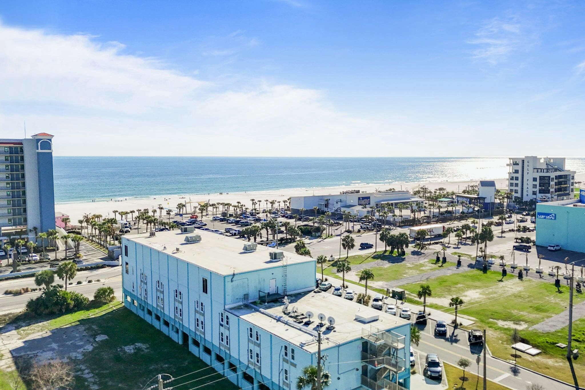 Beautifully remodeled condo in the heart of Gulf Shores at 200 E Beach Blvd, just across the street from the public beach and within walking distance to The Hangout, Pink Pony, restaurants, shopping, and entertainment. This prime location provides outstanding convenience and beach access, with a shorter walk to the sand than some beachfront properties. Interior updates include granite countertops, built-in appliances, porcelain wood-look tile, shiplap wall accents, recessed lighting, and a modern glass tile shower with built-in teak seat. The unit also features an eat-in kitchen, comfortable memory foam mattress, leather sleeper sofa, TV, covered parking, and a view of the beach. Ideal as a primary residence, second home, or investment property. Turnkey, stylish, and centrally located, this condo is an excellent opportunity to enjoy Gulf Shores living.