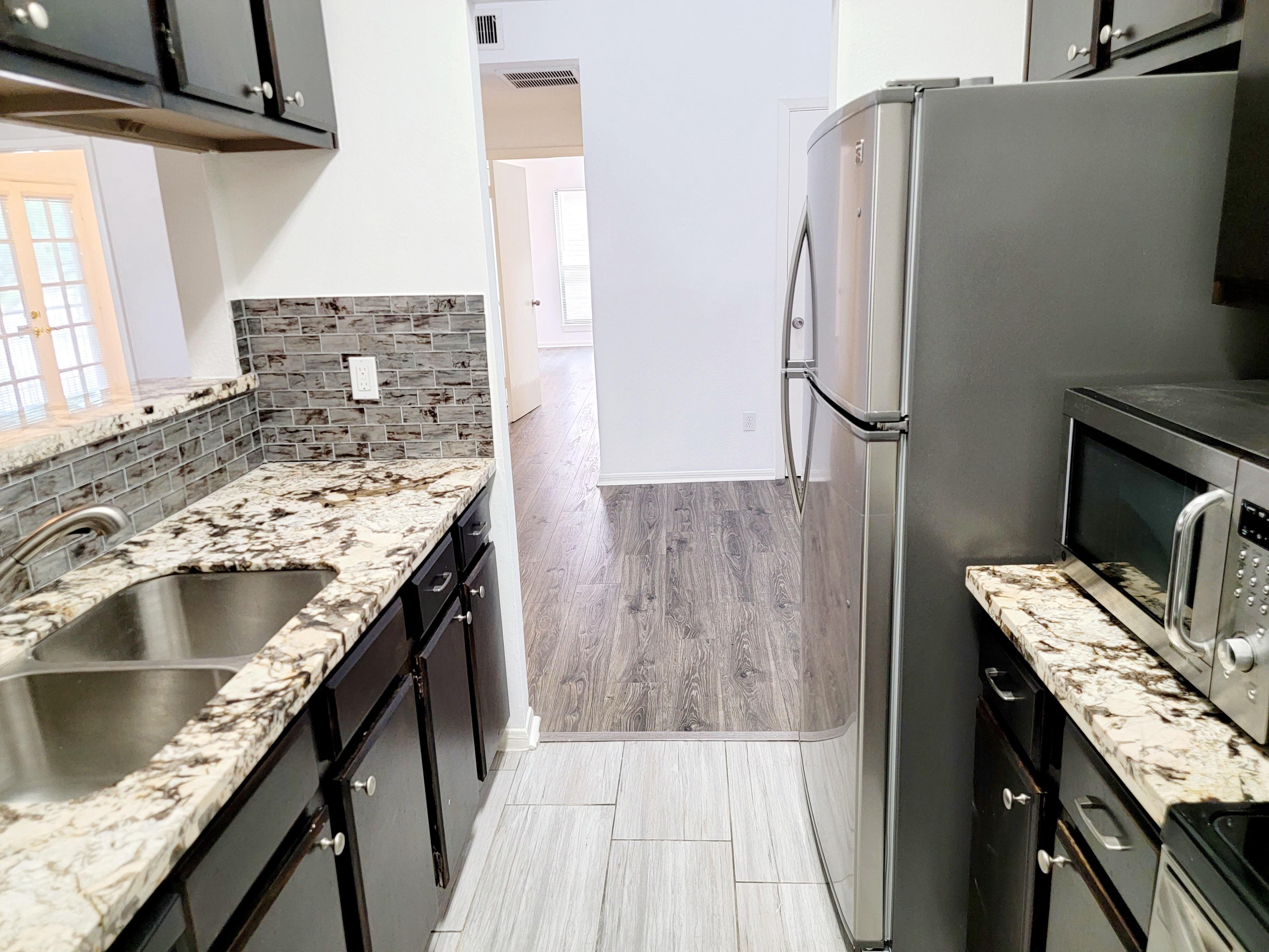 Prime location near the Galleria, restaurants, HEB, and the Memorial/I-10 corridor. Renovated kitchen with stunning granite countertops and stainless steel appliances. High ceilings with natural light throughout the condo. Large primary bedroom with plenty of room for a king sized bedroom set, a large walk-in closet, and French door access to a spacious balcony with beautiful views. The secondary bedroom also has balcony access and could make a great study or work-out room. There is ample storage space with two closets in the living room and an additional storage closet on the balcony. Covered parking is a short distance from your front door. The neighborhood is well maintained and residents have access to the pool, and green spaces. New A/C installed in 2022. Washer and Dryer included. Come tour this prime location condo today!