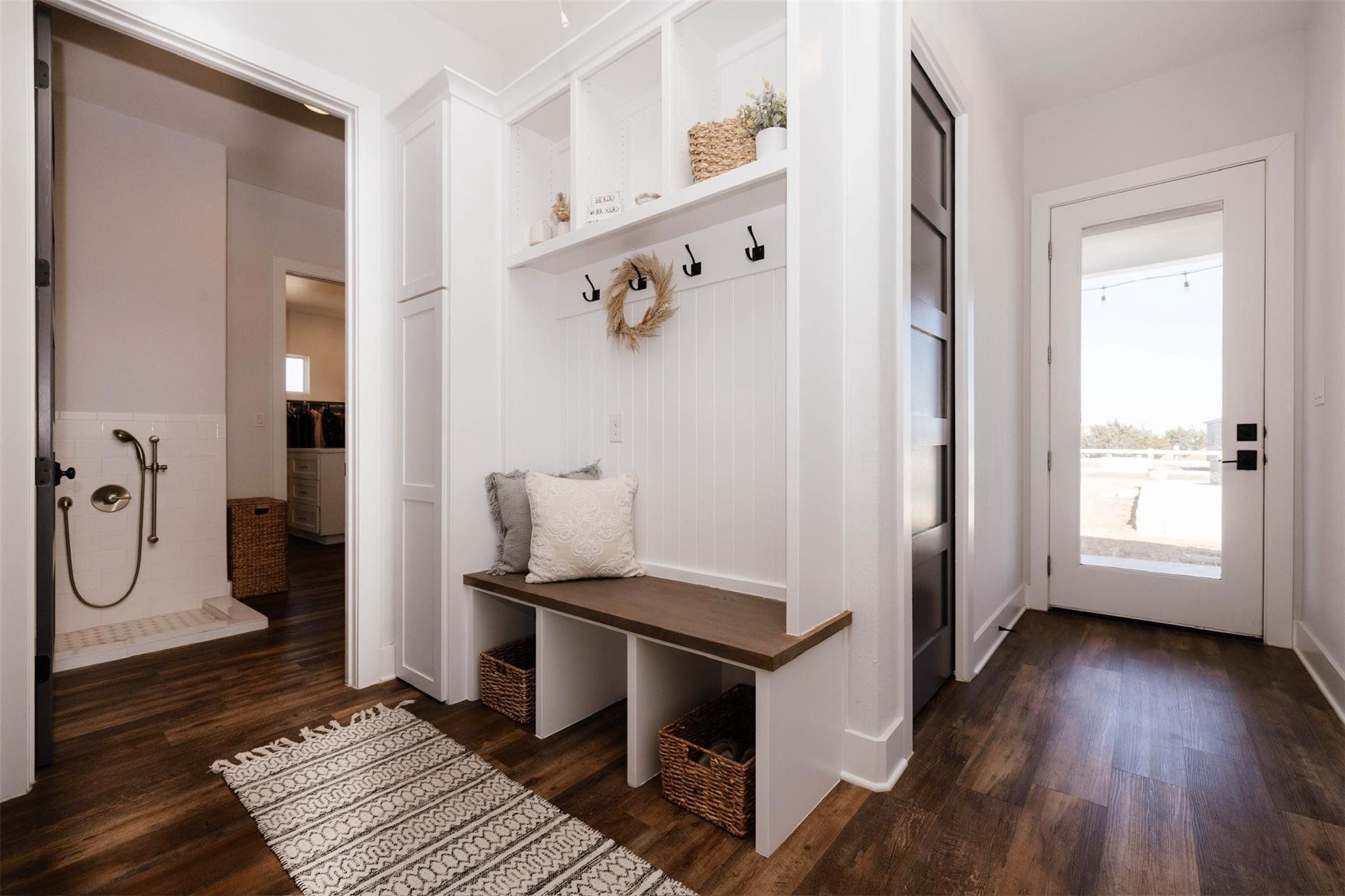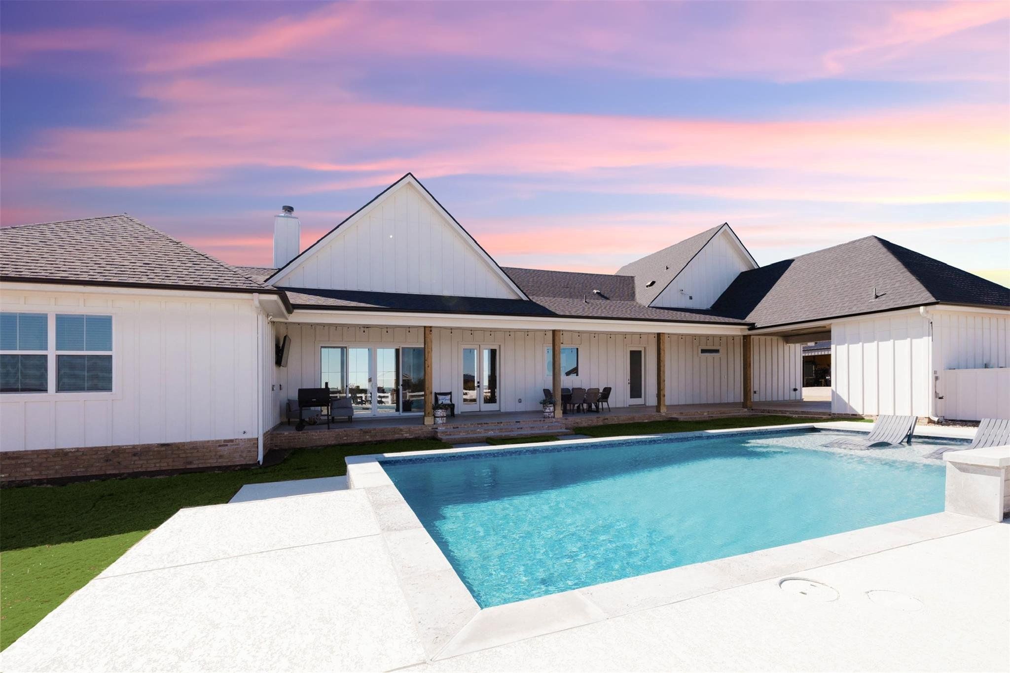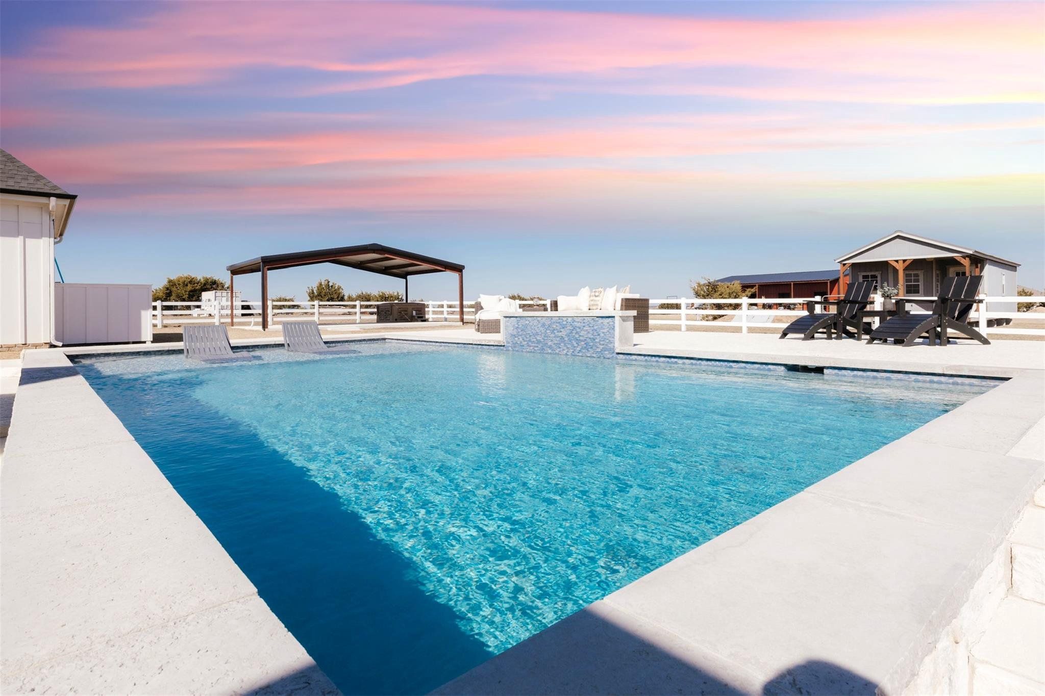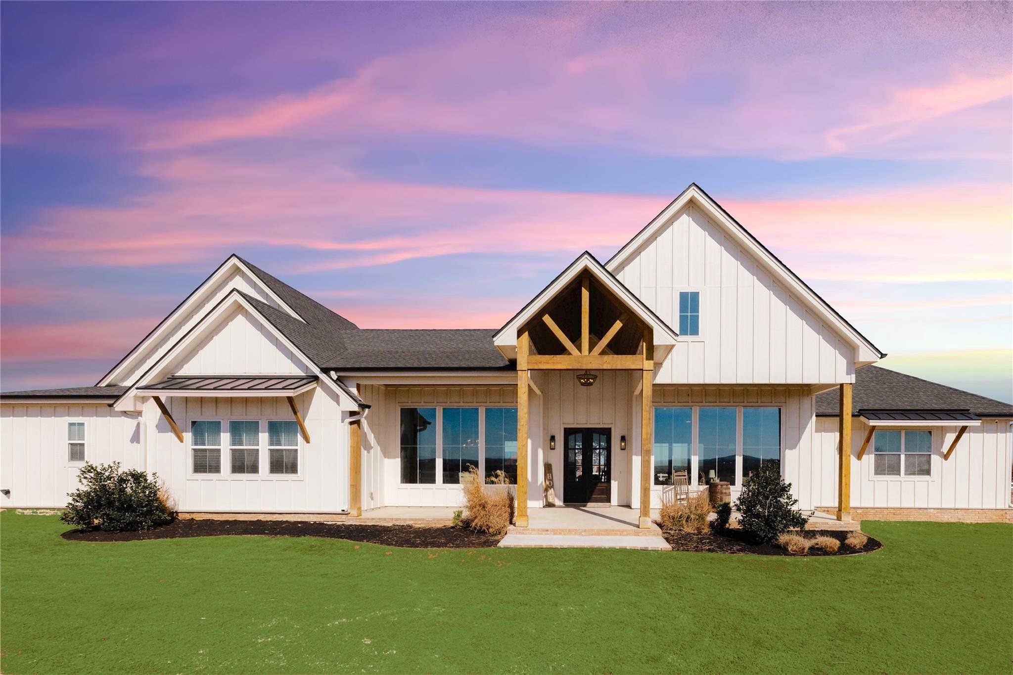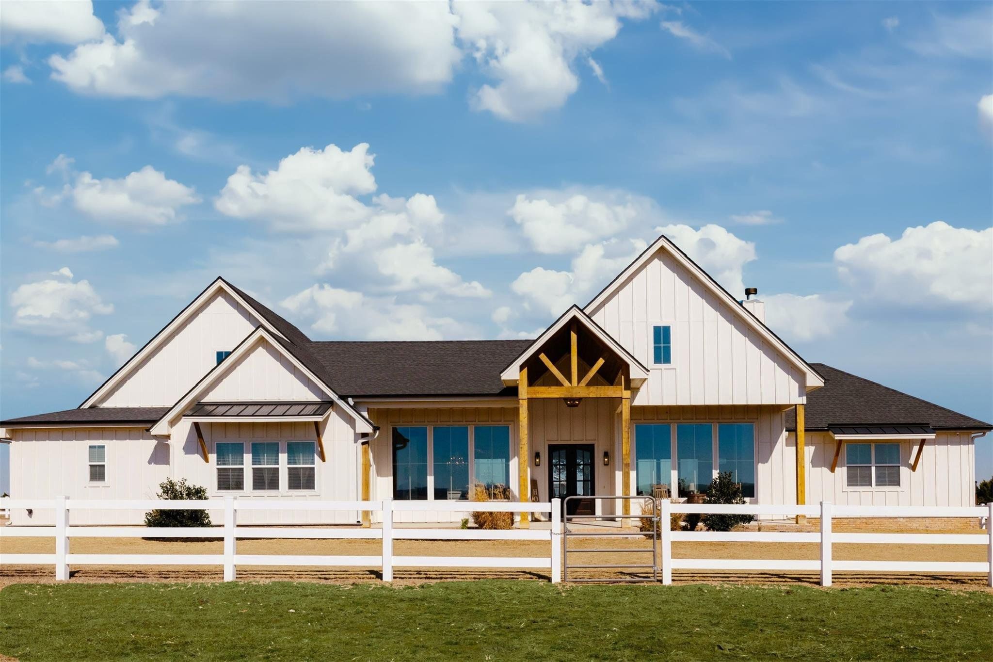 Tucked away on 11 pristine acres in a Liberty Hill, TX gated community, this modern farmhouse is the perfect fusion of luxury, functionality, and rustic charm. With 3,100 square feet of single-story living, this home offers three spacious bedrooms plus a versatile flex/study space, ensuring comfort for both work and relaxation. Every bedroom is a private retreat, complete with its own full bath, while the primary suite elevates the experience with double vanities and separate his-and-hers toilets—a rare and thoughtful touch. The heart of the home is a gourmet kitchen, where sleek quartz countertops and LVP flooring complement the home’s warm, modern aesthetic. Step outside, and the possibilities are endless. A pavilion awaits for outdoor entertaining, overlooking the lush 100% Bermuda grass lawn, sustained effortlessly by a full sprinkler system. For equestrian enthusiasts, the property boasts a 36x48 horse barn with four stalls, complete with lean-tos for trailer parking, a roping arena, and ample open space for grazing. Need more room? The 1,800 sq. ft. shop provides endless potential for hobbies, storage, or a workspace. There's even an in-ground storm shelter too! This is more than a home—it’s a lifestyle. A place where serenity meets sophistication, where wide-open Texas skies frame your everyday views, and where the possibilities stretch as far as your imagination. No HOA! Welcome to 201 Gatlin Ranch Rd—your personal slice of country paradise.
