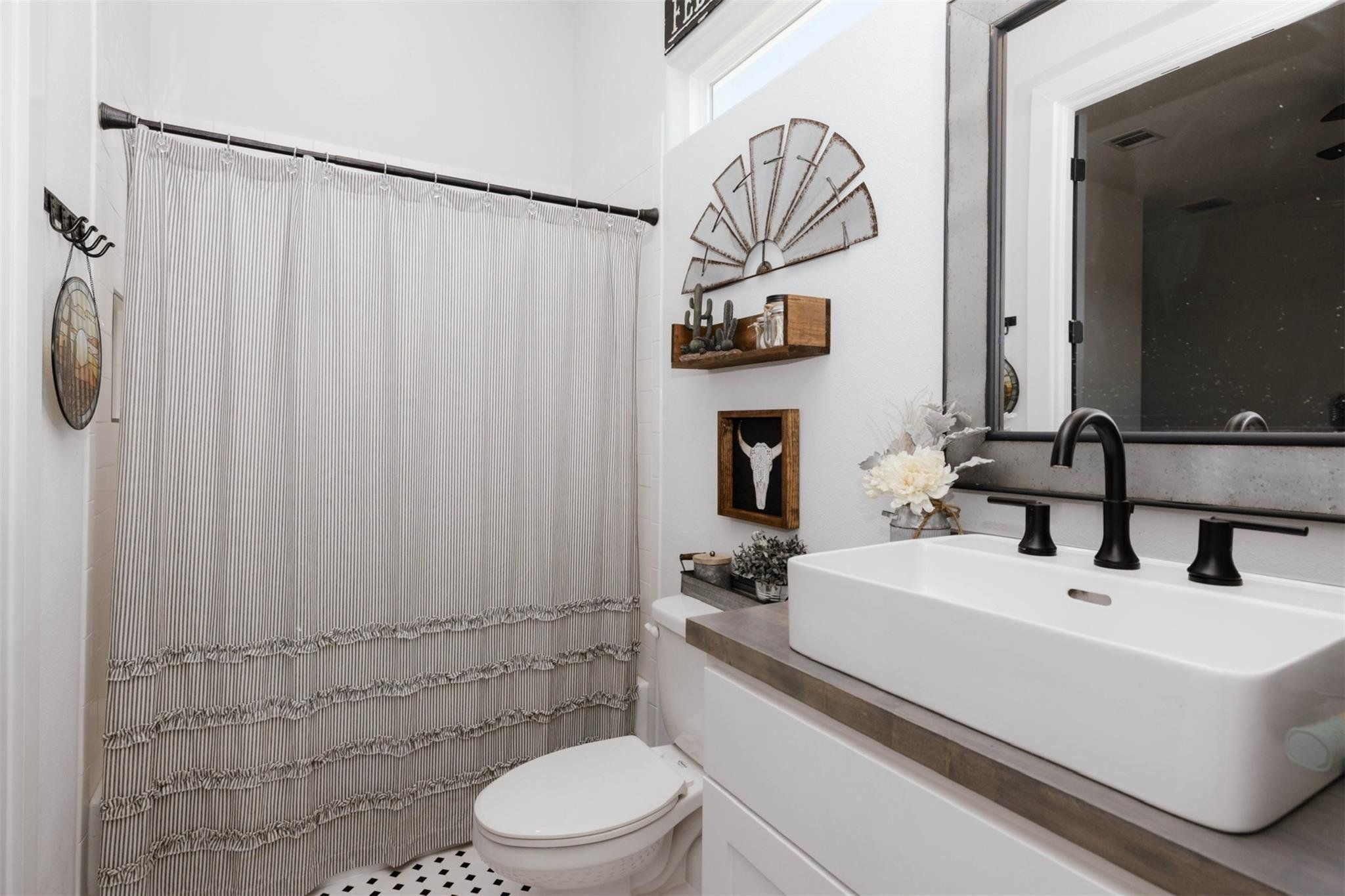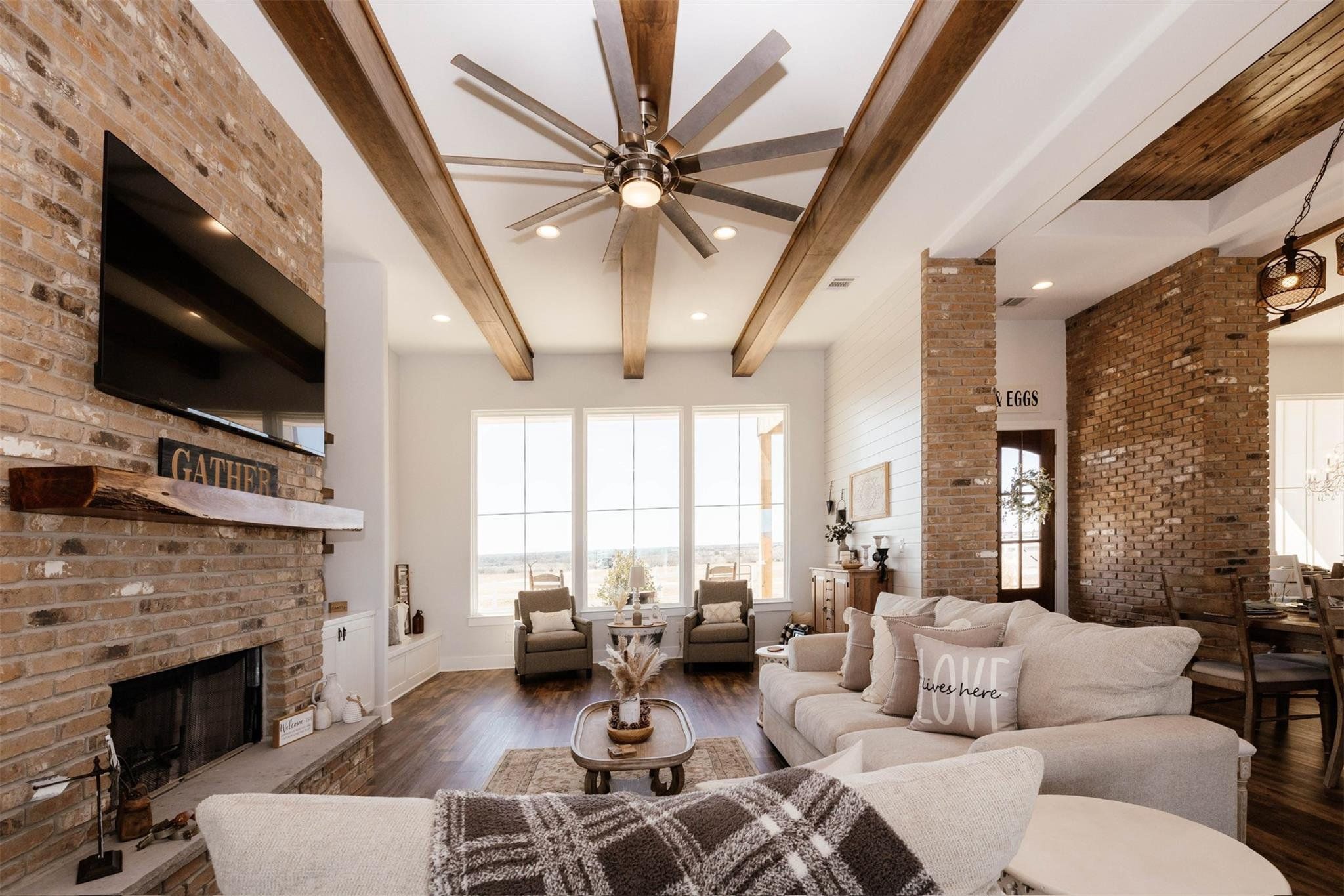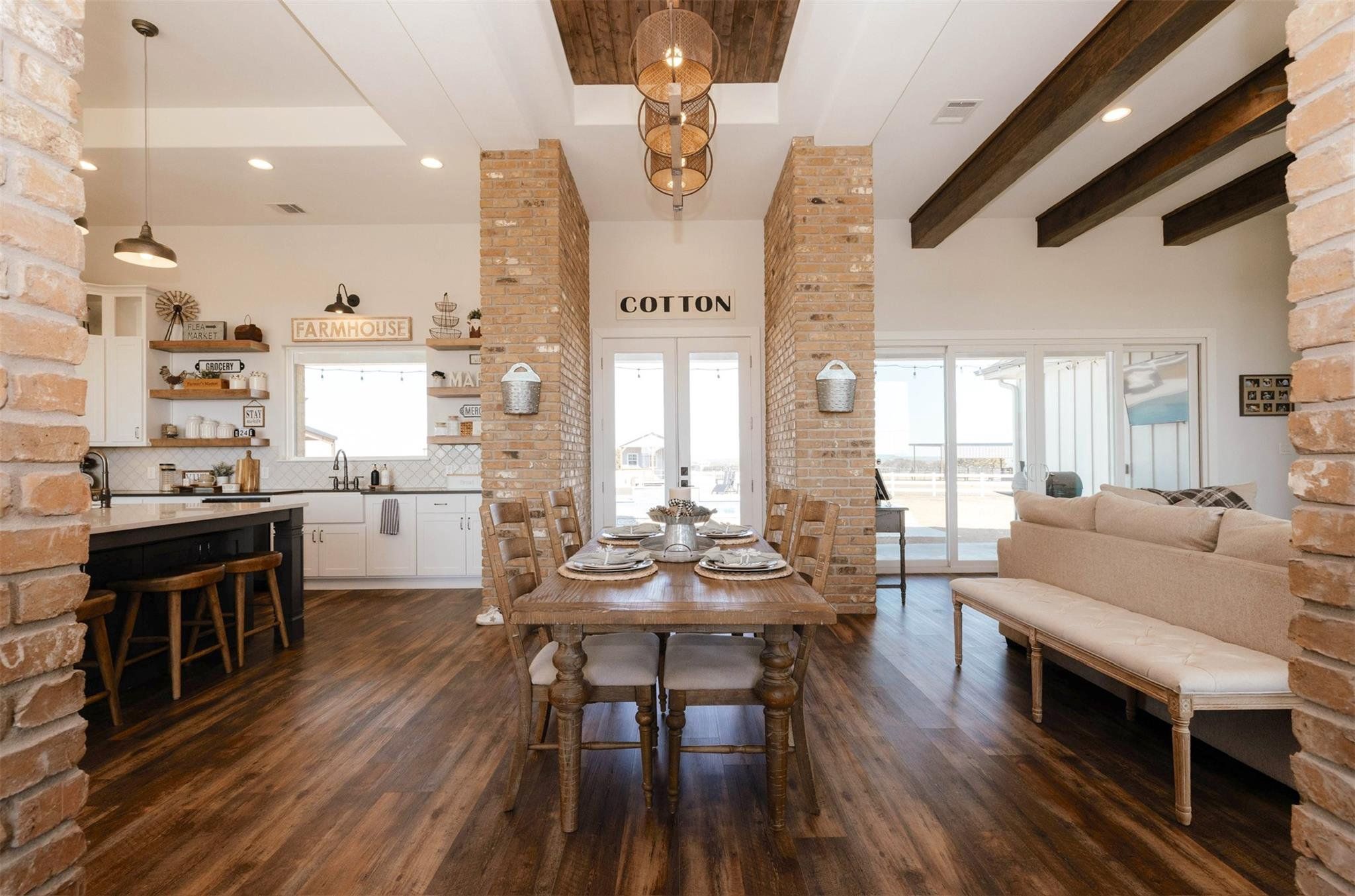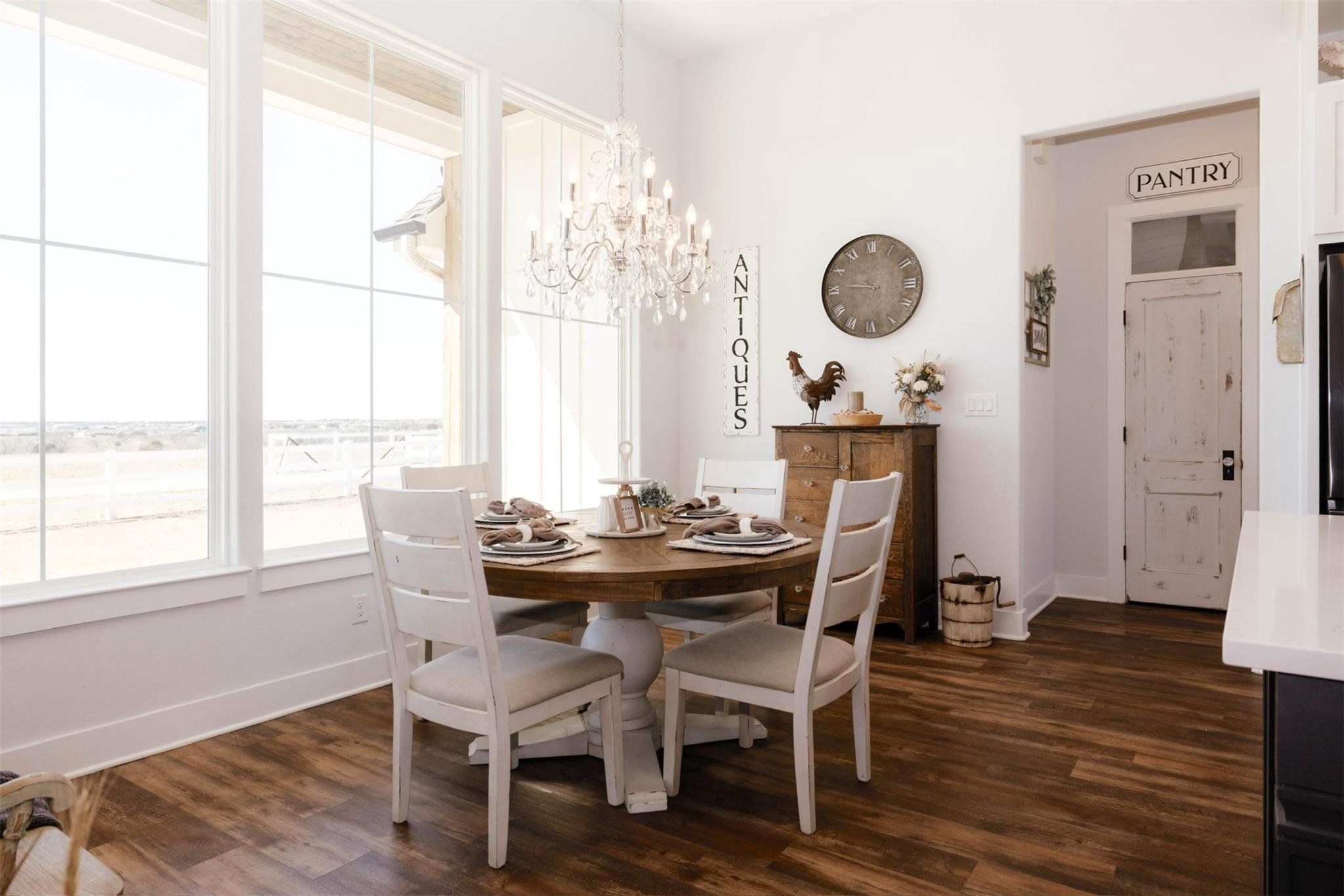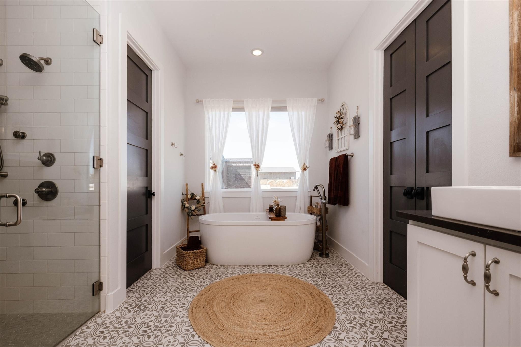 Tucked away on 11 pristine acres in a Liberty Hill, TX gated community, this modern farmhouse is the perfect fusion of luxury, functionality, and rustic charm. With 3,100 square feet of single-story living, this home offers three spacious bedrooms plus a versatile flex/study space, ensuring comfort for both work and relaxation. Every bedroom is a private retreat, complete with its own full bath, while the primary suite elevates the experience with double vanities and separate his-and-hers toilets—a rare and thoughtful touch. The heart of the home is a gourmet kitchen, where sleek quartz countertops and LVP flooring complement the home’s warm, modern aesthetic. Step outside, and the possibilities are endless. A pavilion awaits for outdoor entertaining, overlooking the lush 100% Bermuda grass lawn, sustained effortlessly by a full sprinkler system. For equestrian enthusiasts, the property boasts a 36x48 horse barn with four stalls, complete with lean-tos for trailer parking, a roping arena, and ample open space for grazing. Need more room? The 1,800 sq. ft. shop provides endless potential for hobbies, storage, or a workspace. There's even an in-ground storm shelter too! This is more than a home—it’s a lifestyle. A place where serenity meets sophistication, where wide-open Texas skies frame your everyday views, and where the possibilities stretch as far as your imagination. No HOA! Welcome to 201 Gatlin Ranch Rd—your personal slice of country paradise.