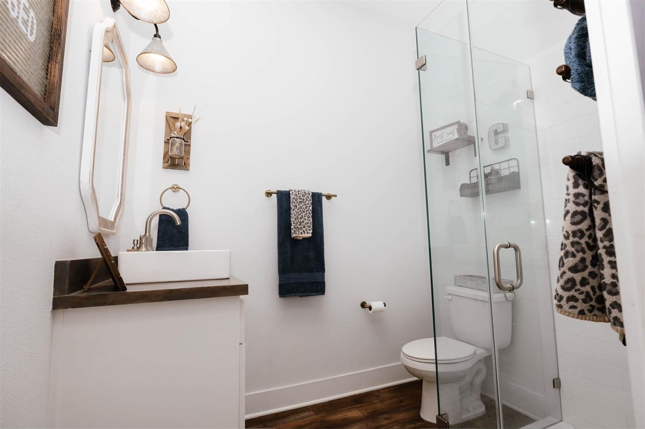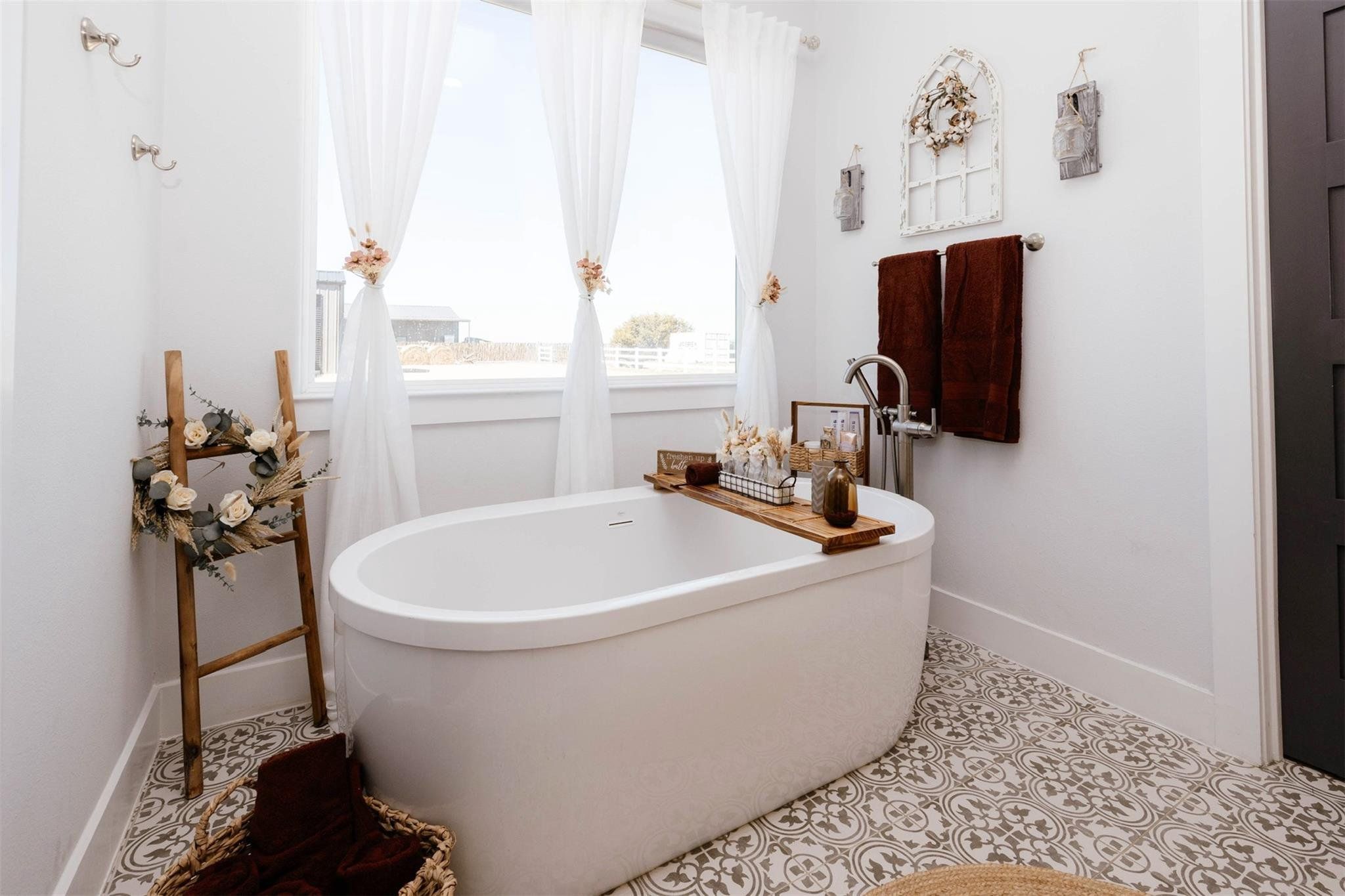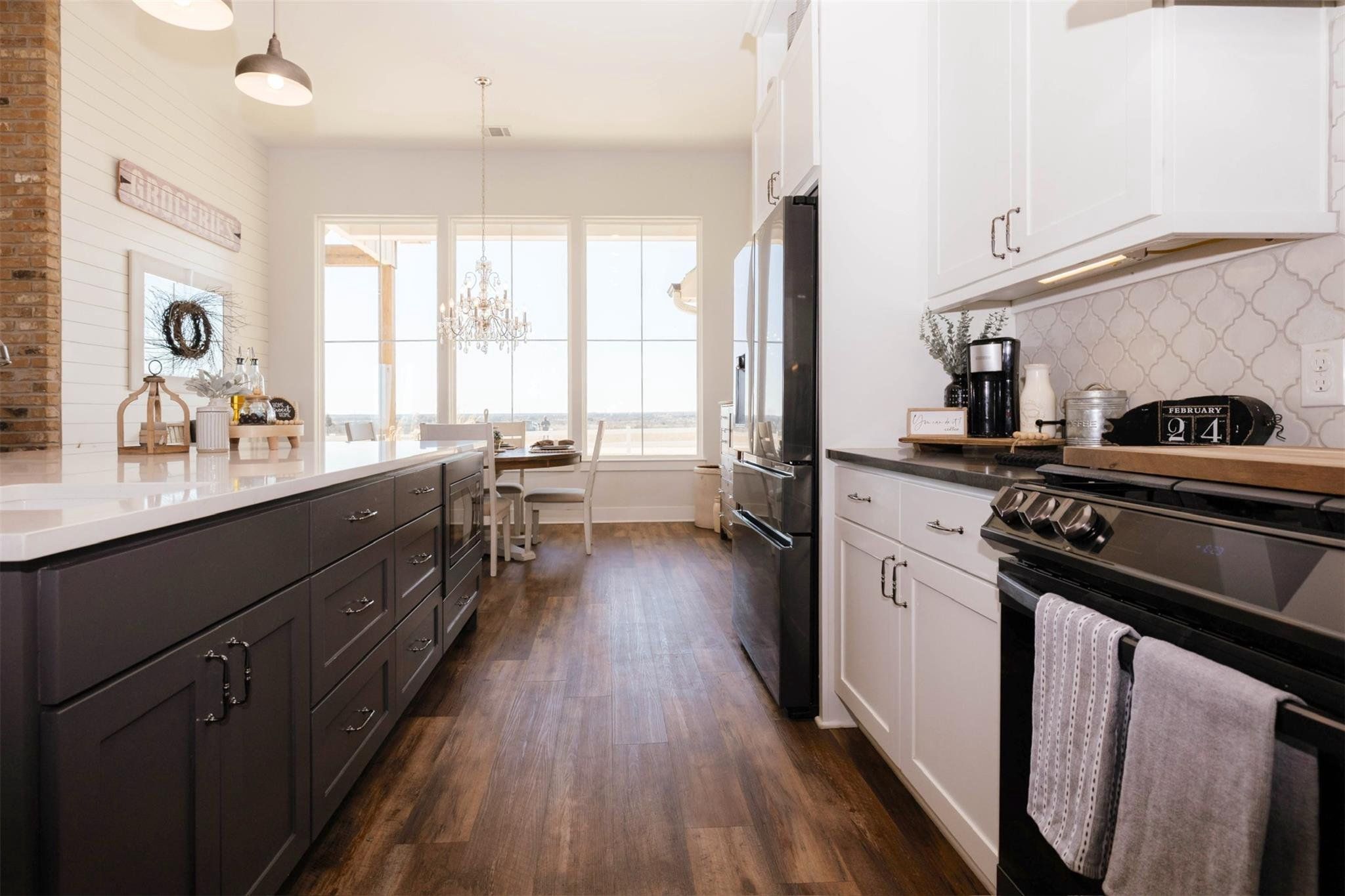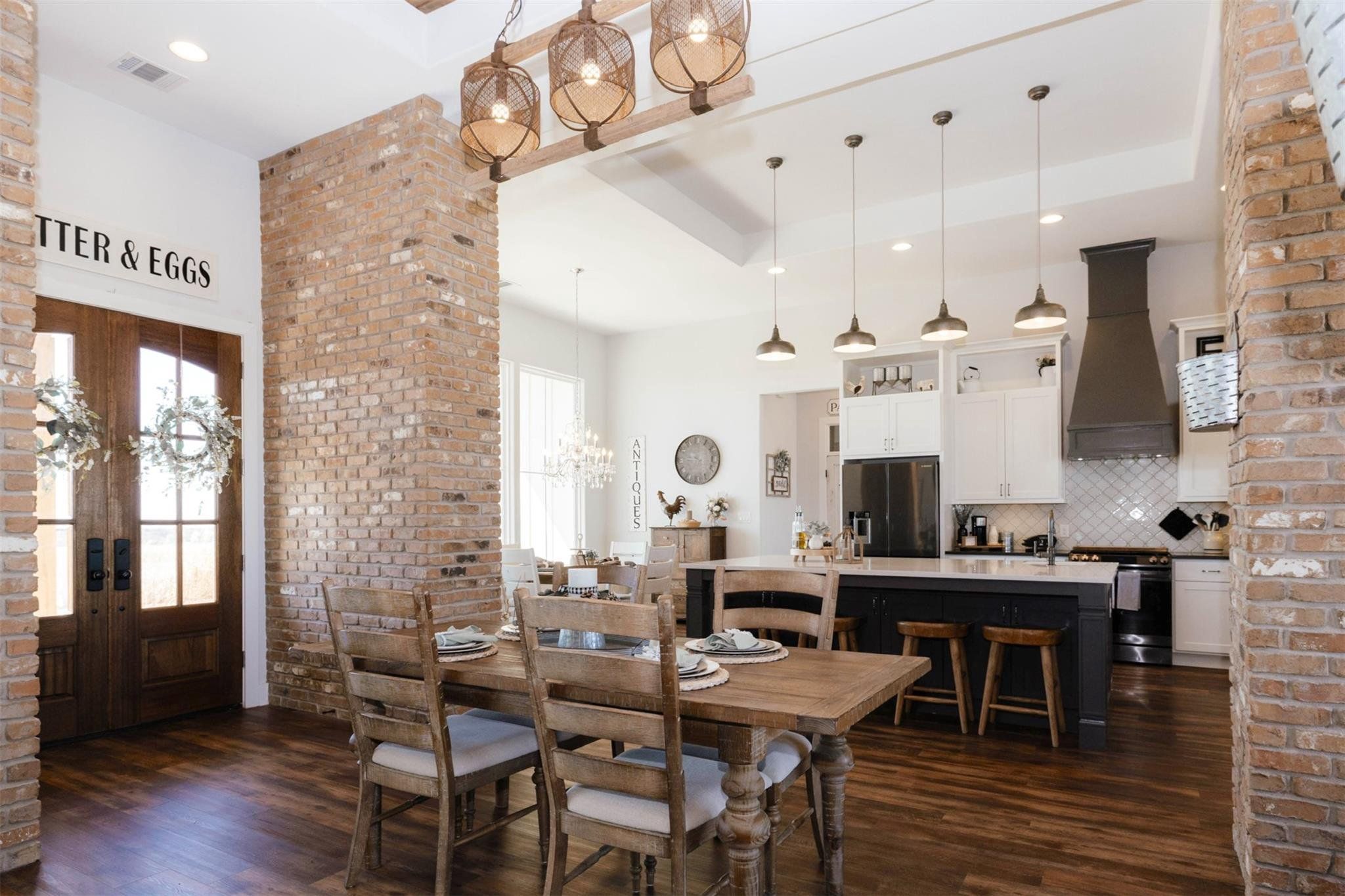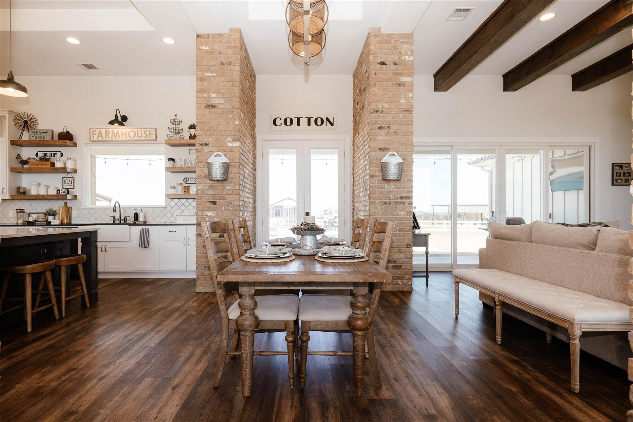 Tucked away on 11 pristine acres in a Liberty Hill, TX gated community, this modern farmhouse is the perfect fusion of luxury, functionality, and rustic charm. With 3,100 square feet of single-story living, this home offers three spacious bedrooms plus a versatile flex/study space, ensuring comfort for both work and relaxation. Every bedroom is a private retreat, complete with its own full bath, while the primary suite elevates the experience with double vanities and separate his-and-hers toilets—a rare and thoughtful touch. The heart of the home is a gourmet kitchen, where sleek quartz countertops and LVP flooring complement the home’s warm, modern aesthetic. Step outside, and the possibilities are endless. A pavilion awaits for outdoor entertaining, overlooking the lush 100% Bermuda grass lawn, sustained effortlessly by a full sprinkler system. For equestrian enthusiasts, the property boasts a 36x48 horse barn with four stalls, complete with lean-tos for trailer parking, a roping arena, and ample open space for grazing. Need more room? The 1,800 sq. ft. shop provides endless potential for hobbies, storage, or a workspace. There's even an in-ground storm shelter too! This is more than a home—it’s a lifestyle. A place where serenity meets sophistication, where wide-open Texas skies frame your everyday views, and where the possibilities stretch as far as your imagination. No HOA! Welcome to 201 Gatlin Ranch Rd—your personal slice of country paradise.