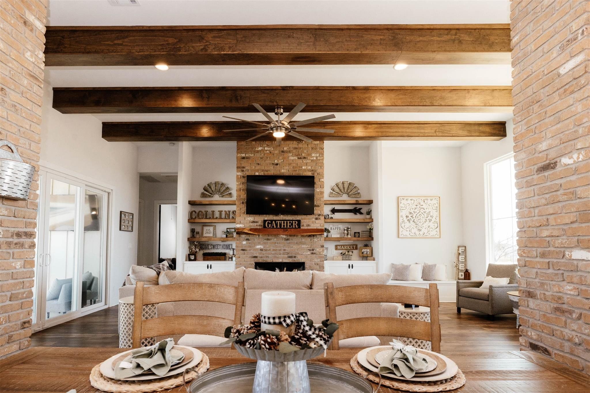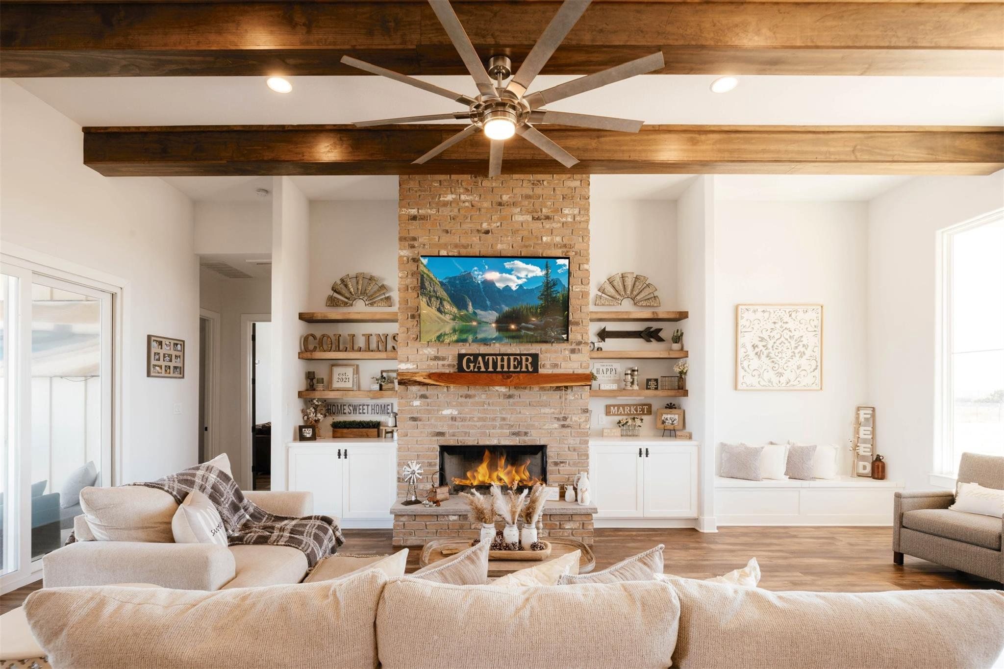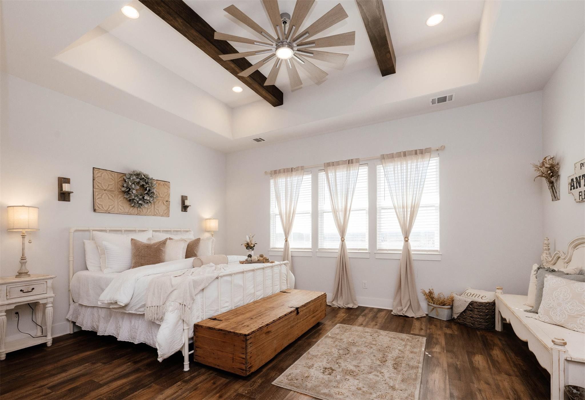 Interior Features: Breakfast Bar, Ceiling Fan(S), Beamed Ceilings, Ceiling-High, Tray Ceiling(S), Quartz Counters, Double Vanity, Kitchen Island