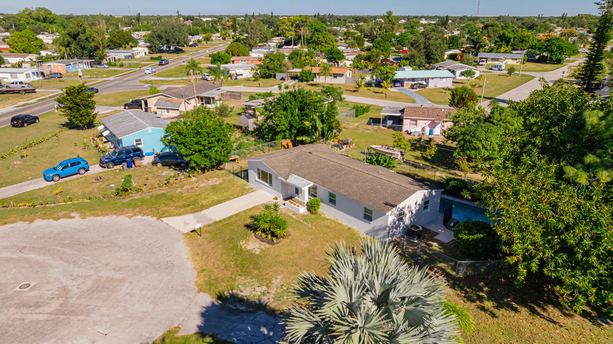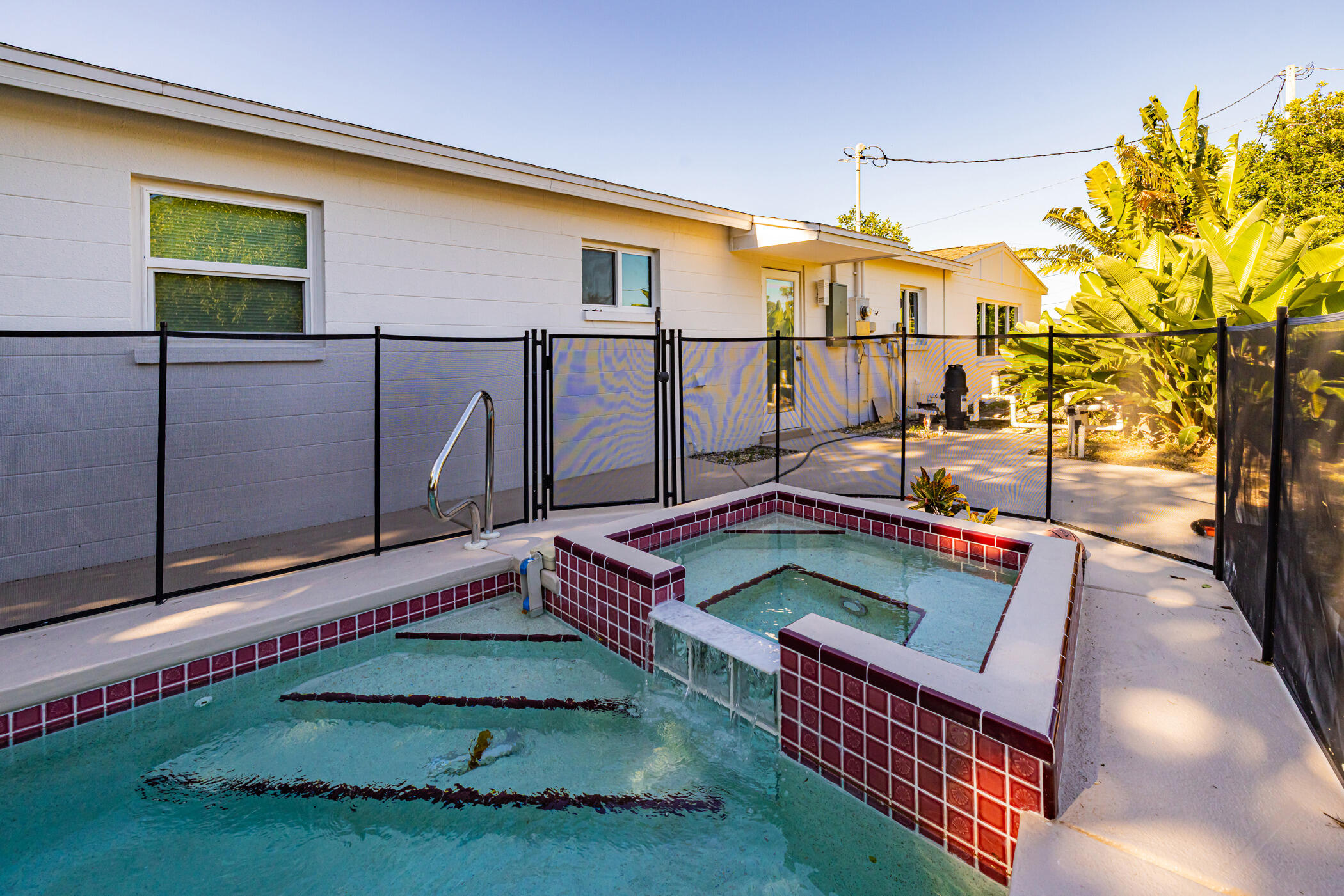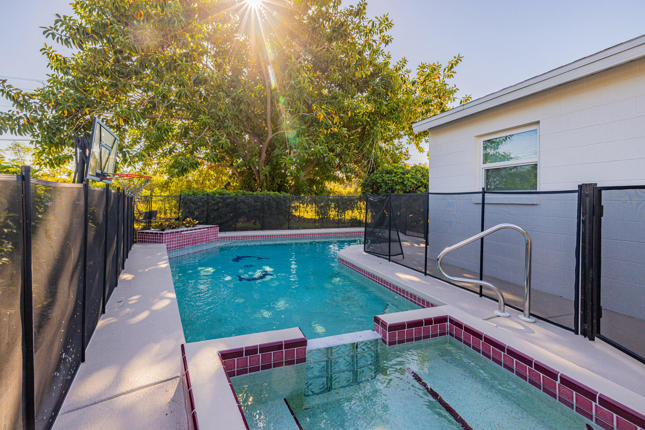 Beautifully Updated 4 Bedroom, 2 Bathroom Pool Home! This move-in ready property features a spacious split floor plan and a unique master suite with its own private entrance and coffee bar— for guests, in-laws, or added privacy. Step outside to your sparkling pool and spa, complete with new LED color-changing lights for both the pool and the spa. The yard is fully fenced and surrounded by mature trees, offering excellent privacy. Inside, enjoy peace of mind with all impact-rated windows and doors (insurance savings!) and PEX plumbing throughout. Home includes a new kitchen and bathrooms, solid wood cabinets, quartz countertops, and tile flooring throughout. AC 2022 and all new ductwork (2025) unit keeps everything cool, and there is plenty of blown-in insulation for energy efficiency. Additional upgrades include: • New plumbing fixtures • New light fixtures • Ceiling fans in all bedrooms and living room • Fresh interior paint • Solid wood baseboards and trim This home is truly beautiful with modern finishes and tons of upgrades. Don’t miss it! Feel free to ask for 4 point inspection and wind mitigation report.
