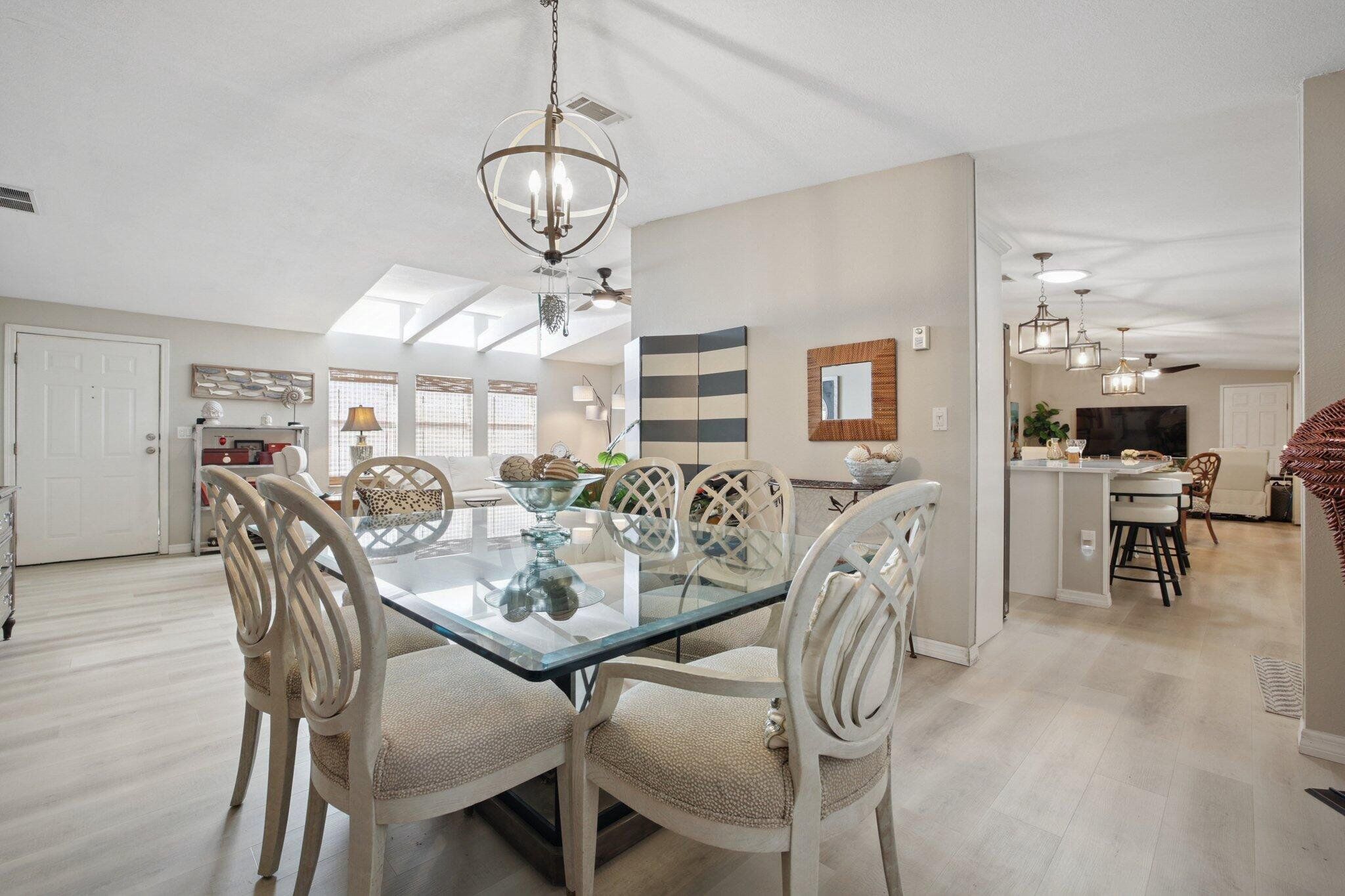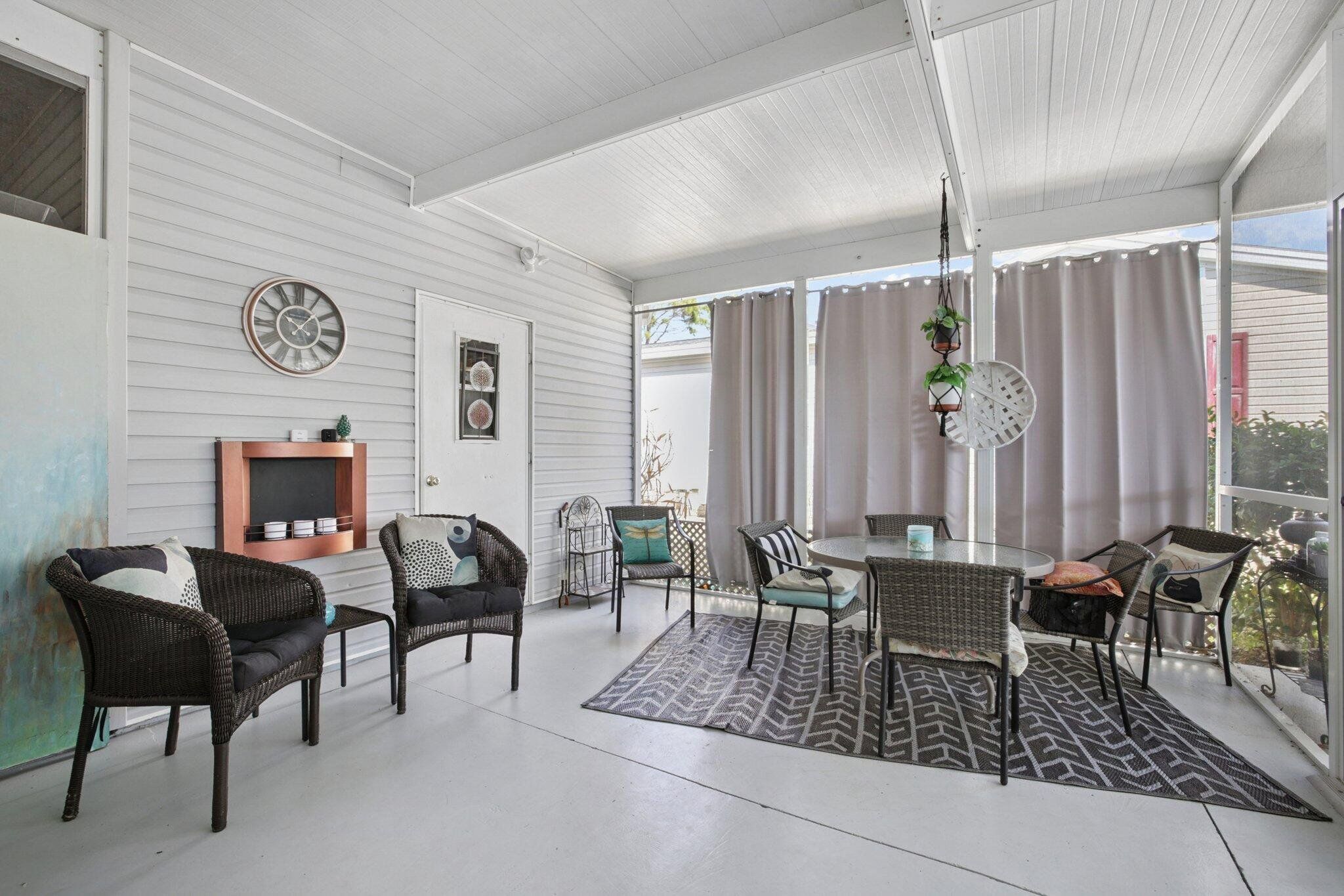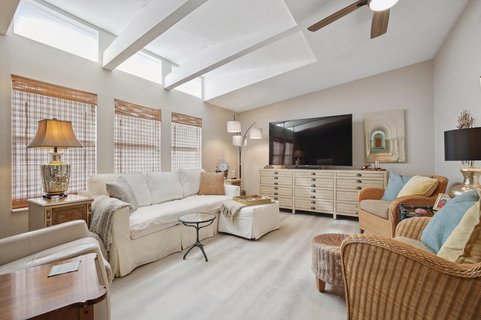 STUNNING,completely redesigned spacious home with modern upgrades & quality materials & timeless neutral …… colors. 2100 sq ft in a charming boutique neighborhood just minutes to Venice beaches and Wellen Park activities. This home features 3 bedrooms, 2 full baths and a flexible great room with a chef‘s kitchen. boasting an 8’ island with abundant storage drawers, pantry, quartz counters, new stainless appliances & a dining area that flows into a den. A separate Inside laundry room. A large dining room leads to a bright living room, creating an inviting gathering space. The primary suite has a king bed & walk in closet. The en suite bath the new large custom tiled shower, marble finishes & dual vanities. A split floor plan provides privacy, with two guest bedrooms with the 3 rd bdrm currently a design studio. Your tiled all season room overlooks the rear patio, preserve views. A screen porch off the double-wide carport, leads to a workshop with AC. Neutral theme & every comfort create a cohesive timeless look. Updates include interior renovation 2023, new roof 2021, new AC in 2024, all new premium luxury floors, NO carpet, new appliances, new kitchen cabinets, new vanity’s in bathrooms, new faucets, new remote controlled ceiling fans in every room, new interior paint, NO popcorn ceilings, new ductwork, vapor barrier and Tiedowns. Too many upgrades to mention. Come see for yourself. Riverwalk in North Port, is bordering Wellen Park & Venice. Take your pick of pristine beaches nearby. This 1997 Palm Harbor open floor plan in the charming tree-lined community welcomes pets & has a vibrant active lifestyle. Amenities are Brand new clubhouse including a Gym, Library, Heated Pool. Enjoy Kayak Trips, Game, Dancing,Dining, Bocce, Yoga classes, Social outings. The monthly fee of $831. covers all amenities, including Real Estate Taxes, Lawns , Cable TV & Internet…with NO property taxes. Wonderful opportunity for an extended family situation..with two separate living areas.