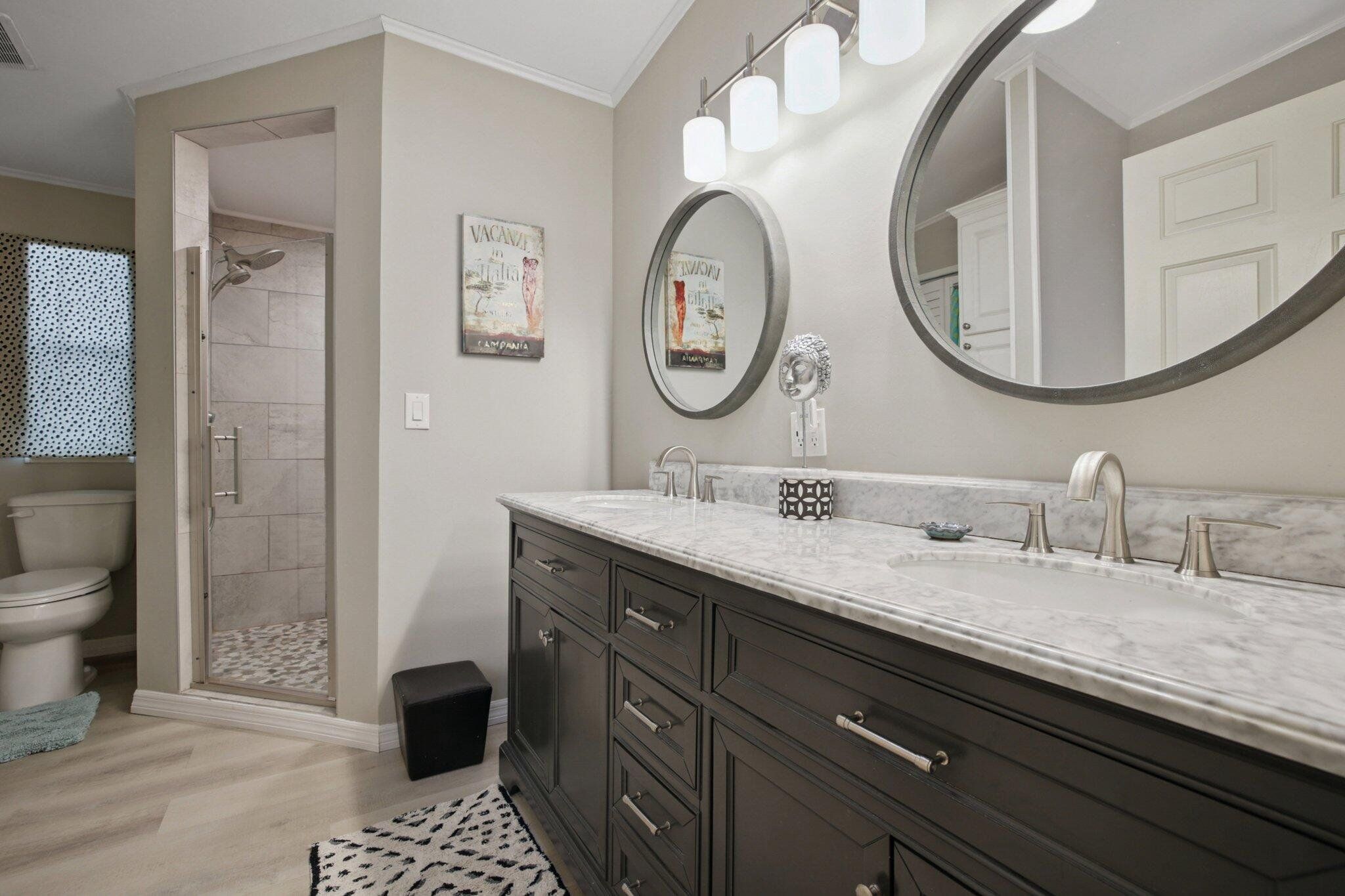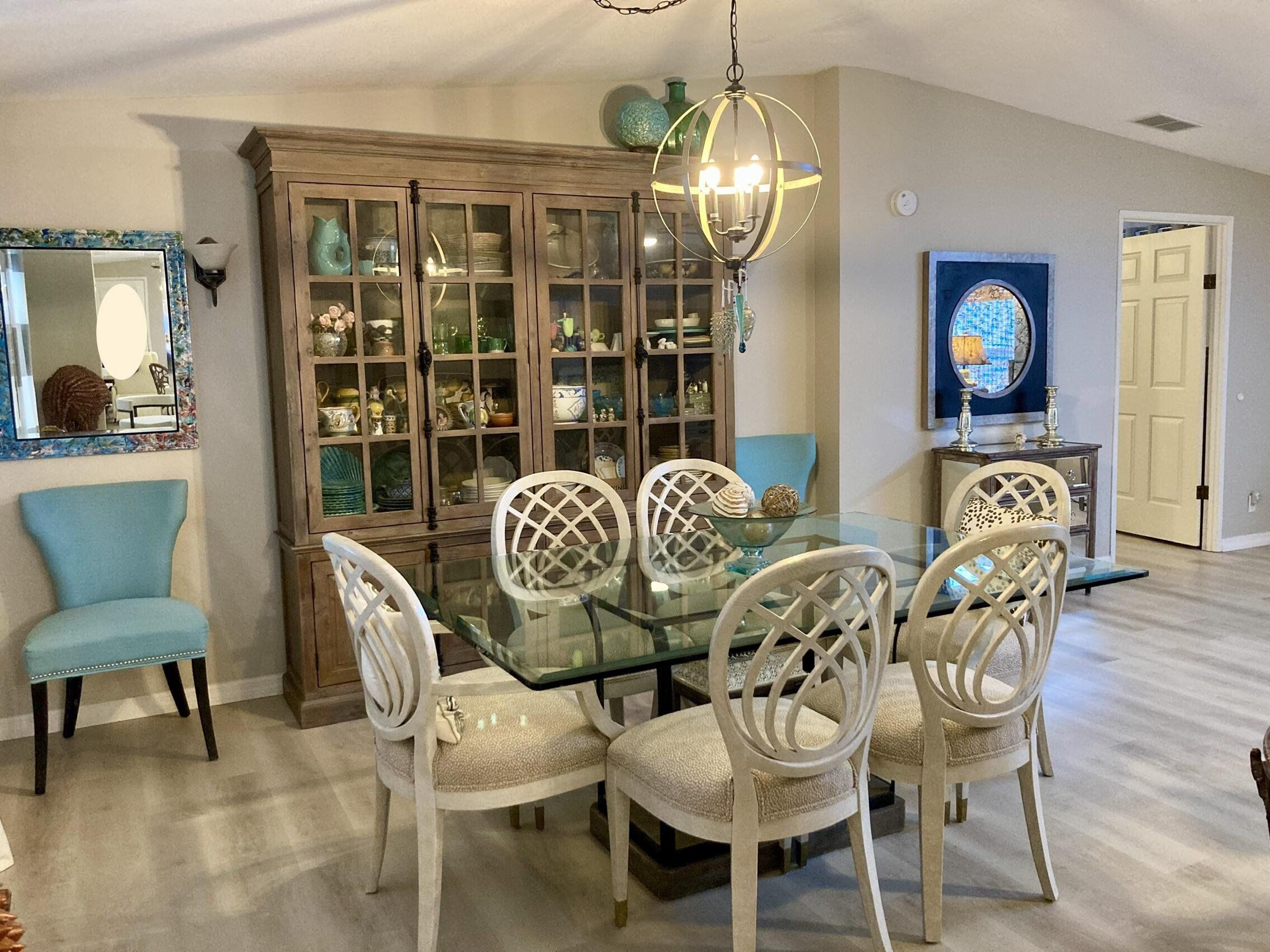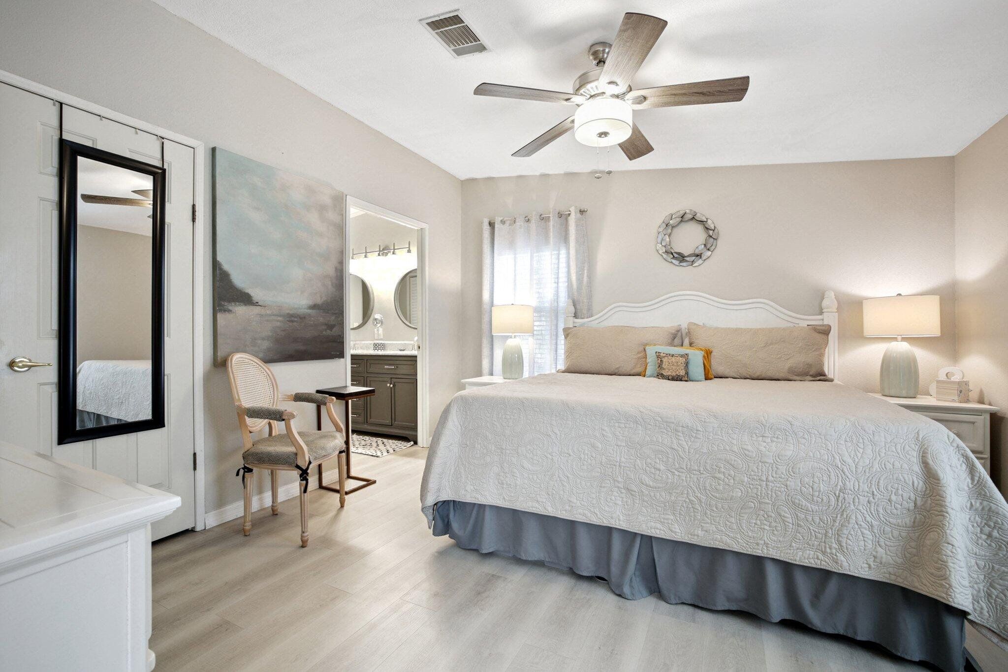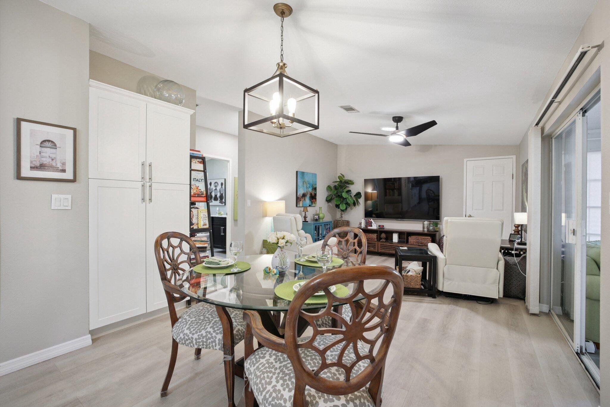 STUNNING,completely redesigned spacious home with modern upgrades & quality materials & timeless neutral …… colors. 2100 sq ft in a charming boutique neighborhood just minutes to Venice beaches and Wellen Park activities. This home features 3 bedrooms, 2 full baths and a flexible great room with a chef‘s kitchen. boasting an 8’ island with abundant storage drawers, pantry, quartz counters, new stainless appliances & a dining area that flows into a den. A separate Inside laundry room. A large dining room leads to a bright living room, creating an inviting gathering space. The primary suite has a king bed & walk in closet. The en suite bath the new large custom tiled shower, marble finishes & dual vanities. A split floor plan provides privacy, with two guest bedrooms with the 3 rd bdrm currently a design studio. Your tiled all season room overlooks the rear patio, preserve views. A screen porch off the double-wide carport, leads to a workshop with AC. Neutral theme & every comfort create a cohesive timeless look. Updates include interior renovation 2023, new roof 2021, new AC in 2024, all new premium luxury floors, NO carpet, new appliances, new kitchen cabinets, new vanity’s in bathrooms, new faucets, new remote controlled ceiling fans in every room, new interior paint, NO popcorn ceilings, new ductwork, vapor barrier and Tiedowns. Too many upgrades to mention. Come see for yourself. Riverwalk in North Port, is bordering Wellen Park & Venice. Take your pick of pristine beaches nearby. This 1997 Palm Harbor open floor plan in the charming tree-lined community welcomes pets & has a vibrant active lifestyle. Amenities are Brand new clubhouse including a Gym, Library, Heated Pool. Enjoy Kayak Trips, Game, Dancing,Dining, Bocce, Yoga classes, Social outings. The monthly fee of $831. covers all amenities, including Real Estate Taxes, Lawns , Cable TV & Internet…with NO property taxes. Wonderful opportunity for an extended family situation..with two separate living areas.