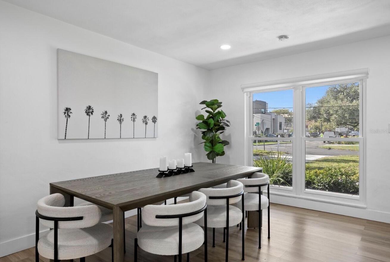 Beautifully updated South Tampa home offering an abundance of space for both everyday living and entertaining, set on a generous 70 x 131 lot in the highly desirable Beach Park / Westshore area. This inviting four-bedroom, two-bathroom residence features a light-filled open floor plan with updated flooring throughout, complemented by new windows and sliders that bring in natural light across the main living areas and fully updated kitchen. The kitchen is designed with both style and functionality in mind, featuring sleek countertops, stainless steel appliances, a breakfast bar, and modern finishes that flow seamlessly into the living and dining spaces. The primary suite includes a double sink vanity, walk-in glass-enclosed shower, and a sliding barn door entry, creating a comfortable and well-designed private space. Additional features throughout the home include recessed lighting, wide archways, built-in shelving, and ample storage with a large laundry room and generous closet space. Outdoor living includes a fully screened and paved patio, partially covered for year-round use, overlooking a spacious backyard with room for a pool or future expansion. The property also features a paved driveway, covered front porch, and carport with architectural details that add to the home’s overall character and curb appeal. Located within the Westshore / Beach Park area, the home has convenient access to Tampa International Airport, major roadways including the Howard Frankland Bridge, shopping, dining, and nearby Gulf Coast beaches. Spacious homesite Updated interior with modern finishes South Tampa location with convenient access to key destinations