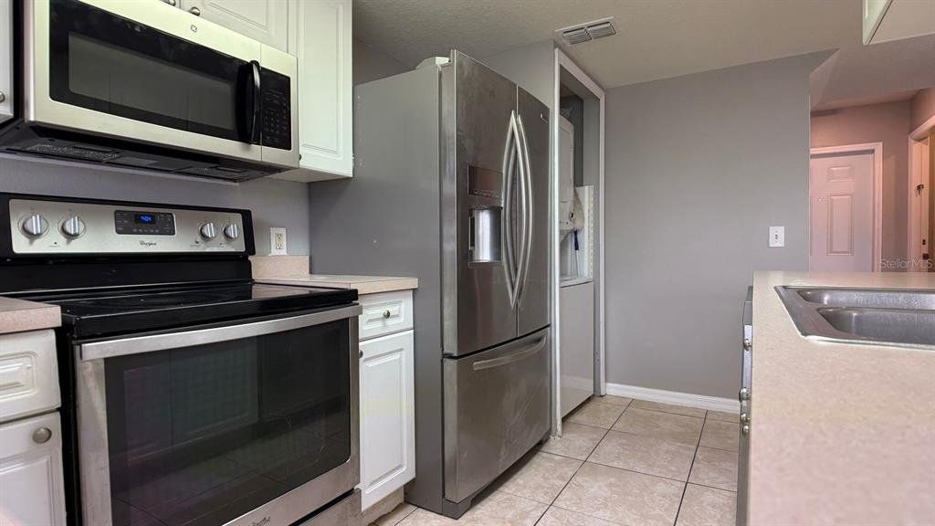 Coveted Location! Water & Electric Included (with Limitations)! Welcome to this stunning 3-bedroom, 2-bath end-unit townhome in the highly sought-after Island Club West community. Boasting fresh interior paint and a bright, open floor plan, the kitchen, dining, and living areas flow seamlessly for comfortable living and effortless entertaining. The kitchen is equipped with white shaker cabinets and a stainless-steel appliance package, including a bottom-freezer refrigerator, glass-top range, over-the-counter microwave, and dishwasher. The spacious master suite features a walk-in closet and an ensuite bathroom with spacious vanity and a walk-in shower. The home also includes ceramic tile on the first floor and wet areas, with wood-style flooring on the second floor and stairs. A laundry closet with stackable washer and dryer are added as a convenience item. Island Club West offers a true resort-style lifestyle, complete with a clubhouse, tennis and basketball courts, sand volleyball, community pool, and spa. Perfectly located, this home is just minutes from Disney Theme Parks, Champions Gate, Posner Park, major retailers, and offers easy access to US 192, SR 429, I-4, and Ronald Reagan Parkway.