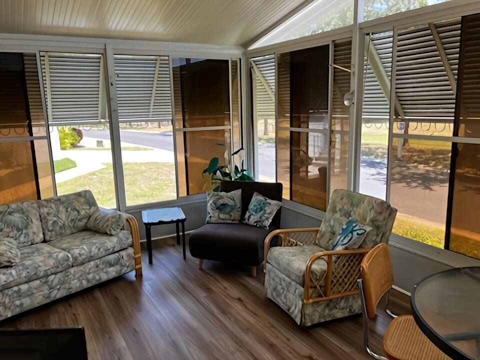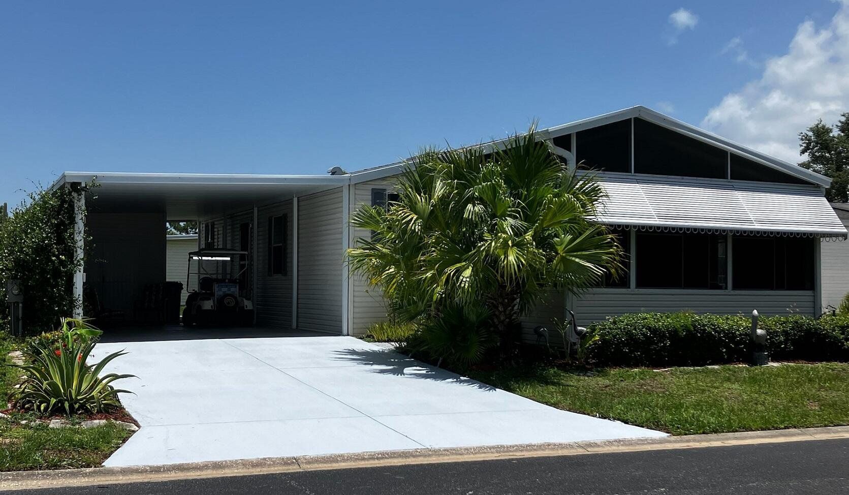 Live Where there's Florida fun! Looking to Downsize or Enjoy a 2nd Home? This bright, airy 2-bed, 2-bath manufactured home in the gated Riverside Club—Golf & Marina Community offers an active Resort Lifestyle, that could be yours! Priced to sell, it offers fantastic value with ALL INCLUDED AMENITIES in the land lease. The abundant amenities significantly increase the value of the home plus no property taxes! *** THE HOUSE *** * New woodgrain vinyl plank floors in kitchen, bathrooms, utility hallway, screen room/ sunroom * New carpeting in living, dining & bedrooms * Fresh, clean paint, Ready for your styling or Includes Furniture * Move in and enjoy! This well-maintained home offers an open floor plan with comfortable living and dining areas—great for relaxing or entertaining. The spacious KITCHEN features ample cabinets, a full-size oven, refrigerator, microwave, dishwasher, and a cozy seating area. MASTER BEDROOM includes a large mirrored closet & PRIVATE BATHROOM with walk-in shower. The SECOND BEDROOM is useful for guests or a home office. There's another FULL BATHROOM with a tub and shower. The bright, HIGH-CEILING LIVING and DINING ROOMS make the rooms larger, creating an inviting atmosphere. A versatile BONUS SCREENED ROOM provides extra space for relaxation or gatherings. Outside is a large DRIVEWAY, CARPORT, and STORAGE SHED. Built in 1997, home has always had, but never used, its homeowners insurance. Other homes are ten years older, ten years more wear and tear and many companies won't insure them. This is move-in ready with furniture included—possibly even the golf cart—which makes it easy to explore the community’s amenities and clubs. Afford the Florida fun lifestyle that includes these amenities at your doorstep! *** RIVERSIDE CLUB AND ITS AMENITIES *** The monthly land lease includes water & sewer (saves you $100/month), basic lawn care (saves you $100/month), garbage pickup, & resort amenities—offering a low-maintenance, carefree lifestyle. Plus no property taxes (saves you $Thousands/year). No CDD fees, Modest golf fee. 2 Clubhouses with 2 giant heated pools, hot tubs, tennis & pickleball courts, fitness center, pool tables, movie theater, library, outdoor grills, and regular social events. Clubhouse on Manatee River offers boat/kayak launch, shuffleboard, 18-hole golf course, pro shop, woodworking shop, ping pong, and more community activities. Plus separate arts and crafts center, stained glass workshop, dog park, 60 clubs, and RV/boat storage (small fee for golf or storage). ** WHY THIS HOUSE, IN THIS AREA OF RIVERSIDE CLUB? ** Ready to retire but worried about finances? You can enjoy the Florida lifestyle on a budget! Riverside Club, resort-style community offers the best of both worlds with a charming, established original section and a newer, more expensive area. The home is located in the original section, and it’s available at less than half the price of homes in the newer section. But here’s the big “but”: you don’t have to compromise on amenities. You’ll enjoy all the same fantastic community features as those paying double in the newer section. It’s excellent opportunity to own a beautiful, amenity-rich home in a vibrant resort community without the hefty price tag. ** Live a relaxed, resort amenities lifestyle. Make the move now, take action!