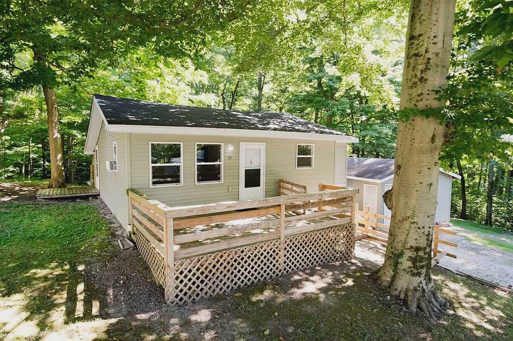 Sold. This cozy, cottage-style lake house retreat is minutes from town but a world away. Many recent updates. Super clean and move-in ready! -Beautiful trees on shady lot of over quarter-acre-plenty of room to enjoy the outdoors, plus front and side decks, big level driveway, shed, and detached garage. -Convenient main floor laundry, bathroom with linen closet, open kitchen/dining/living floor plan, with vinyl plank floors. -Asphalt Roof, vinyl siding, high-efficiency windows, all redone within the last 5 years; Electric Water Heater & electric furnace within 7 years. Well (excellent water) and pump located in room off the garage. This means only an electric bill. -Lower level room, with ample natural light, is great for exercise, storage, or hobbies.