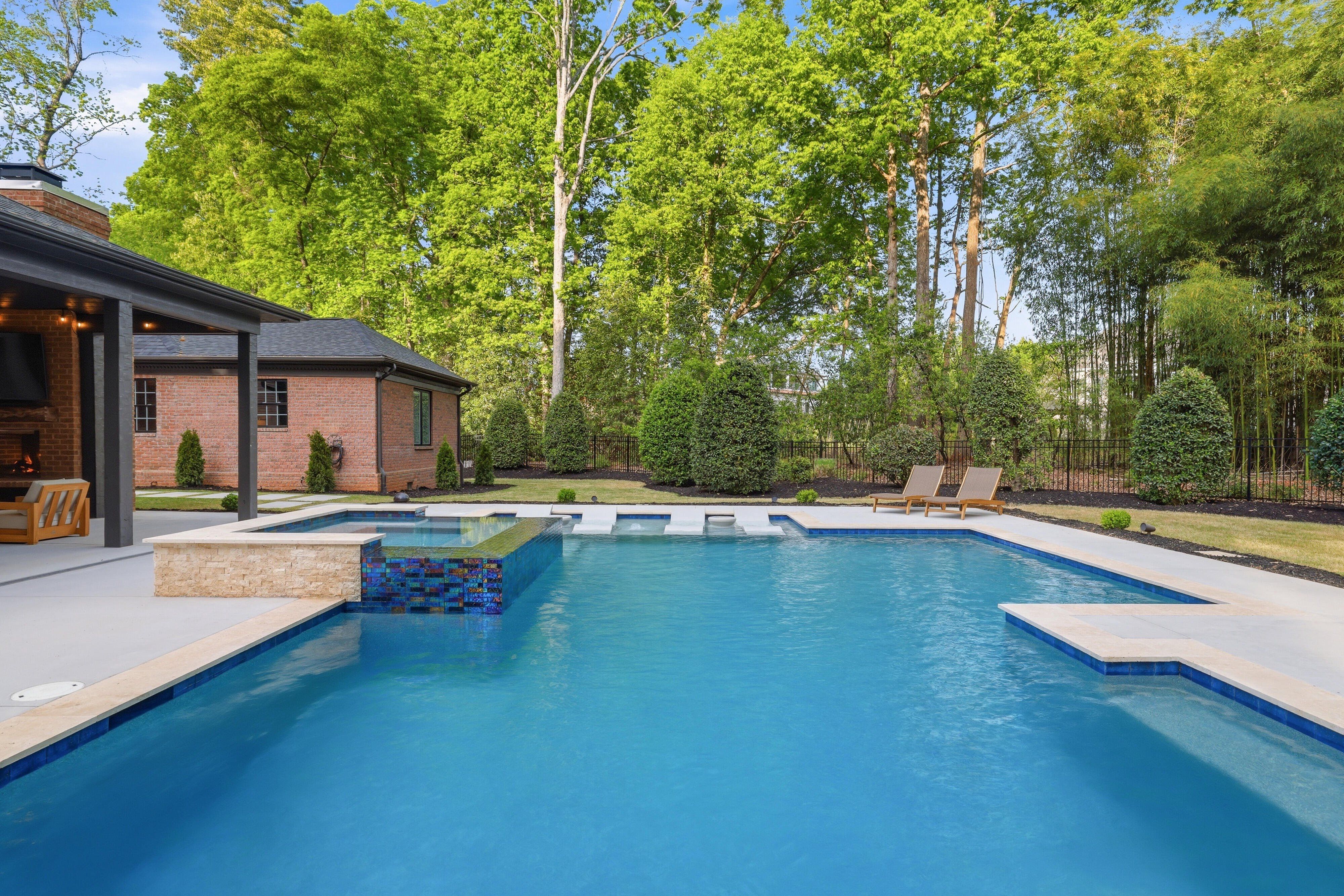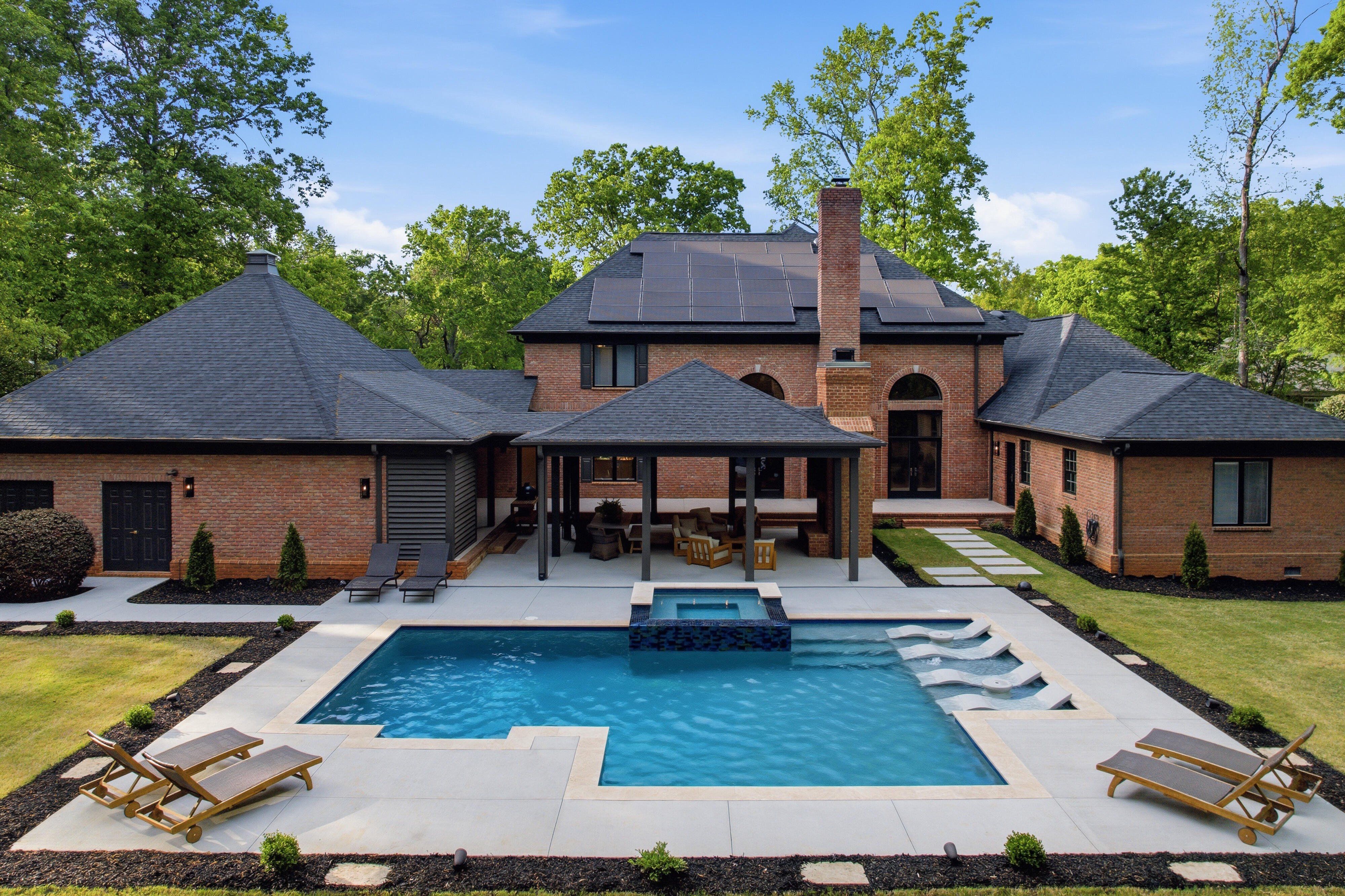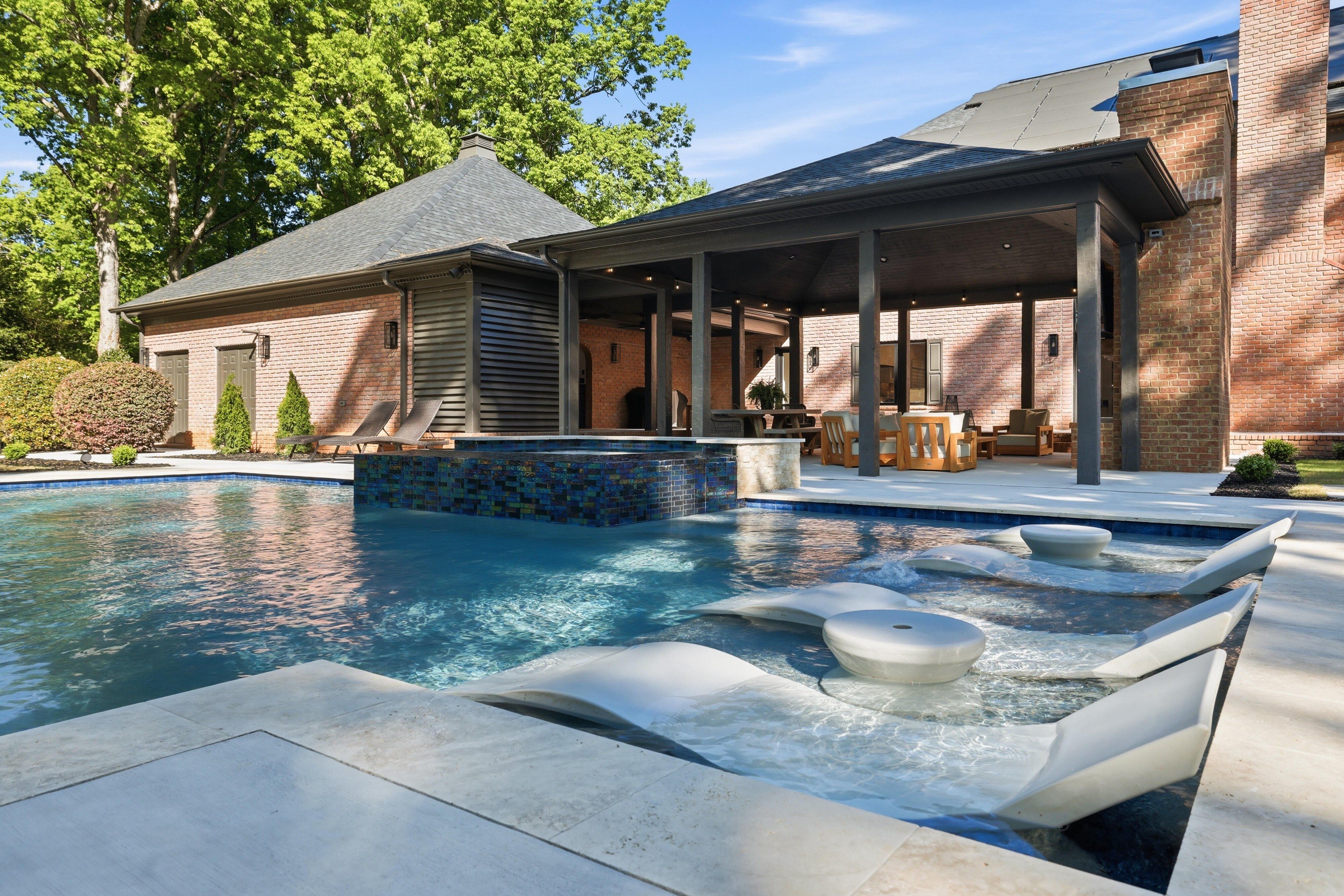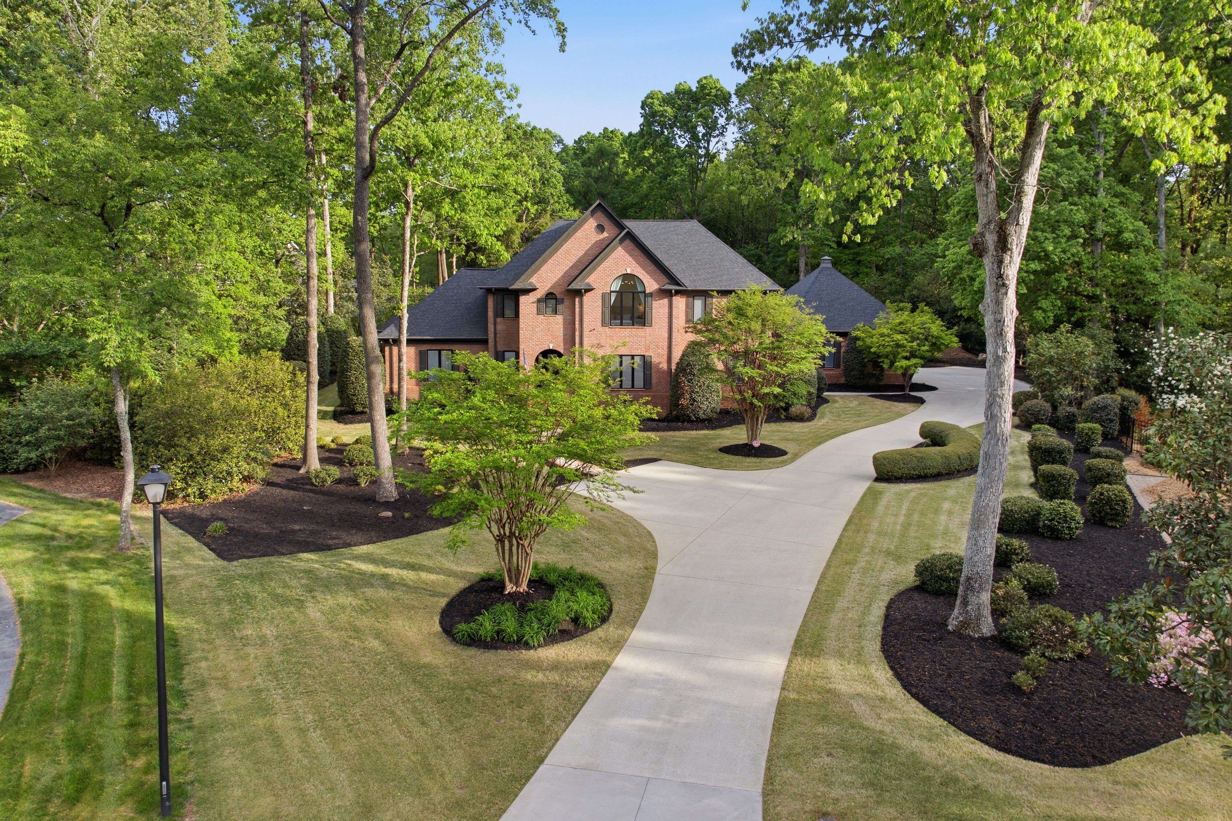 Discover timeless elegance blended with modern sophistication at 212 Weatherby Drive, located in Greenville’s premier Chaunessy neighborhood. This stunning custom all-brick estate has been extensively renovated inside and out, offering a true showcase of refined luxury. Set on a private, serene 1.08-acre wooded lot, the property is an entertainer’s dream—perfectly balancing natural beauty, privacy, and inviting gathering spaces. Inside, an expansive, light-filled open-concept design is highlighted by soaring ceilings, including a breathtaking 22-foot two-story great room anchored by a dramatic three-tier chandelier that serves as a striking focal point. The kitchen is the heart of the home, thoughtfully designed with exceptional attention to detail. It features a 48-inch Viking range, custom hood, beautifully crafted cabinetry, and a secondary bar with additional seating. New quartzite countertops with a matching backsplash, designer lighting, and a stylish bar area elevate the space while maintaining a seamless flow into the great room—optimal for both everyday living and entertaining. The main-level primary suite includes a spacious 19x19 retreat, complete with a spa-inspired bath featuring a soaking tub, oversized walk-in shower with dual shower heads, dual vanities, and generous his-and-her custom closets. A beautifully designed adjoining flex space provides the perfect option for a private office, sitting room, nursery, or fitness room. Additional main-level highlights include an oversized laundry room that is also accessible directly through the primary closet with abundant storage, a folding island, utility sink, and an extra refrigerator. Upstairs, three well-appointed secondary bedrooms are paired with tastefully renovated full baths. Notable upgrades throughout the home include Pella windows and French doors, a whole-home music and security system, owned solar panels, and dual tankless water heaters. The outdoor living spaces are truly exceptional. Enjoy a newly built resort-style gunite saltwater pool featuring a sundeck, infinity-edge spa, water features, and ambient lighting. With over 1,100 square feet of covered and open patios, a large covered porch, a refreshed full bath dedicated for the outdoor space, and an outdoor bar with sink, this home is designed for effortless outdoor entertaining. Additional features include a three-car side-entry garage and a prime Five Forks location with easy access to the airport, dining, and top-rated schools including Oakview Elementary, Beck Middle, and J.L. Mann High School. This exceptional home seamlessly blends classic charm with contemporary upgrades, creating a warm yet sophisticated atmosphere for both relaxed living and memorable entertaining. Schedule your private tour today and experience one of Greenville’s most desirable communities firsthand.