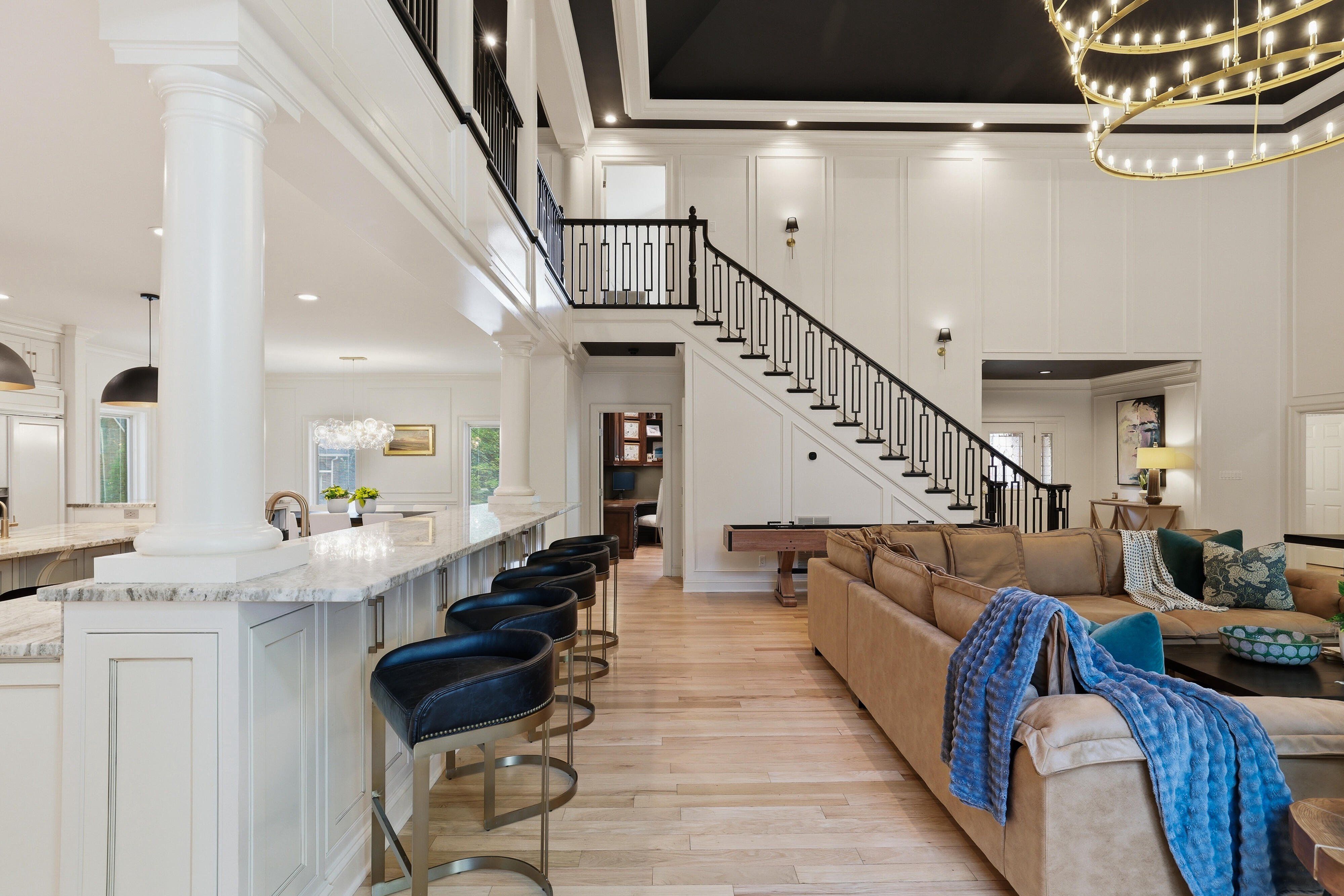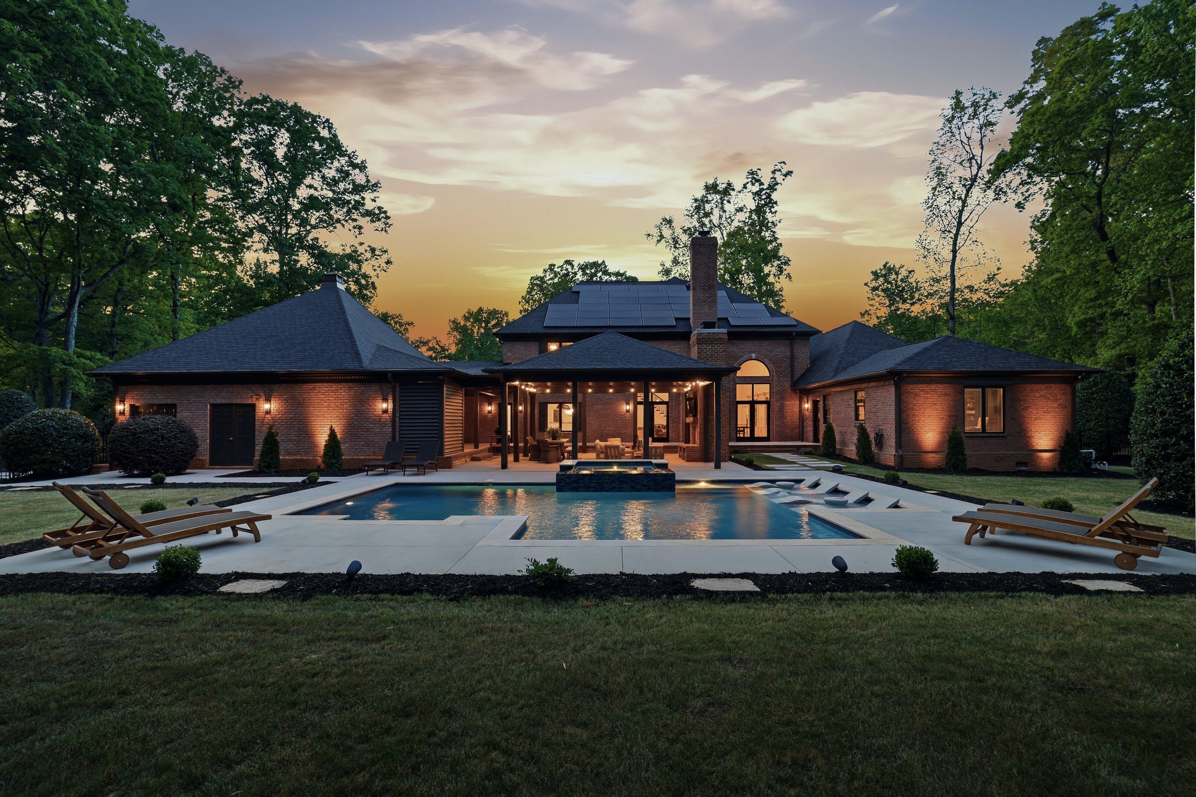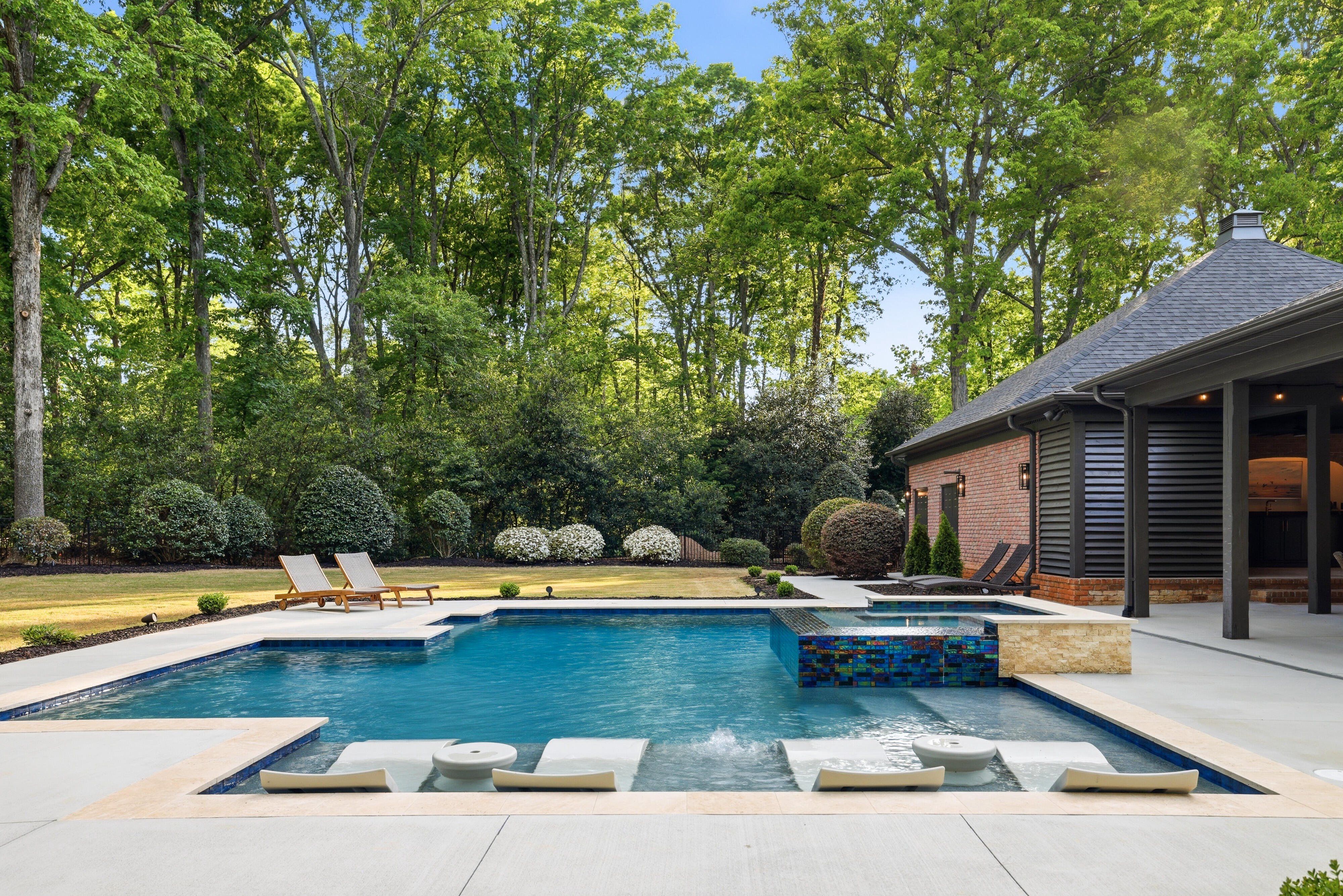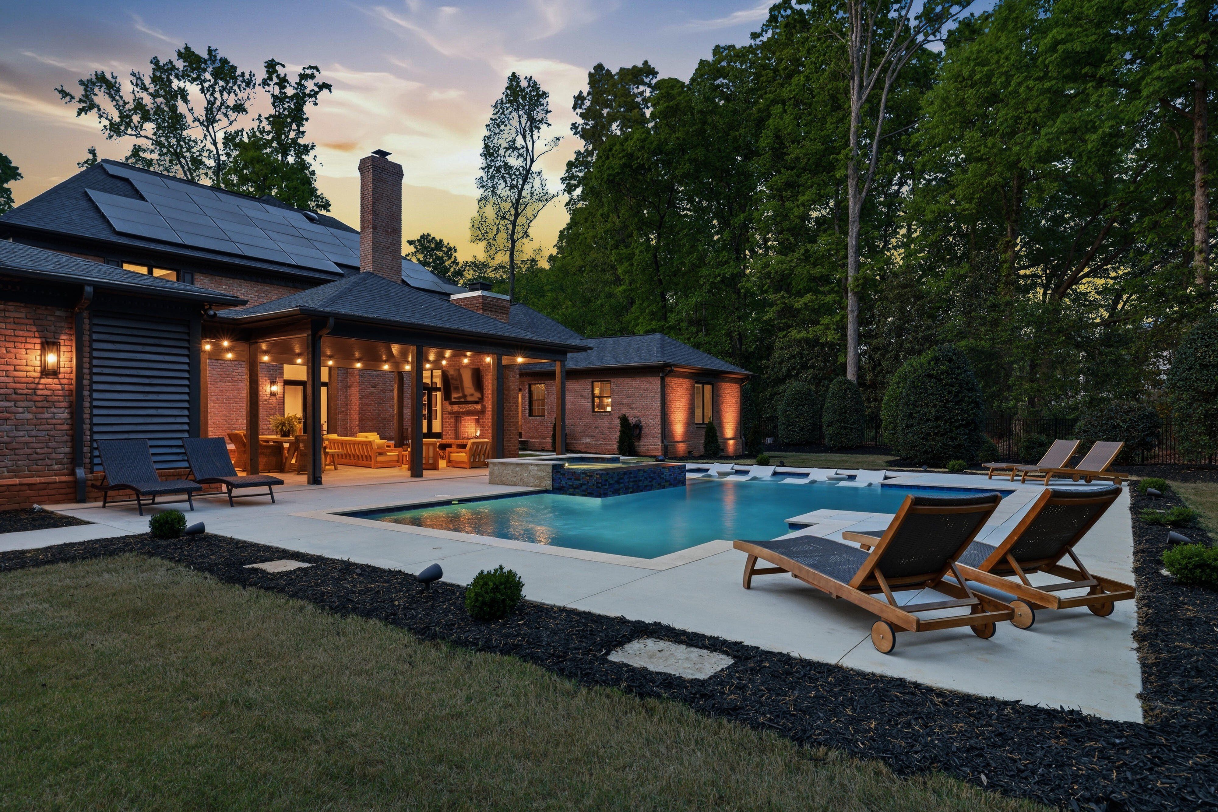 Discover timeless elegance blended with modern sophistication at 212 Weatherby Drive, located in Greenville’s premier Chaunessy neighborhood. This stunning custom all-brick estate has been extensively renovated inside and out, offering a true showcase of refined luxury. Set on a private, serene 1.08-acre wooded lot, the property is an entertainer’s dream—perfectly balancing natural beauty, privacy, and inviting gathering spaces. Inside, an expansive, light-filled open-concept design is highlighted by soaring ceilings, including a breathtaking 22-foot two-story great room anchored by a dramatic three-tier chandelier that serves as a striking focal point. The kitchen is the heart of the home, thoughtfully designed with exceptional attention to detail. It features a 48-inch Viking range, custom hood, beautifully crafted cabinetry, and a secondary bar with additional seating. New quartzite countertops with a matching backsplash, designer lighting, and a stylish bar area elevate the space while maintaining a seamless flow into the great room—optimal for both everyday living and entertaining. The main-level primary suite includes a spacious 19x19 retreat, complete with a spa-inspired bath featuring a soaking tub, oversized walk-in shower with dual shower heads, dual vanities, and generous his-and-her custom closets. A beautifully designed adjoining flex space provides the perfect option for a private office, sitting room, nursery, or fitness room. Additional main-level highlights include an oversized laundry room that is also accessible directly through the primary closet with abundant storage, a folding island, utility sink, and an extra refrigerator. Upstairs, three well-appointed secondary bedrooms are paired with tastefully renovated full baths. Notable upgrades throughout the home include Pella windows and French doors, a whole-home music and security system, owned solar panels, and dual tankless water heaters. The outdoor living spaces are truly exceptional. Enjoy a newly built resort-style gunite saltwater pool featuring a sundeck, infinity-edge spa, water features, and ambient lighting. With over 1,100 square feet of covered and open patios, a large covered porch, a refreshed full bath dedicated for the outdoor space, and an outdoor bar with sink, this home is designed for effortless outdoor entertaining. Additional features include a three-car side-entry garage and a prime Five Forks location with easy access to the airport, dining, and top-rated schools including Oakview Elementary, Beck Middle, and J.L. Mann High School. This exceptional home seamlessly blends classic charm with contemporary upgrades, creating a warm yet sophisticated atmosphere for both relaxed living and memorable entertaining. Schedule your private tour today and experience one of Greenville’s most desirable communities firsthand.