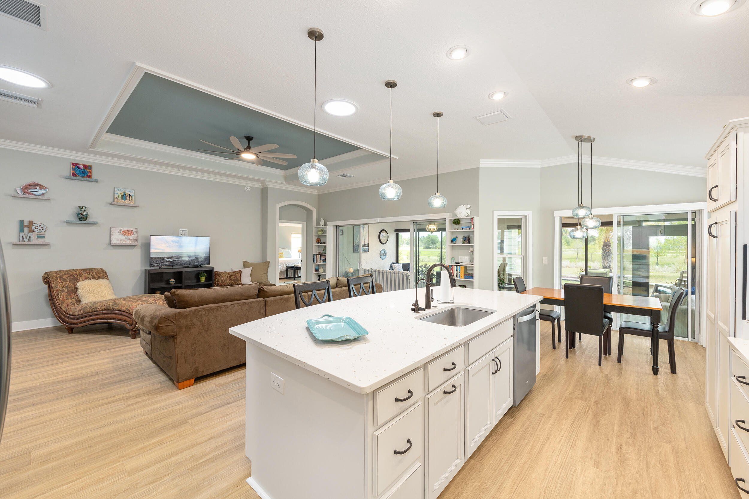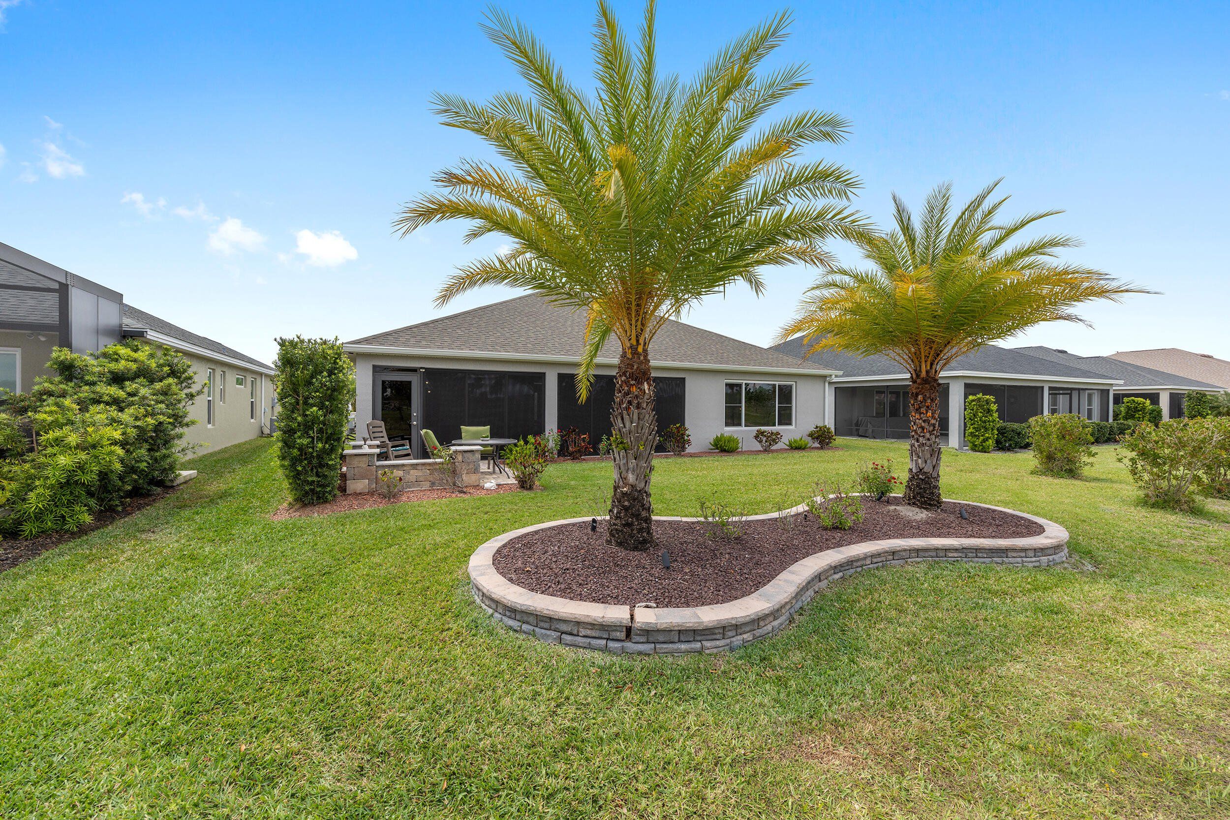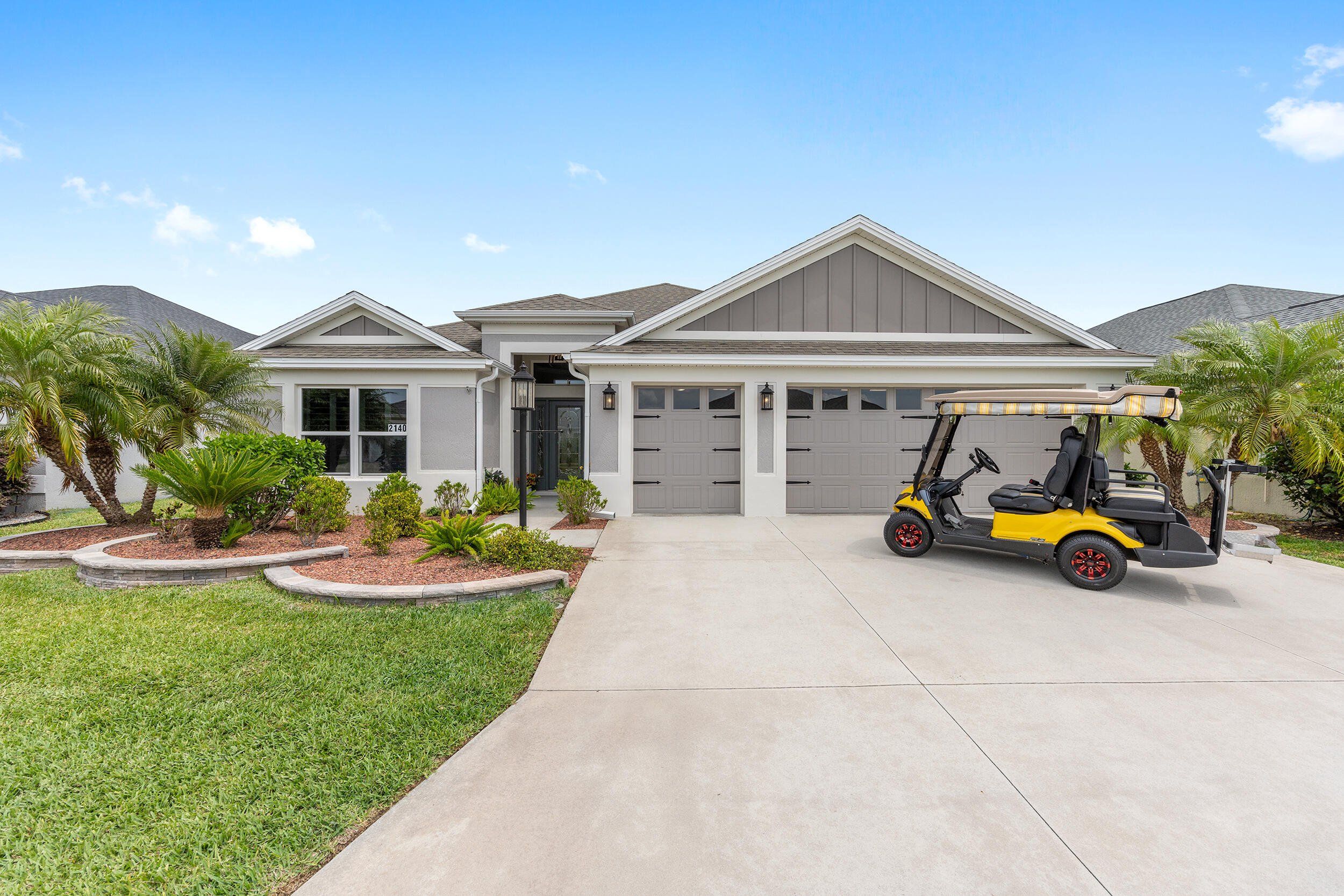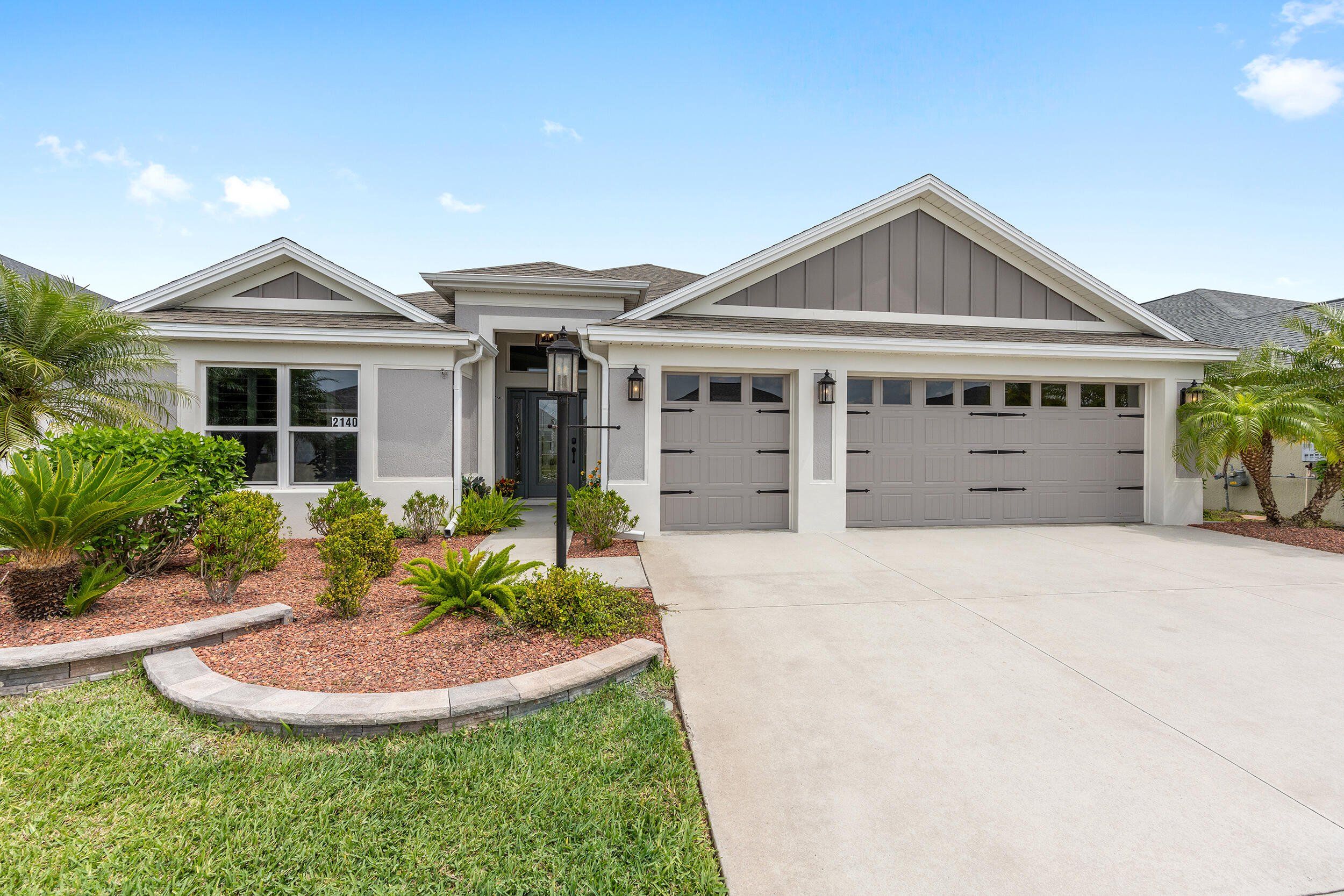 **WATERFRONT**ROOM FOR A POOL**GLASS ENCLOSED LANAI**OVERSIZED 2 CAR + GOLF CAR GARAGE w/AC**$100,00.00 in UPGRADES. Stunning waterfront 3-bed, 2-bath expanded Iris in the Village of McClure, minutes from golfing, shopping, dining, recreation, and Eastport Town Center. This exceptional home features a stretched 2-car plus golf cart garage, 350 sq. ft. glass-enclosed climate-controlled lanai, room for a pool, and over $100,000 in premium upgrades. Previously owned by an interior decorator, it shines with plank flooring, crown molding, custom trim and closets, plantation shutters, solar tubes, designer lighting, and fresh professional paint. The open living area boasts a dramatic tray ceiling, while a versatile flex space works as a dining area, office, or cozy nook. A gourmet kitchen highlights quartz counters, tile backsplash, stainless appliances, cabinetry with under-cabinet lighting, and a counter-height island. The expanded primary suite wows with water views, tray ceiling, walk-in closet, and spa-like bath with dual quartz vanities and tiled Roman shower. Two additional bedrooms, guest bath, paver patio, private backyard, professional landscaping, and oversized garage with attic storage complete this luxurious home, where serene waterfront living meets endless Villages adventures—golf cart and furniture package negotiable so you can enjoy it all in style! THE VILLAGE OF MCCLURE Living in the Village of McClure means having it all right at your doorstep! From the Longleaf and Loblolly Executive Golf Courses to the relaxing Willow Tree Recreation Area with its adult pool, there’s always something to enjoy. Looking for more activity? The Everglades Recreation Complex delivers with a sports pool, fitness programs, softball, pickleball, and even RC car and boat tracks for a little extra fun. Dog owners will love nearby Dudley Canine Park, and with Magnolia Plaza and Eastport just down the road, shopping, dining, and everyday essentials are always close by. It’s easy to see why the Village of McClure is such a desirable place to call home.