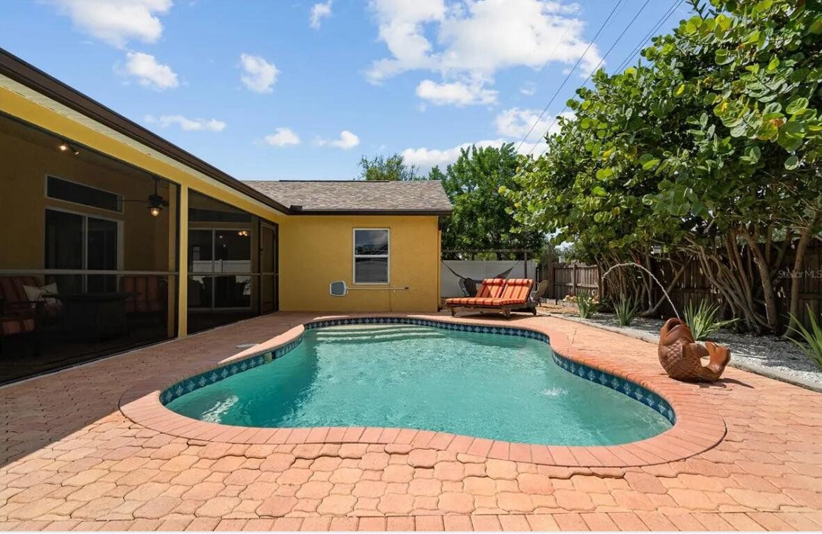 Home for sale by owner in Natures Hideaway. New roof, air conditioner, pool heater, saltwater conversion for pool, decks and shed in 2023. Welcome to your dream home! This spacious 4-bedroom, 2-bathroom pool home with a fenced in yard and no front or rear neighbors, both comfort and privacy. Located in a terrific school district, this property boasts numerous features that make it an amazing place to live! The pool area of this home is a true paradise, complete with hammock, and a screened-in patio. Low maintenance pet turf thru out back yard. Whether you're hosting a barbecue or simply relaxing by the pool, this outdoor space is great for creating memories with family and friends. The kitchen features granite countertops, tons of cabinet space and new modern appliances (induction & air fry). Both bathrooms in the home have been thoughtfully updated with custom showers. The primary bedroom has a large walk-in closet and an en suite bath featuring dual sink vanity and both a tub and custom shower. The fourth bedroom in this home is exceptionally spacious, with the flexibility to serve as a living room or be divided into a fifth bedroom, providing endless possibilities to suit your needs. Don't miss the opportunity to make this beautiful, block construction home with a new roof and new A/C your own. This property is move-in ready and waiting for your personal touch. Schedule a viewing today and experience the exceptional lifestyle that this home will bring.