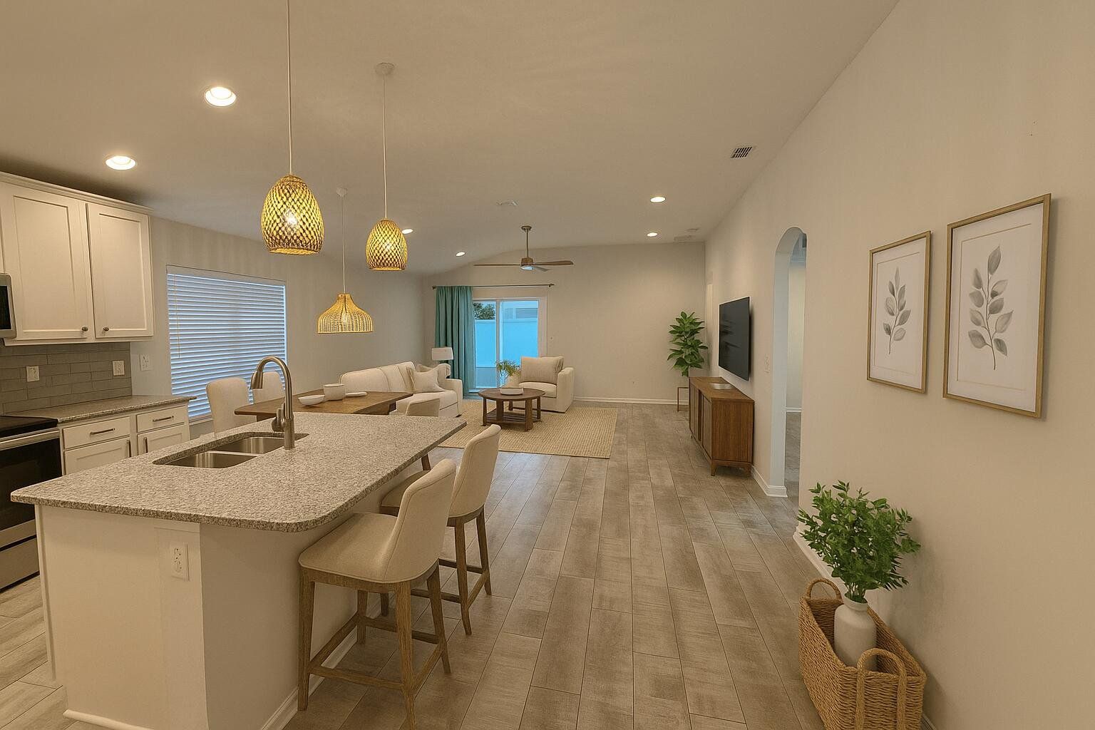 Welcome to this charming home in Coastal Oaks of Atlantic Beach! This beautifully maintained residence boasts an open floor plan. The spacious living area seamlessly connects to a modern kitchen featuring sleek countertops and ample cabinetry. Enjoy the tranquility of the private backyard, appropriate for outdoor entertaining or relaxation in the hot tub! Features include a 2-car garage, paver patio with hot tub, home automation lights in the kitchen and living room, as well as a home automation thermostat, and a low-maintenance yard. Located in a sought-after gated community, this property offers convenient access to local amenities, parks, and the beach. Don't miss this opportunity!
