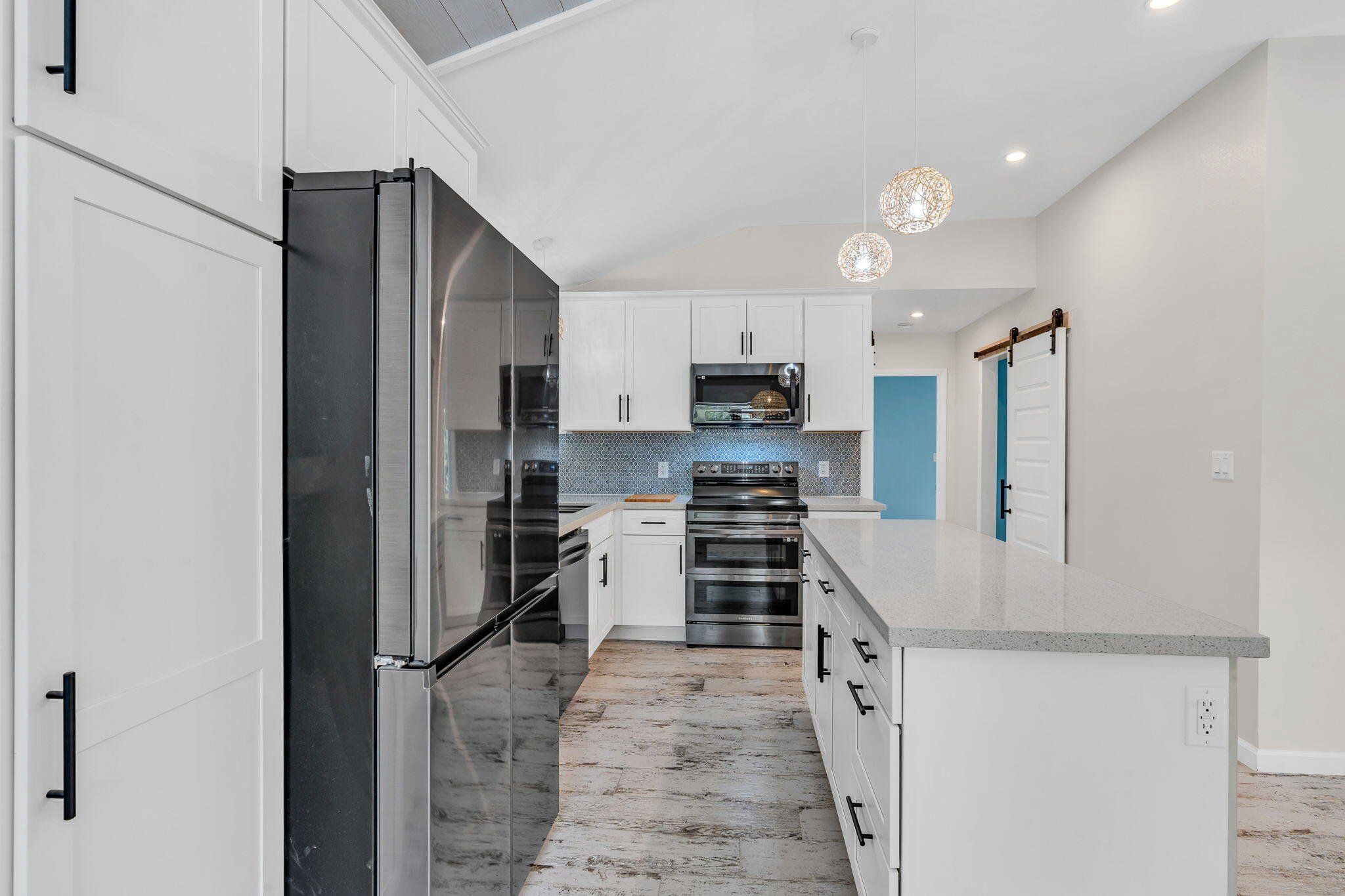 Beautiful 2 bedroom, 1 bathroom concrete block house high and dry in an X flood zone on a large lot surrounded by lush vegetation with plenty of privacy near Mile Marker (MM) 101. This home was completely renovated from top to bottom in 2023, with a new metal roof, A/C, plumbing, electrical, hurricane impact windows, hurricane impact doors, an elegant kitchen and bathroom, stainless steel appliances, and a tankless hot water heater. The neighborhood is quiet and serene, with friendly neighbors, located near John Pennekamp Park for kayaking, snorkeling, and easy access to the ocean.