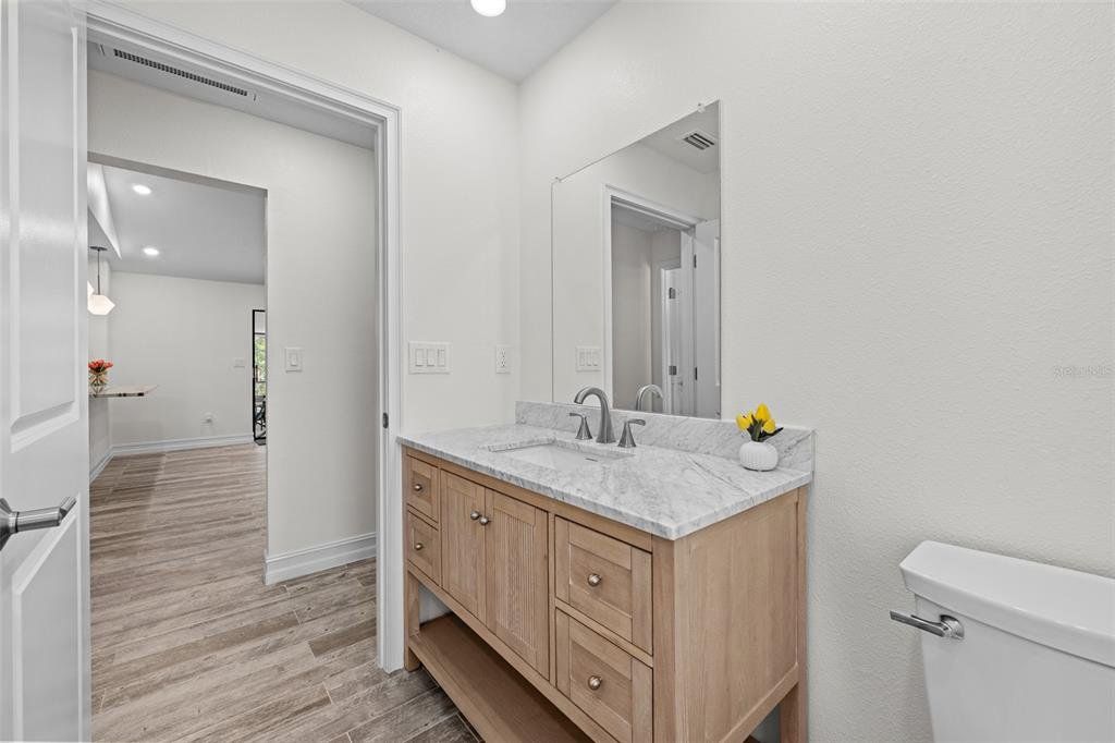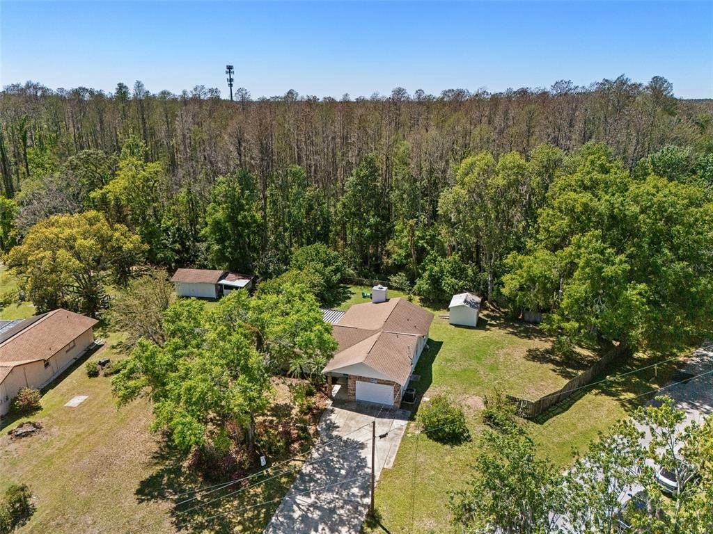 Beautifully remodeled single-family home situated on a serene 1.47-acre corner lot in Land O' Lakes, Florida! Located on a quiet, no-outlet road, this property offers the perfect blend of privacy and space. This home features 3 bedrooms, 2 bathrooms, and a 1-car insulated garage, along with a functional split-bedroom floor plan. Step inside to find soaring vaulted ceilings in the living room, creating an open and airy feel, complemented by ceiling fans throughout the bedrooms, living area, and dining space. The updated kitchen showcases stainless steel appliances, soft-close cabinetry, and elegant quartzite countertops. Enjoy Florida living at its finest as you step outside to the spacious covered and screened-in lanai, surrounded by tranquil trees that provide exceptional privacy and a peaceful setting. Extensive 2024 upgrades include luxury ceramic plank flooring, exterior paint, updated electrical and plumbing, a new A/C unit, modern kitchen finishes, and a Carbon UV air purifier for enhanced indoor air quality. This move-in-ready home combines modern upgrades with a generous lot and quiet location. An exceptional opportunity you won't want to miss!