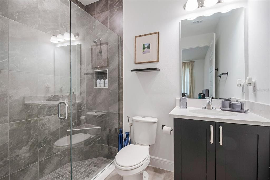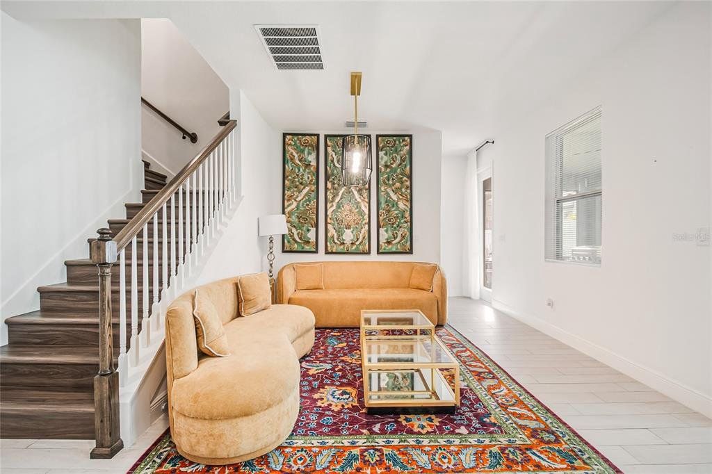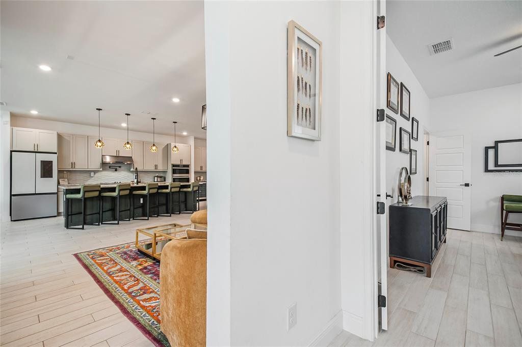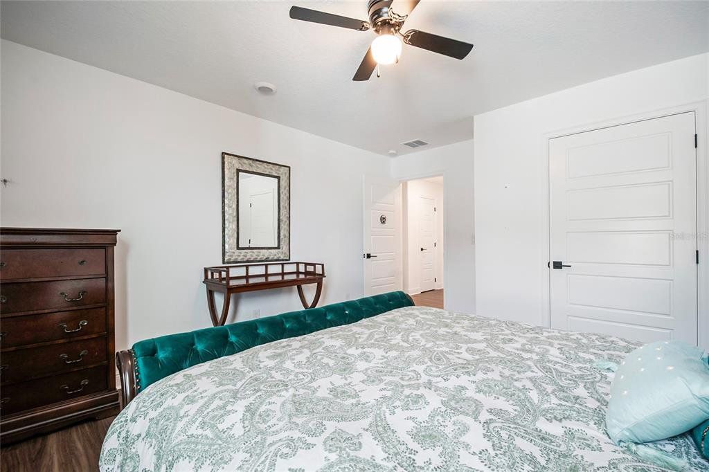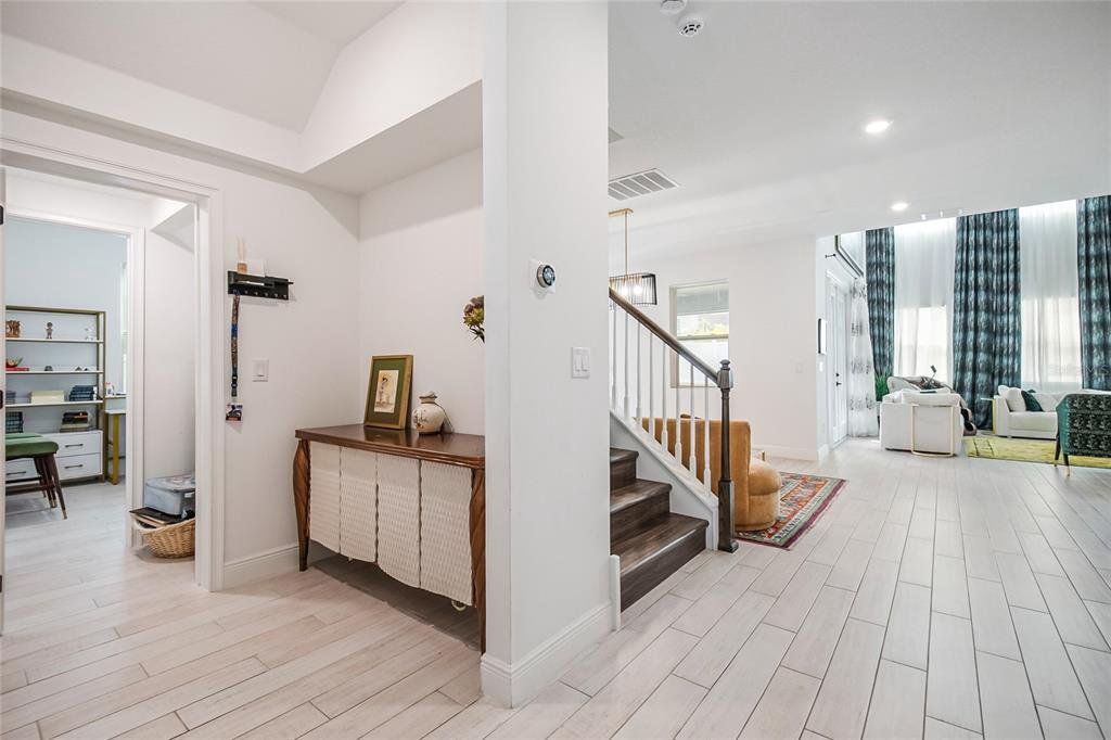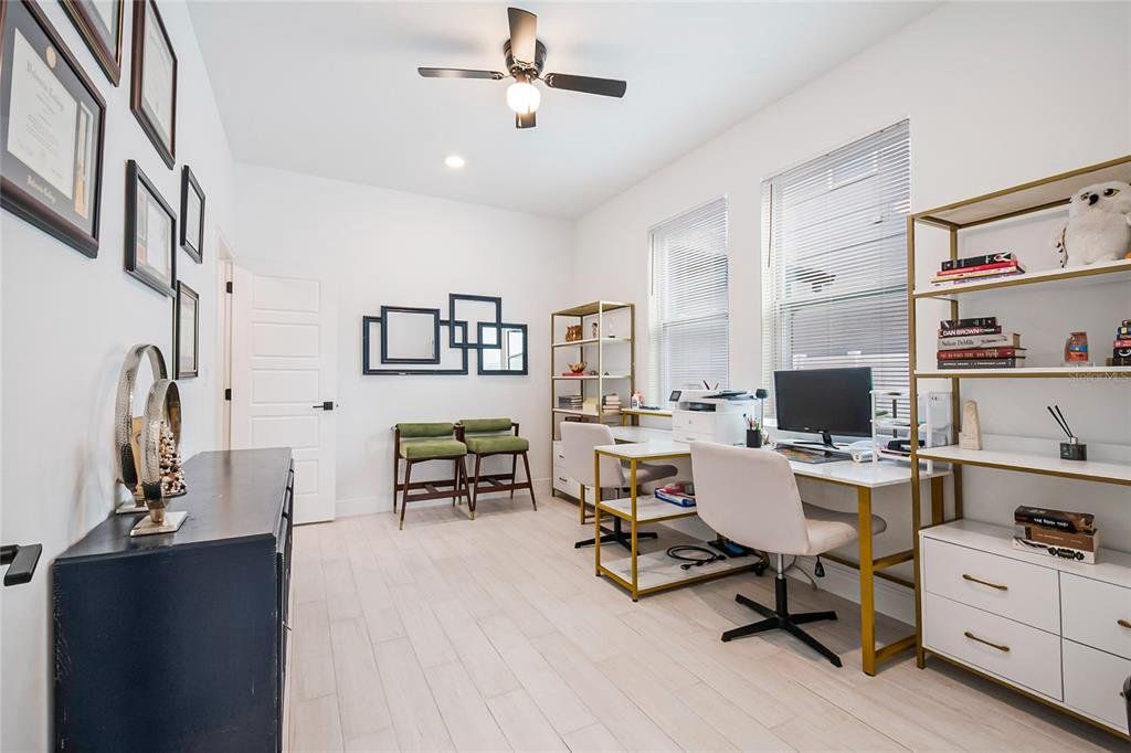 Property is currently offered for both SALE and LEASE! Availability may be subject to change based on status. Welcome to this beautiful 2024 two-story home thoughtfully designed for modern family living, featuring 5 spacious bedrooms, a large first-floor guest suite with an en-suite bath, a dedicated oversized office, a separate formal dining area, 4 full bathrooms, and a convenient powder bath. Soaring high ceilings, upgraded finishes, and luxury vinyl flooring throughout—no carpet anywhere, including the stairs which create a bright, elegant, and low-maintenance living environment. The chef’s dream kitchen flows seamlessly into the open-concept family room, making it perfect for everyday living and entertaining. Enjoy indoor-outdoor living with a screened lanai overlooking a fully fenced backyard, ideal for kids, pets, and gatherings. Upstairs, you’ll find four additional bedrooms, including a stunning primary suite with a huge walk-in dream closet, rain shower, dual sinks, and vanity, along with a spacious open loft that overlooks the family area below, adding to the home’s airy, grand feel. Another upstairs bedroom features an en-suite bath, and the large laundry room is conveniently located on the second floor. Located less than one mile from the new Advent Health hospital and just minutes from the Florida Turnpike, shopping, and dining, this resort-style community offers a clubhouse with pool, fitness center, tennis courts, an on-site school, and a playground within walking distance. Move-in ready and perfectly positioned in a desirable neighborhood, this exceptional home is ready to create lasting family memories. Schedule your private showing today!