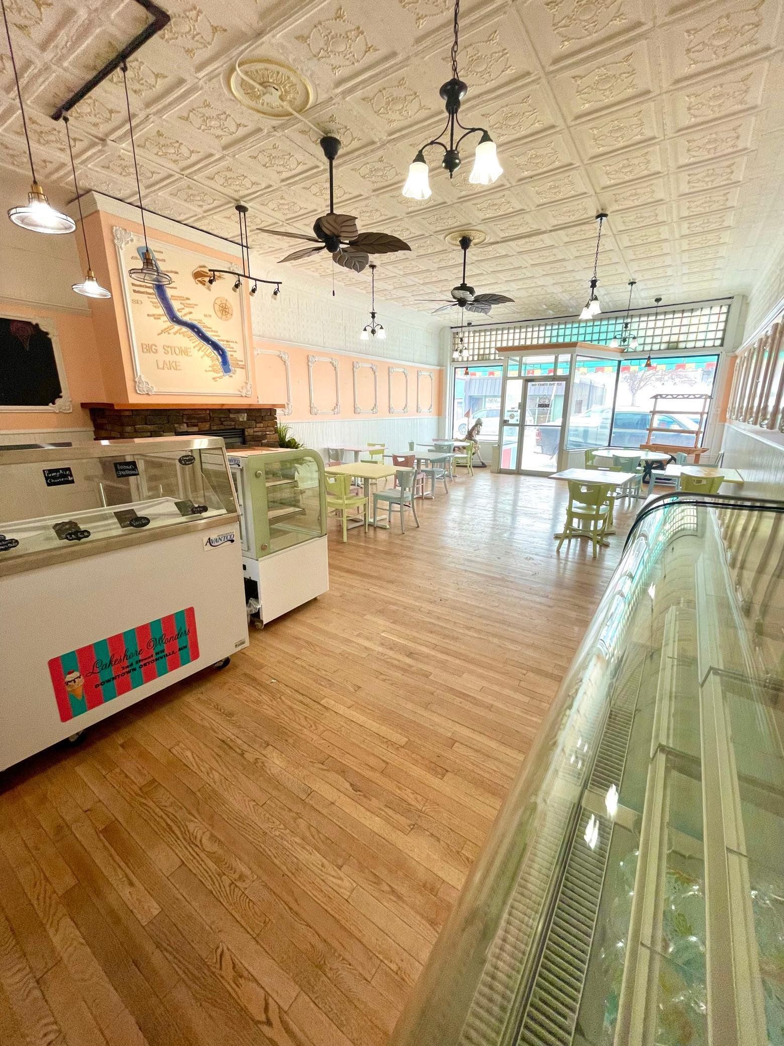 For Sale: An exciting opportunity for an affordable, turn-key business on Main St Ortonville. Lakeshore Wonders offers a beautiful setting with a building that allows for excellent versatility in business offerings. Most notably known for its delicious ice cream offerings, coffee shop refreshments, and lunch specials, the Lakeshore Wonders facility is able to accommodate a wide range of business opportunities. The large kitchen provides fridge and freezer space and the excellent storage and work space areas are perfect for prepping and preparing food. The large window storefront invites customers into its comfortable seating area highlighted by the ornate ceiling and decorative wall space. With the location and equipment in place, all that is needed is its new owner! Give us a call to take a look at this great business opportunity.