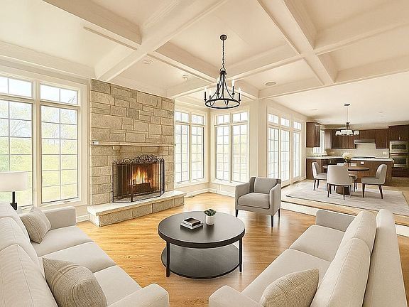 Live the life of refined luxury in this exceptional custom brick and stone estate, perfectly positioned on a premium, private lot in Kildeer’s highly sought-after Prairie Creek community—within the nationally acclaimed Stevenson High School district. Thoughtfully designed and richly appointed, this sun-filled home offers serene pond views from almost every room and an atmosphere of peaceful elegance. Step through the grand two-story foyer, accented with architectural columns, custom millwork, and a sparkling chandelier, opening seamlessly into the formal living and dining rooms—both finished with timeless crown molding and sophisticated detailing. The gourmet chef’s kitchen is a dream for both cooking and entertaining, showcasing quartz countertops, a large center island, high-end stainless steel appliances, walk-in pantry, breakfast bar, and spacious eating area with access to the elevated deck overlooking the tranquil water. Flowing effortlessly from the kitchen, the spacious sunken family room features a coffered ceiling and stone fireplace, creating an inviting centerpiece for gatherings. A private home office, elegant powder room, and convenient first-floor laundry complete the main level. Upstairs, retreat to a luxurious primary suite designed to impress—featuring a tray ceiling, cozy fireplace, sitting room, and two expansive, custom walk-in closets, along with a spa-inspired ensuite bath. An additional upstairs laundry adds ease and functionality. Three more generously sized bedrooms, each with its own private ensuite bath, and a versatile loft complete the second floor. The walk-out lower level expands your living and entertaining space even further with a second full kitchen, expansive recreation room, fitness area, 5th bedroom, full bath, and flexible storage areas—ideal for gatherings, guest quarters, or multigenerational living. Outdoor living is equally impressive with a paver patio, elevated deck, and picturesque pond views providing a peaceful backdrop—perfect for morning coffee or evening sunsets. Additional features include: • Brand new roof • Brazilian cherry hardwood flooring throughout • All season sunroom • Meticulously maintained and move-in ready Ideally located moments from Deer Park premier shopping, dining, and conveniences, as well as major highways. This home is a rare opportunity—combining luxury, comfort, privacy, and an unbeatable location. Truly a must-see. Show more