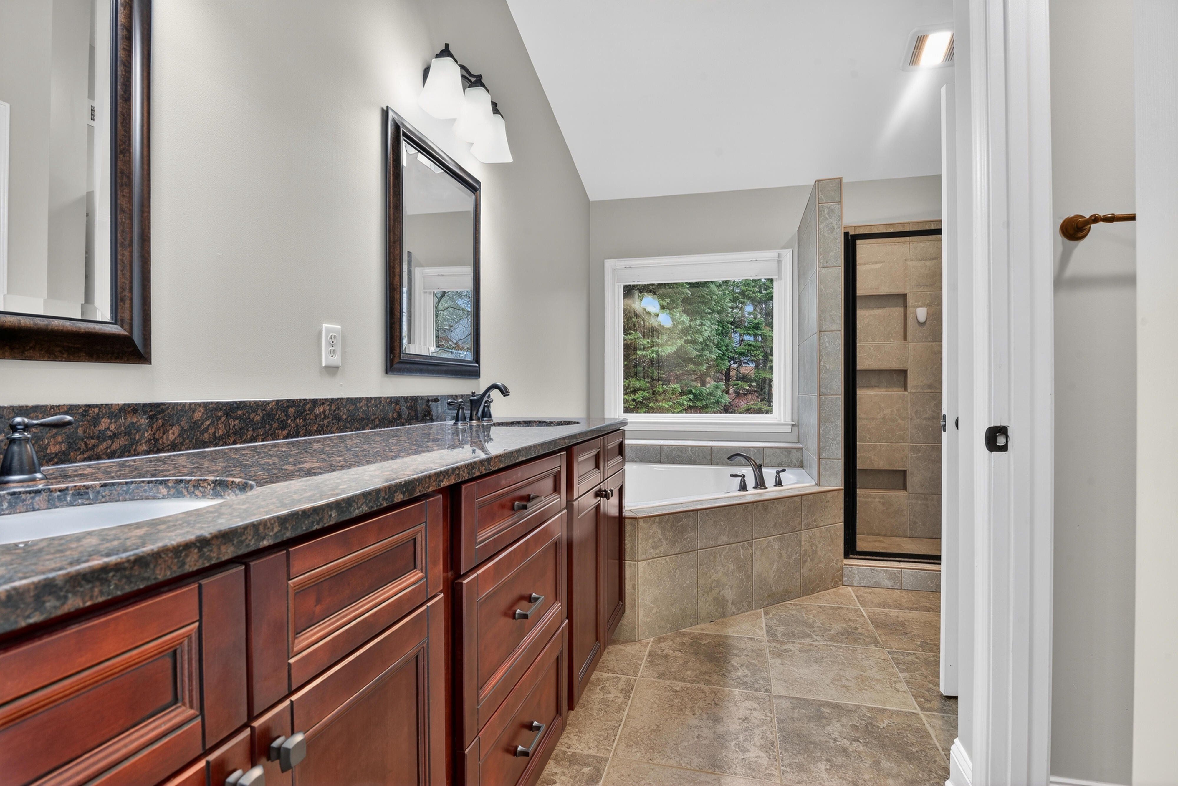 This home is move in ready and a must see. This open concept home boasts new energy efficient windows, new air conditioner, new paint throughout, and new carpet on the upper level. Walk into the spacious foyer, with high ceilings. On the main floor is the den, dinning room with large bay window, large family room and well appointed kitchen with stainless steel appliances and granite countertops. The back door opens onto a new deck and into the professionally landscaped private backyard. The laundry features new washer and dryer. The oversized garage has a laundry sink and storage. The upper level is anchored by a large master bedroom with attached office/library, and three spacious bedrooms. All bathrooms have been professionally remodeled. The lower level has a finished movie/game room, and a large workshop.