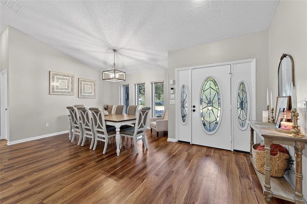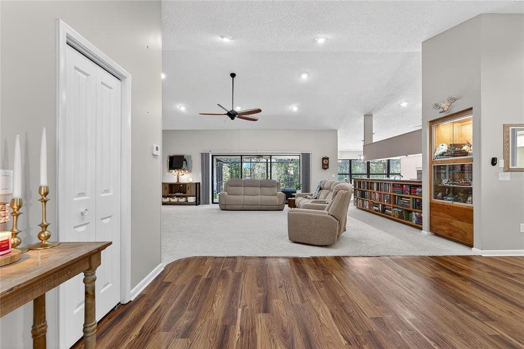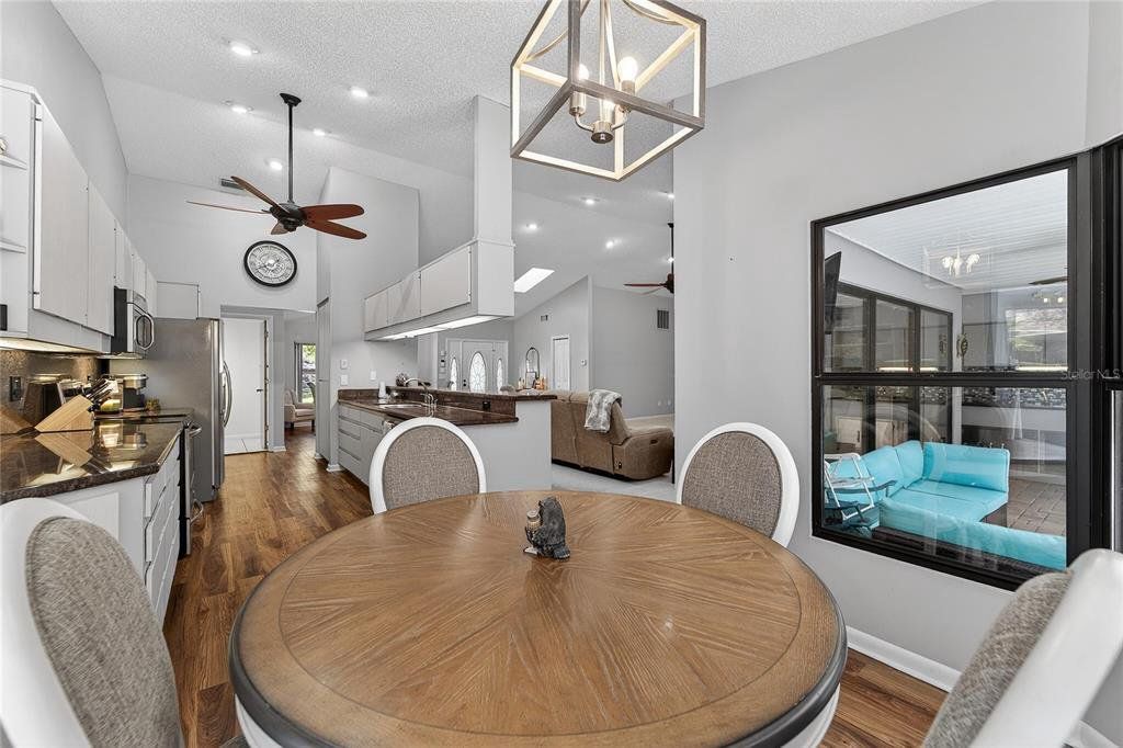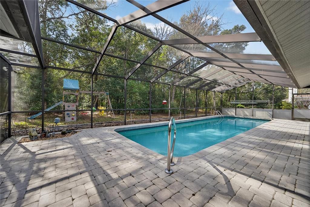 Welcome to this custom and one of a kind pool home nestled on over a quarter-acre along the picturesque, tree-lined Chinkapin Circle in the highly sought-after Sugar Mill community. Offering more than 2,300 square feet of thoughtfully designed living space, this 3 bedroom, 2.5 bath home delivers the perfect blend of comfort, style, and functionality. The light-filled open floor plan features soaring vaulted ceilings and expansive windows that create an airy, Luxury Vinyl Flooring and inviting atmosphere ideal for both everyday living and entertaining. The kitchen is equipped with granite countertops, stainless steel appliances, and a gas range, seamlessly connecting to the living area for effortless gatherings. With updated lighting, durable LVP flooring, abundant storage, and a stunning fireplace as the centerpiece of the living room. The main living space is a show stopper. Retreat to the spacious primary suite with private pool access, dual closets, and a spa-inspired ensuite featuring dual sinks, a steam shower, skylight, and updated finishes. The additional two bedrooms and bathroom are located on the other side of the home creating privacy and space. Step outside to your heated 12x38 screened in pool that is perfect for year round enjoyment. It is surrounded by a generous yard with plenty of room to relax or entertain. This home offers the lifestyle you are looking for in one of Citrus County’s most desirable communities. Features include Central Vacuum, Newer Roof 2023, New A/C 2025, Newer Interior Paint 2023. Spa is not operable.