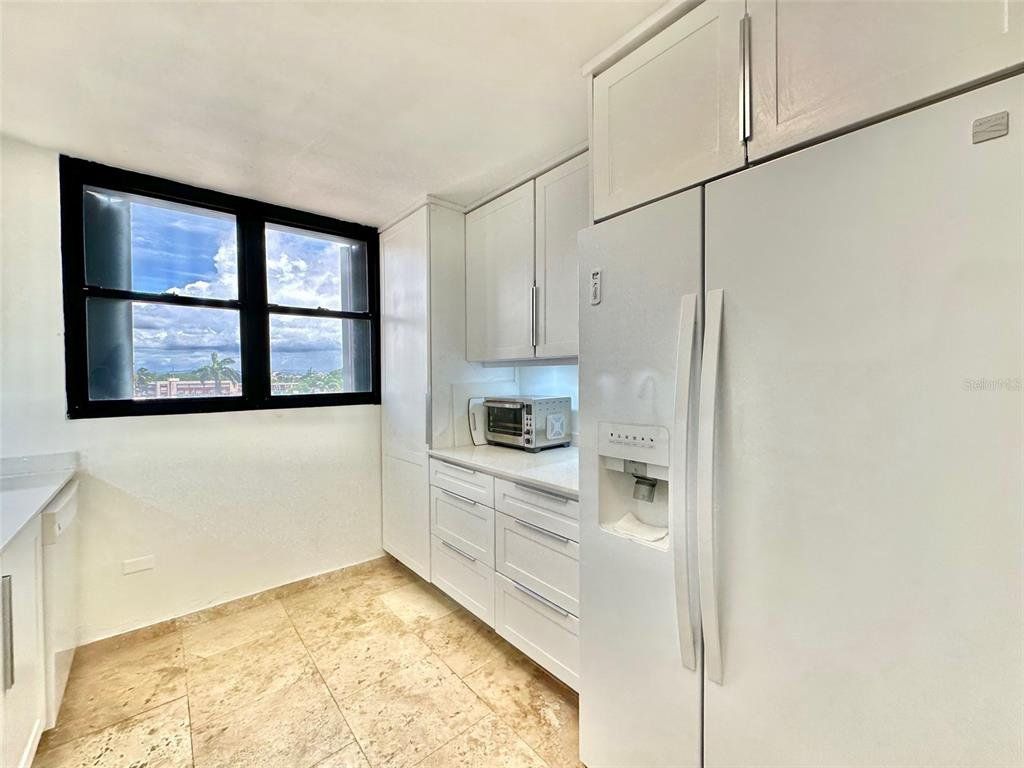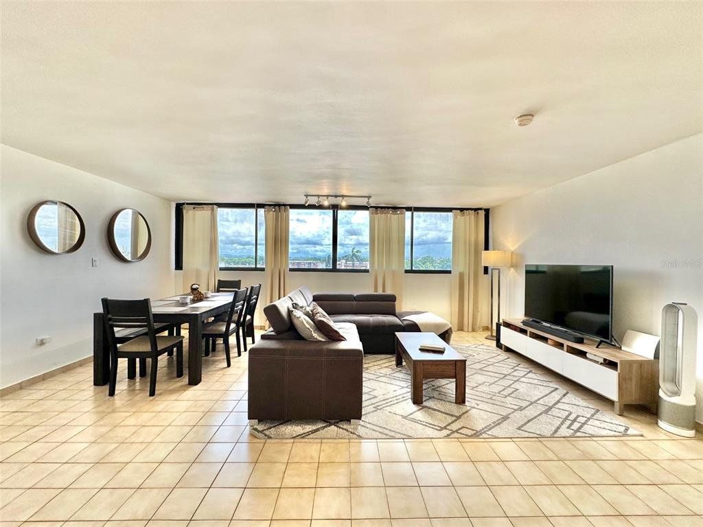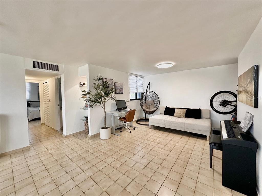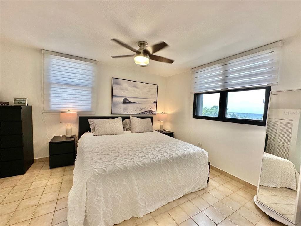 LIVE STEPS AWAY FROM THE BEACH at this 2 bedrooms (convertible to 3), 2 bathrooms apartment. Ensuite master bedroom with ocean views, three closets with potential of a walk-in closet. Recently renovated kitchen with quartz kitchen and bathroom counter tops, laundry closet with modern washer and dryer. Open-concept living/dining/family area with plenty space. Unit includes central AC, new shades, and one assigned parking space. The Terrace Condo. offers; gated community with 24/7 security, two elevators, partial power generator with emergency outlet at every apartment, gym, pool area with gazebo. , Live next to Barbosa Park (recently renovated), the beach, Calle Loíza, Condado and Isla Verde.