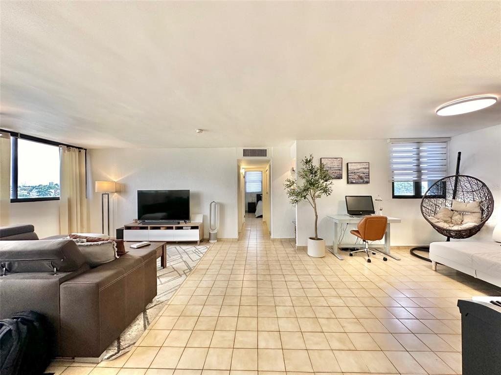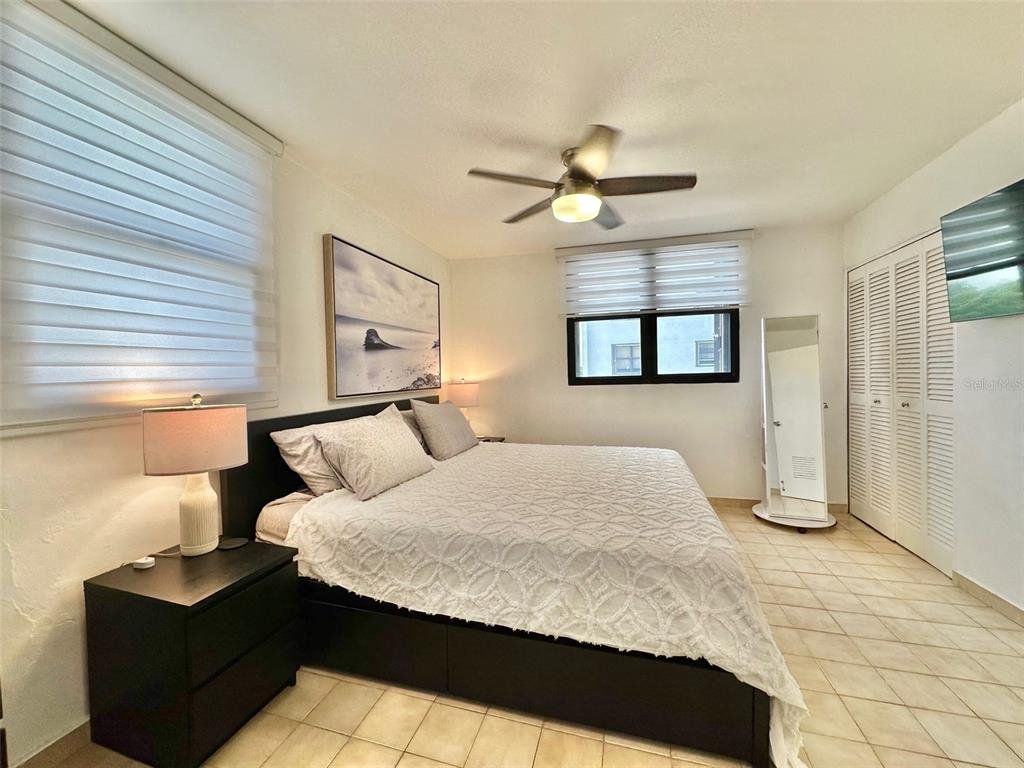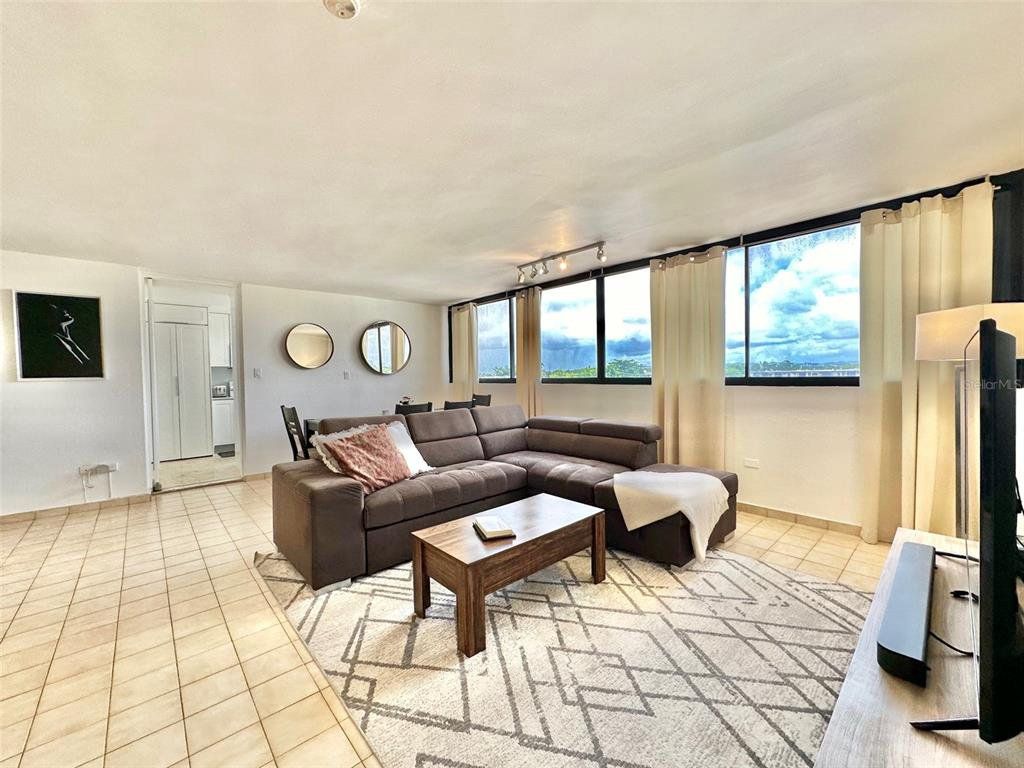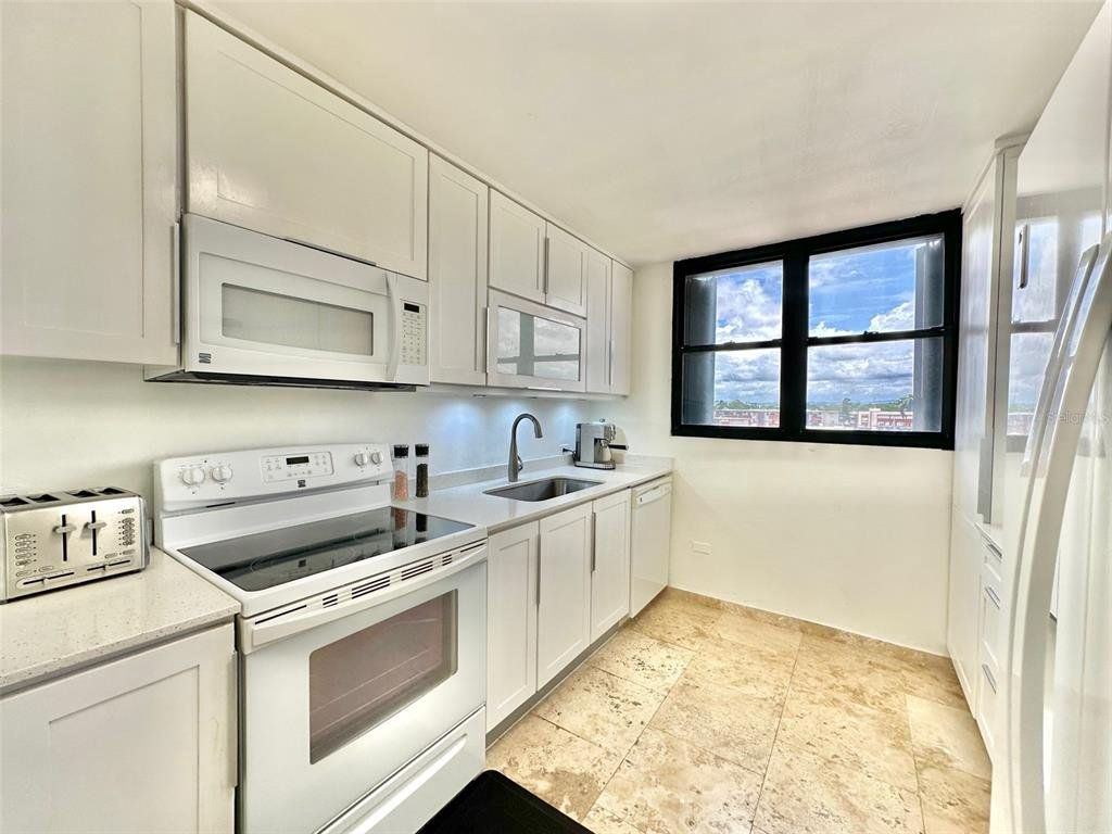 LIVE STEPS AWAY FROM THE BEACH at this 2 bedrooms (convertible to 3), 2 bathrooms apartment. Ensuite master bedroom with ocean views, three closets with potential of a walk-in closet. Recently renovated kitchen with quartz kitchen and bathroom counter tops, laundry closet with modern washer and dryer. Open-concept living/dining/family area with plenty space. Unit includes central AC, new shades, and one assigned parking space. The Terrace Condo. offers; gated community with 24/7 security, two elevators, partial power generator with emergency outlet at every apartment, gym, pool area with gazebo. , Live next to Barbosa Park (recently renovated), the beach, Calle Loíza, Condado and Isla Verde.