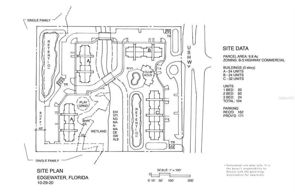 9.77 +/- acres site recently approved for multi-family, located in Edgewater, FL. Situated on a major thoroughfare, US Highway 1 (Ridgewood Avenue); less than half mile South of Indian River Blvd (US Highway 442). Zoned B-3 Highway Commercial. With the potential of developing an apartment complex of 100+ units. A variety of uses include also automobile services, sales and leasing, boat sales and leasing, day care - children or adult, financial institution, garden & yard supplies, hotel / motel, machine shop / repair, medical / dental offices, recreational uses, restaurants, retail - general, shopping centers. Nearby businesses include Dunkin, Chick-fil-A, Publix, Winn-Dixie, Wells Fargo, CVS, Jiffy Lube and Best Western. Anticipated Deering Park Center will be located less than 5 miles away and has been approved for 1,362 homes.