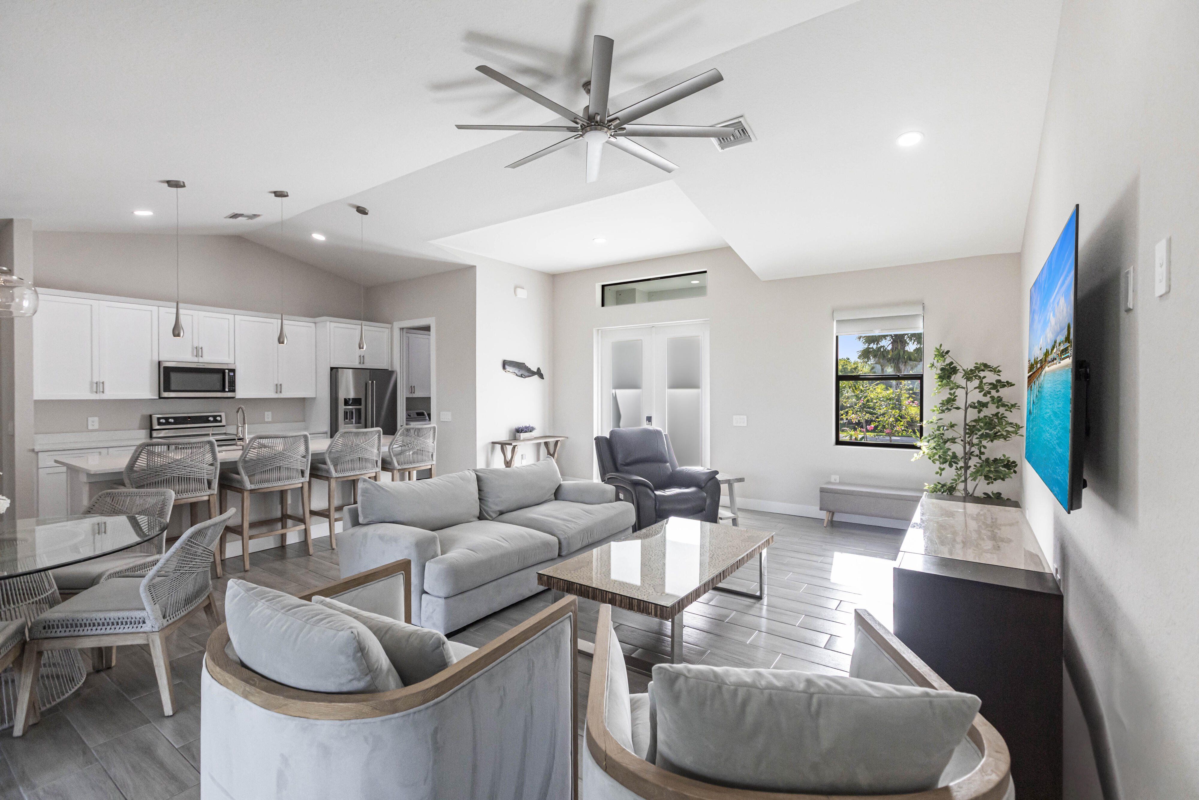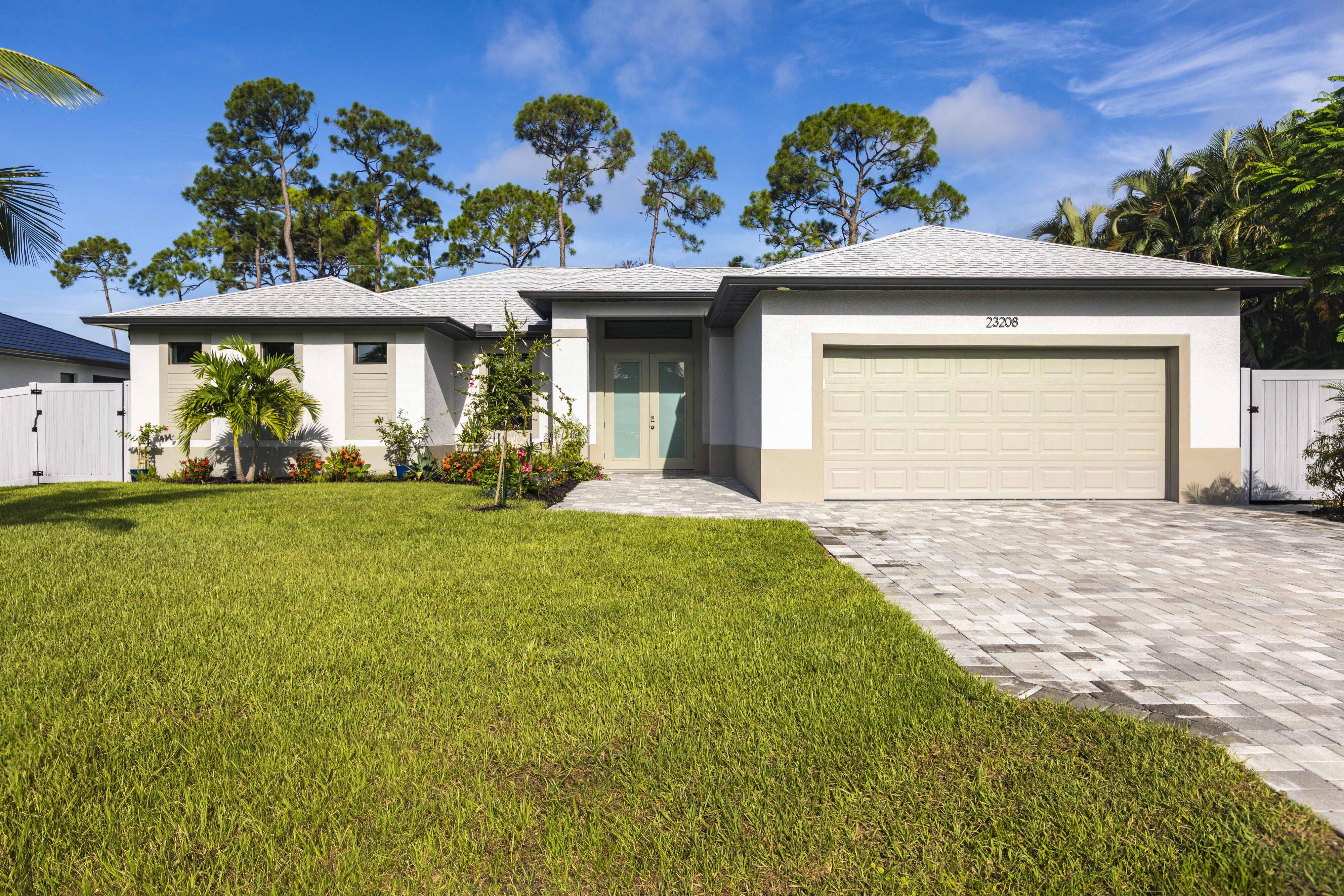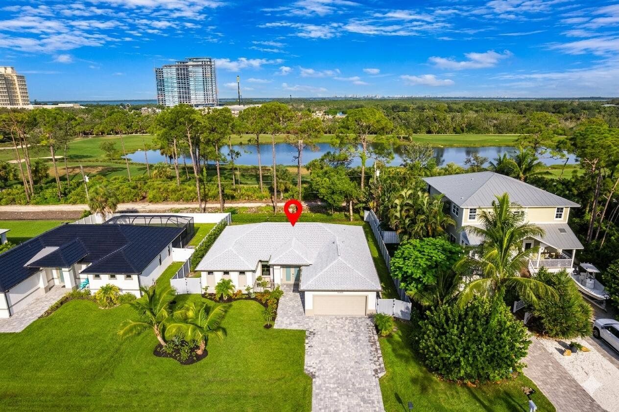 Now available at $719,000 — one of the best values on the Saltleaf Golf Preserve. This nearly new 2023-built, 4-bedroom, 2-bath golf course home is set directly on the preserve in El Dorado Acres, a quiet, no-HOA neighborhood west of U.S. 41 in Bonita Springs. The single-story layout features bright, open living with tile flooring throughout, quartz countertops, custom wood cabinetry, and KitchenAid stainless-steel appliances. Abundant natural light fills the open-concept kitchen and living area, flowing seamlessly to the backyard—designed for entertaining and easy everyday living. The primary suite is a private retreat with peaceful golf course views and a spa-inspired bath featuring a soaking tub, walk-in shower, dual vanities, and dual walk-in closets. Three additional bedrooms provide flexibility for guests, a home office, or hobbies. Impact-rated windows and doors provide added peace of mind. The west-facing, fully fenced backyard overlooks the Saltleaf Golf Preserve and captures tranquil sunset views, with ample space for a pool. Located just minutes from Bonita Beach, Barefoot Beach, Lovers Key, Coconut Point Mall, Hyatt Regency Coconut Point, and the future Ritz-Carlton Residences with public marina access, this home combines modern comfort, lifestyle freedom, and an exceptional coastal location. Furniture negotiable.