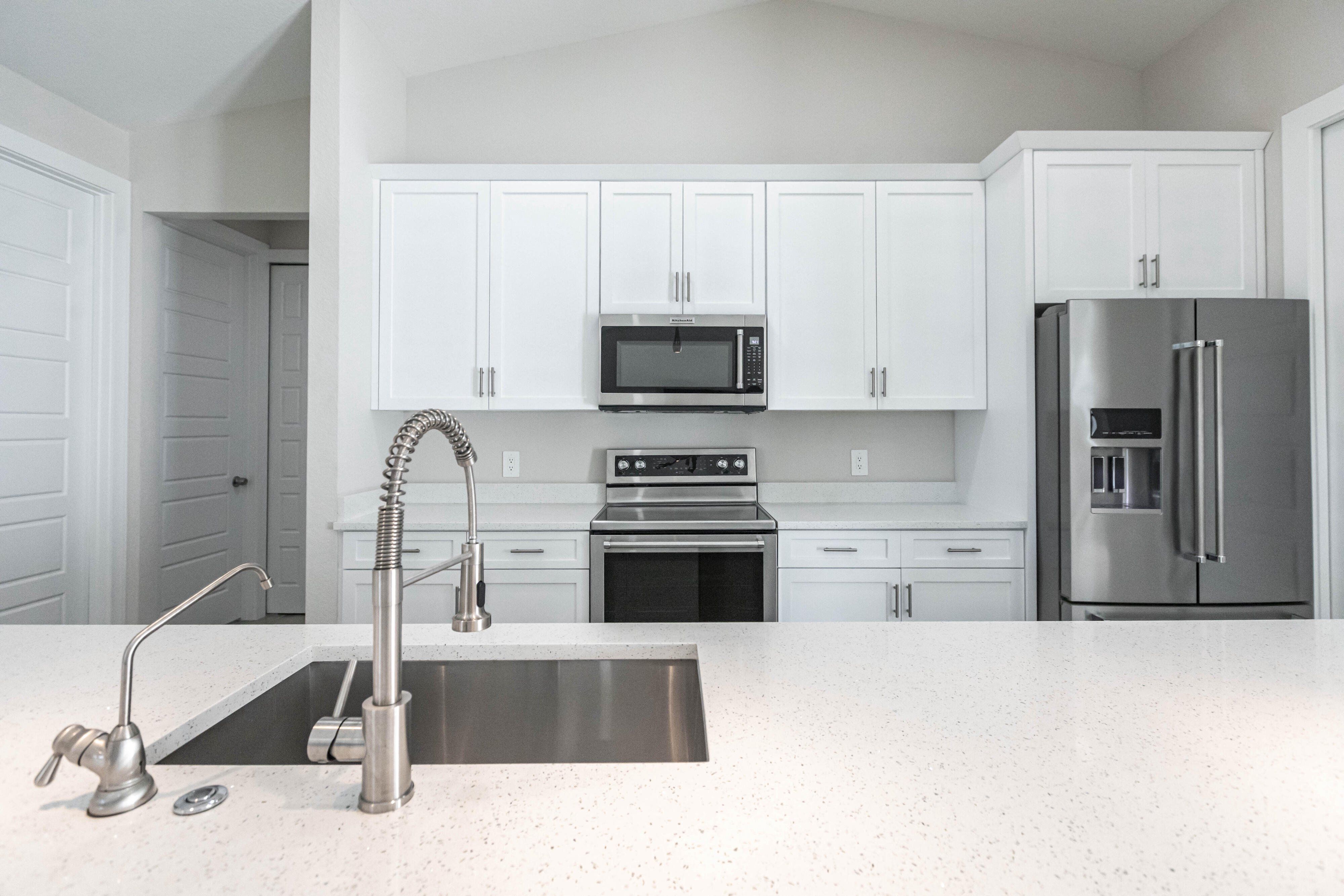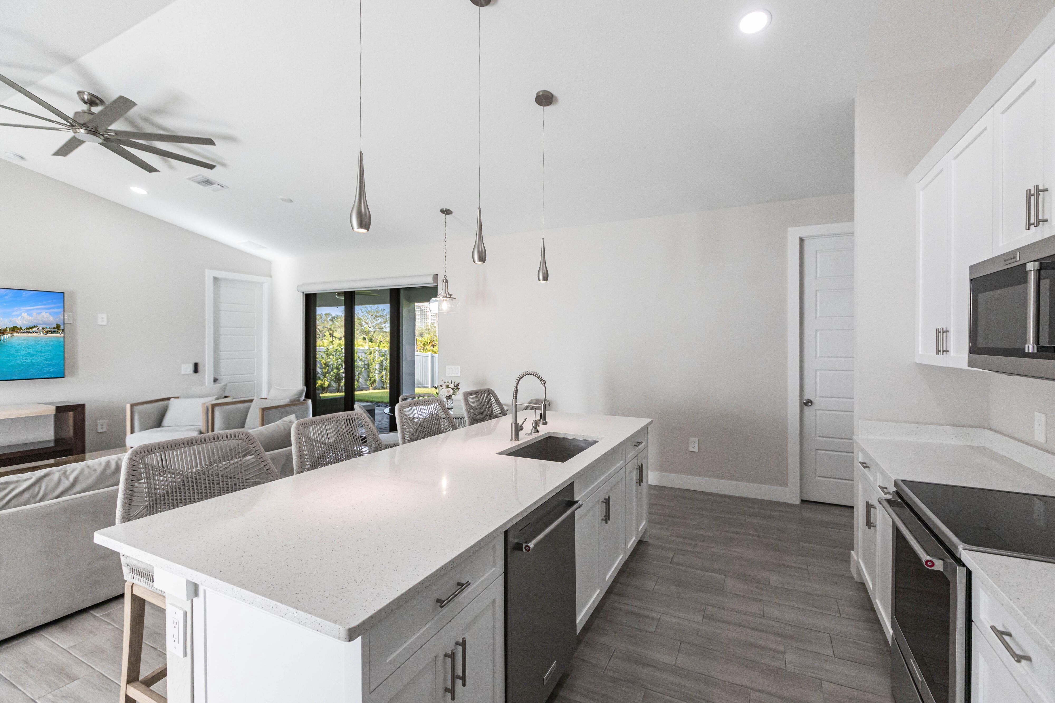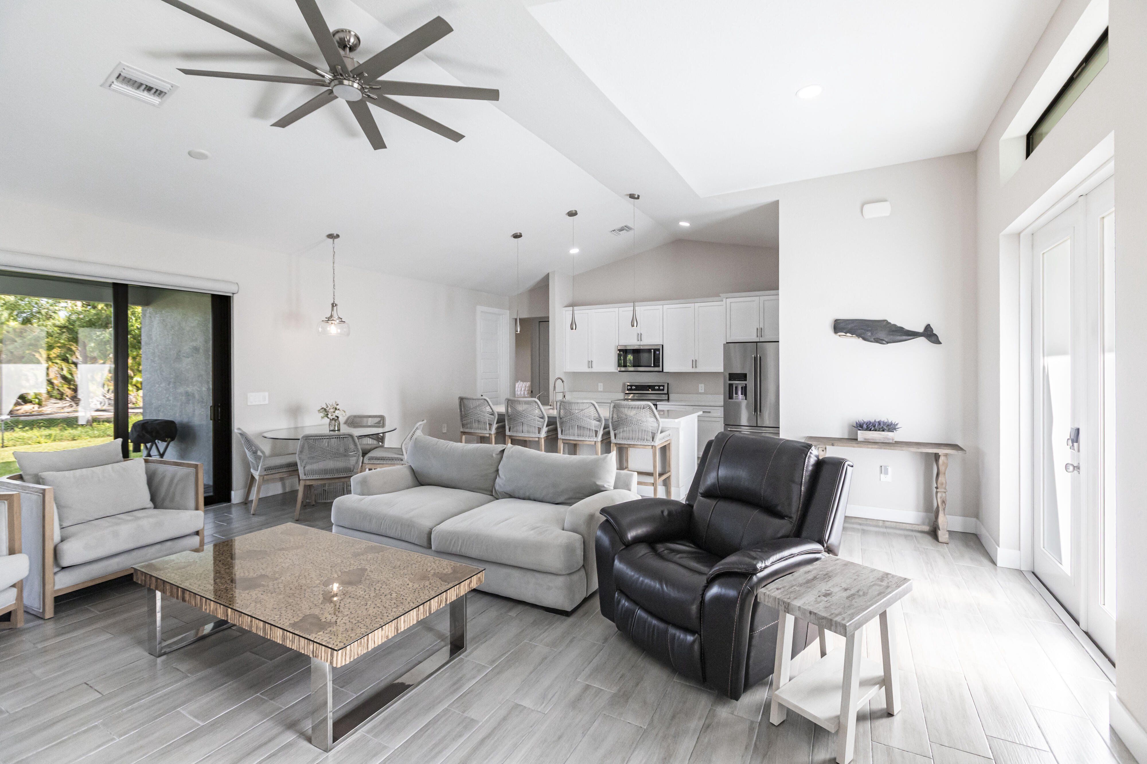 Now available at $719,000 — one of the best values on the Saltleaf Golf Preserve. This nearly new 2023-built, 4-bedroom, 2-bath golf course home is set directly on the preserve in El Dorado Acres, a quiet, no-HOA neighborhood west of U.S. 41 in Bonita Springs. The single-story layout features bright, open living with tile flooring throughout, quartz countertops, custom wood cabinetry, and KitchenAid stainless-steel appliances. Abundant natural light fills the open-concept kitchen and living area, flowing seamlessly to the backyard—designed for entertaining and easy everyday living. The primary suite is a private retreat with peaceful golf course views and a spa-inspired bath featuring a soaking tub, walk-in shower, dual vanities, and dual walk-in closets. Three additional bedrooms provide flexibility for guests, a home office, or hobbies. Impact-rated windows and doors provide added peace of mind. The west-facing, fully fenced backyard overlooks the Saltleaf Golf Preserve and captures tranquil sunset views, with ample space for a pool. Located just minutes from Bonita Beach, Barefoot Beach, Lovers Key, Coconut Point Mall, Hyatt Regency Coconut Point, and the future Ritz-Carlton Residences with public marina access, this home combines modern comfort, lifestyle freedom, and an exceptional coastal location. Furniture negotiable.