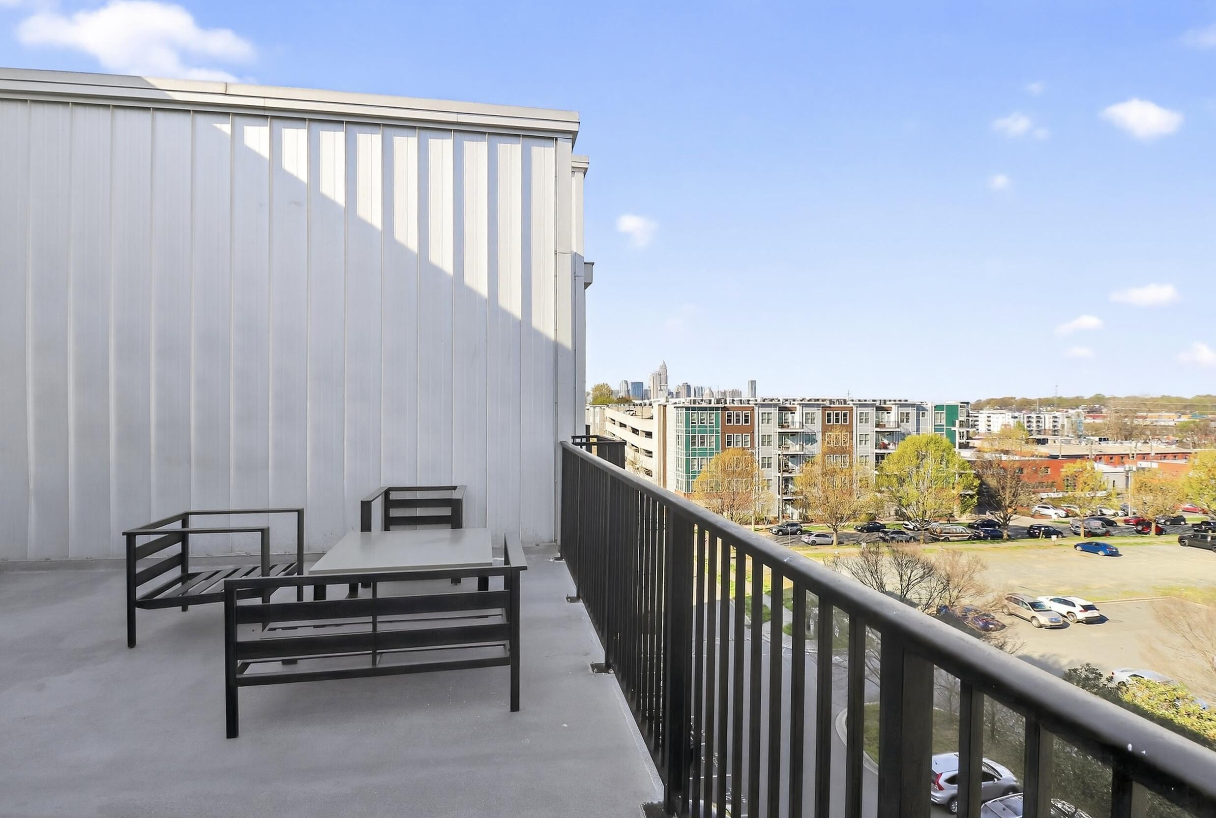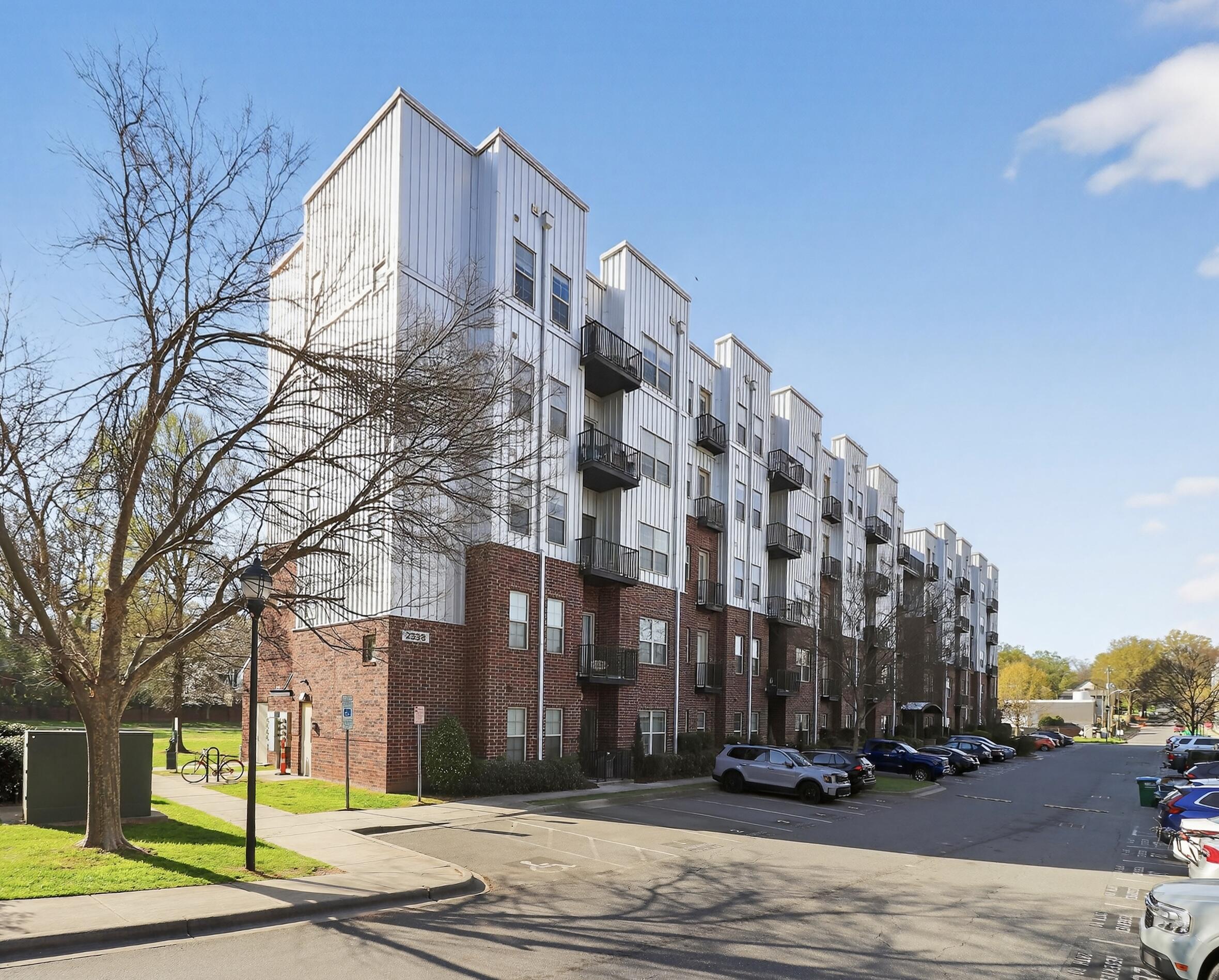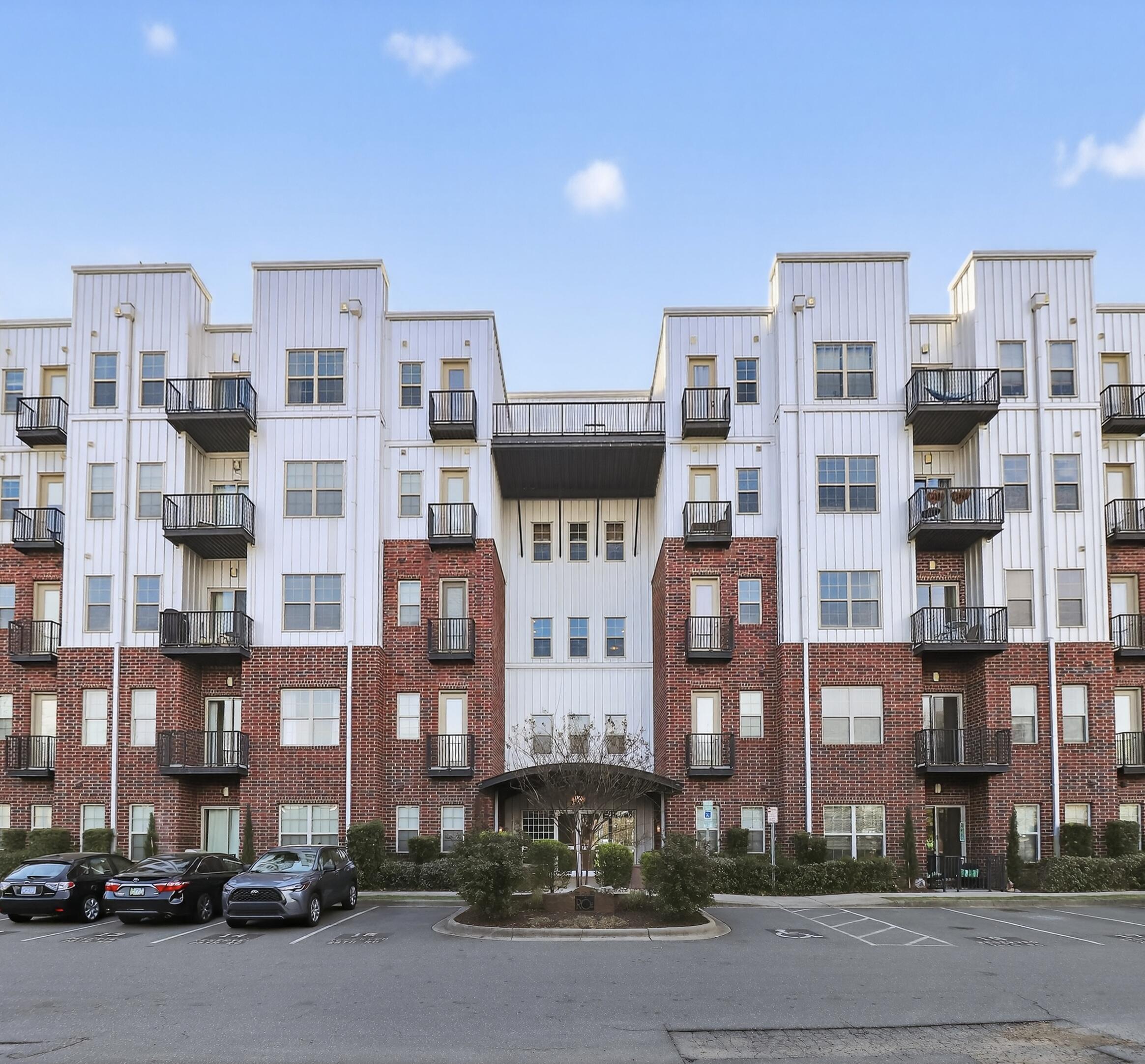 Modern 1BR condo in the heart of NoDa with an open layout, high ceilings, and industrial exposed ductwork. Features polished concrete floors, granite countertops, stainless steel appliances, and a dedicated built-in workspace. Large windows and an oversized private balcony provide abundant natural light. The refrigerator, washer, and dryer remain with the property. Significant upgrades include a new HVAC in 2022, a 2024 dishwasher, and recently installed smoke/carbon monoxide detectors. Situated in the premier 28th Row community, offering a rooftop terrace and pet-friendly green space. Ideally located just steps from Optimist Hall, local breweries, diverse dining, and the light rail station. This move-in-ready home delivers the ultimate urban lifestyle. Some photos have been virtually staged. Some photos have been virtually rendered.