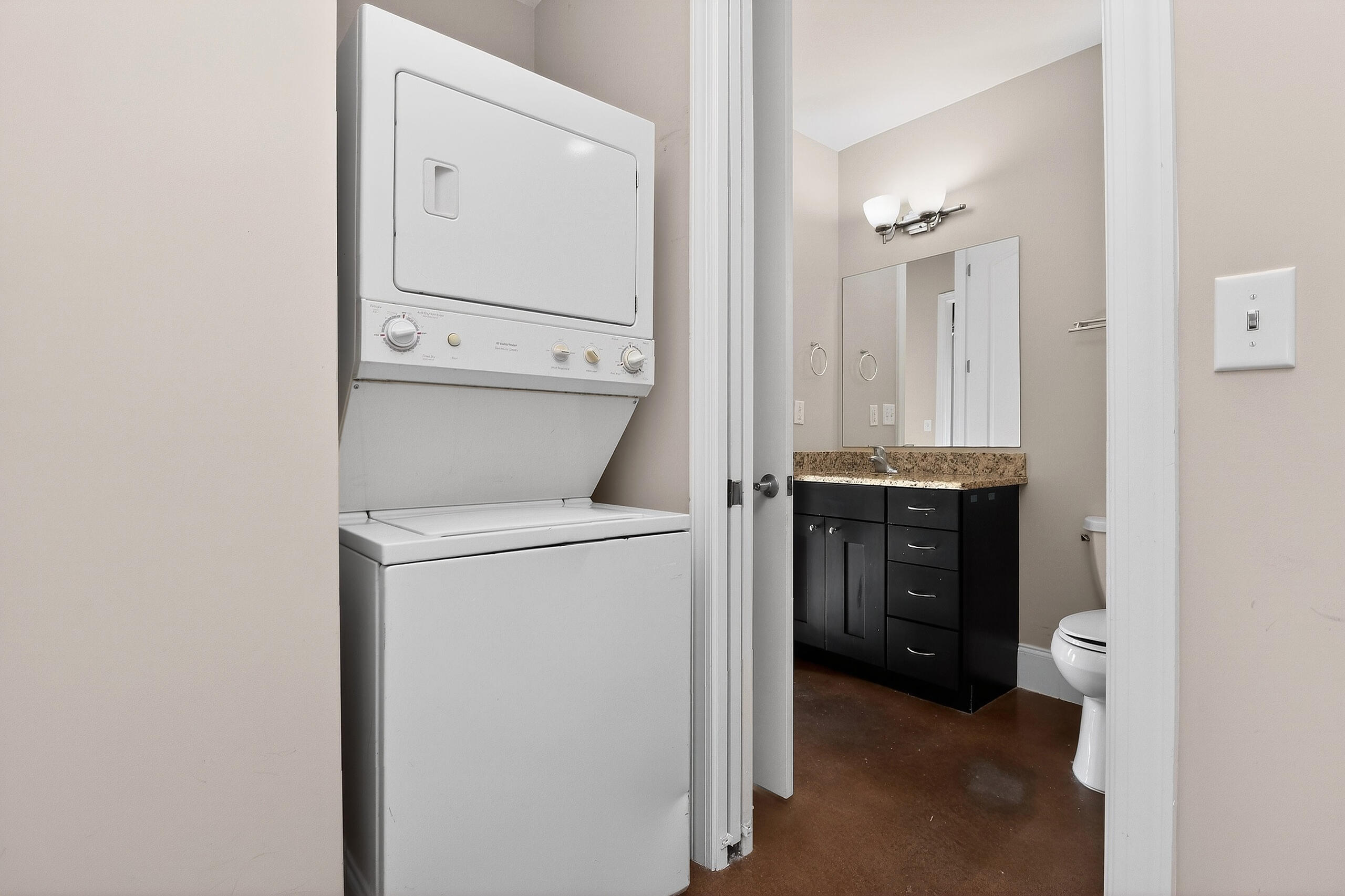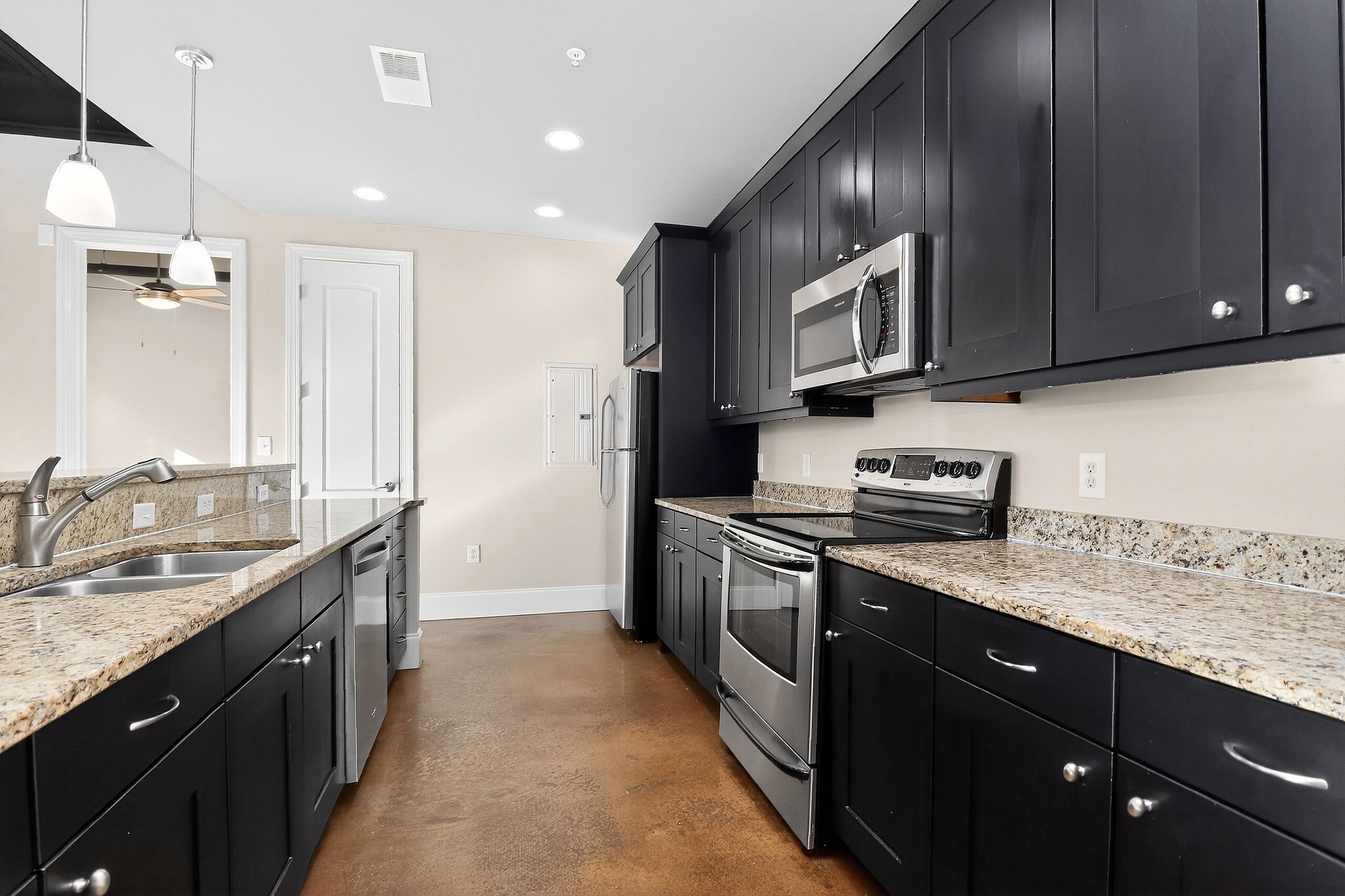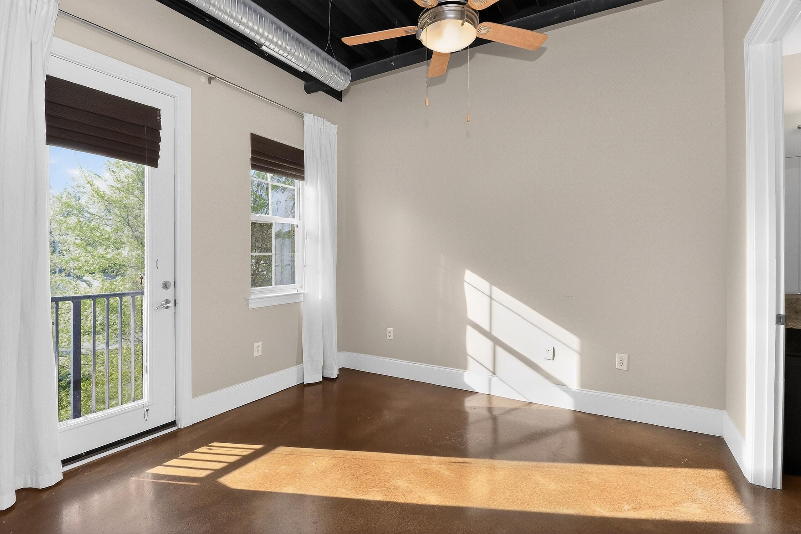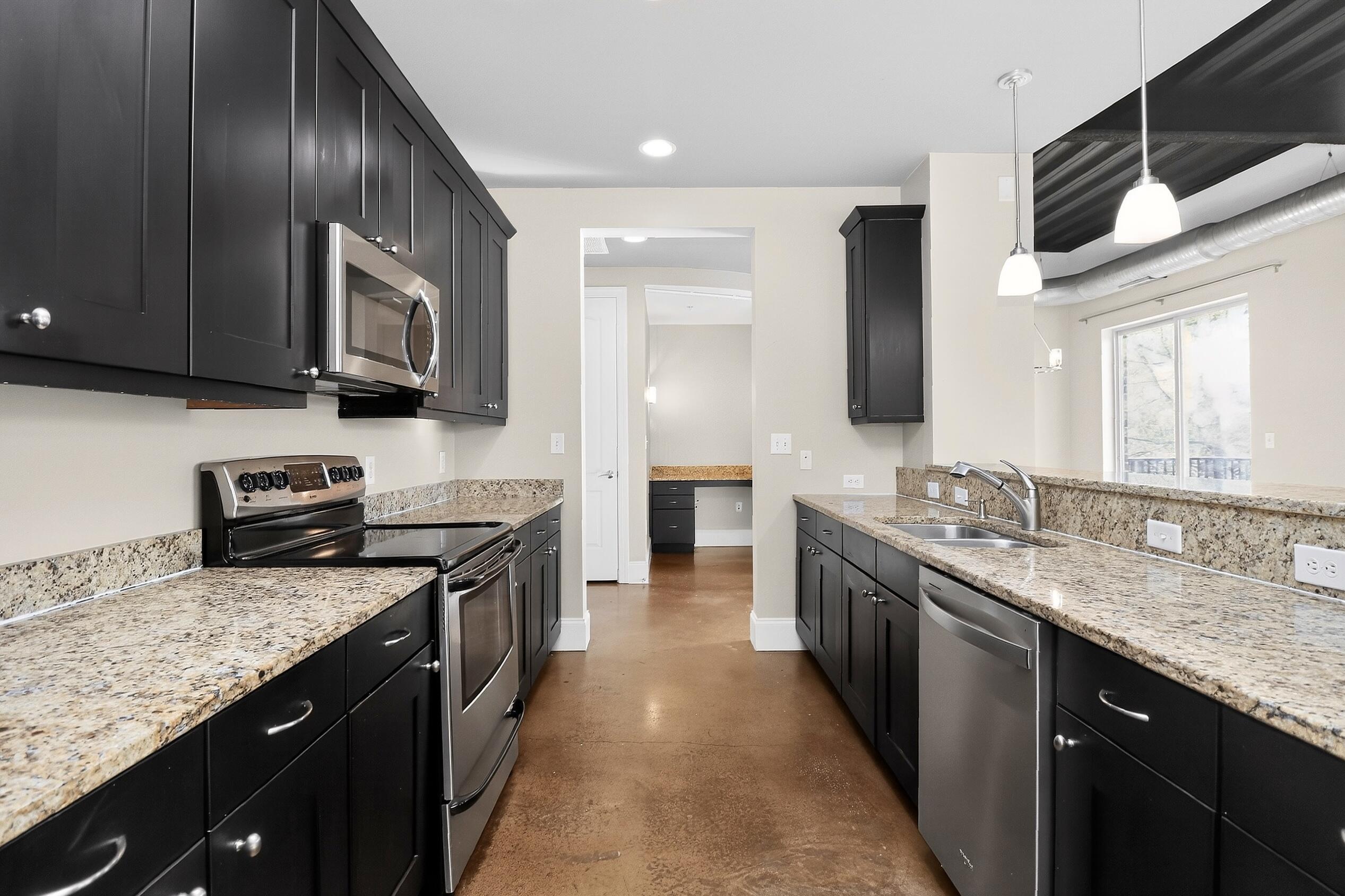 Modern 1BR condo in the heart of NoDa with an open layout, high ceilings, and industrial exposed ductwork. Features polished concrete floors, granite countertops, stainless steel appliances, and a dedicated built-in workspace. Large windows and an oversized private balcony provide abundant natural light. The refrigerator, washer, and dryer remain with the property. Significant upgrades include a new HVAC in 2022, a 2024 dishwasher, and recently installed smoke/carbon monoxide detectors. Situated in the premier 28th Row community, offering a rooftop terrace and pet-friendly green space. Ideally located just steps from Optimist Hall, local breweries, diverse dining, and the light rail station. This move-in-ready home delivers the ultimate urban lifestyle. Some photos have been virtually staged. Some photos have been virtually rendered.