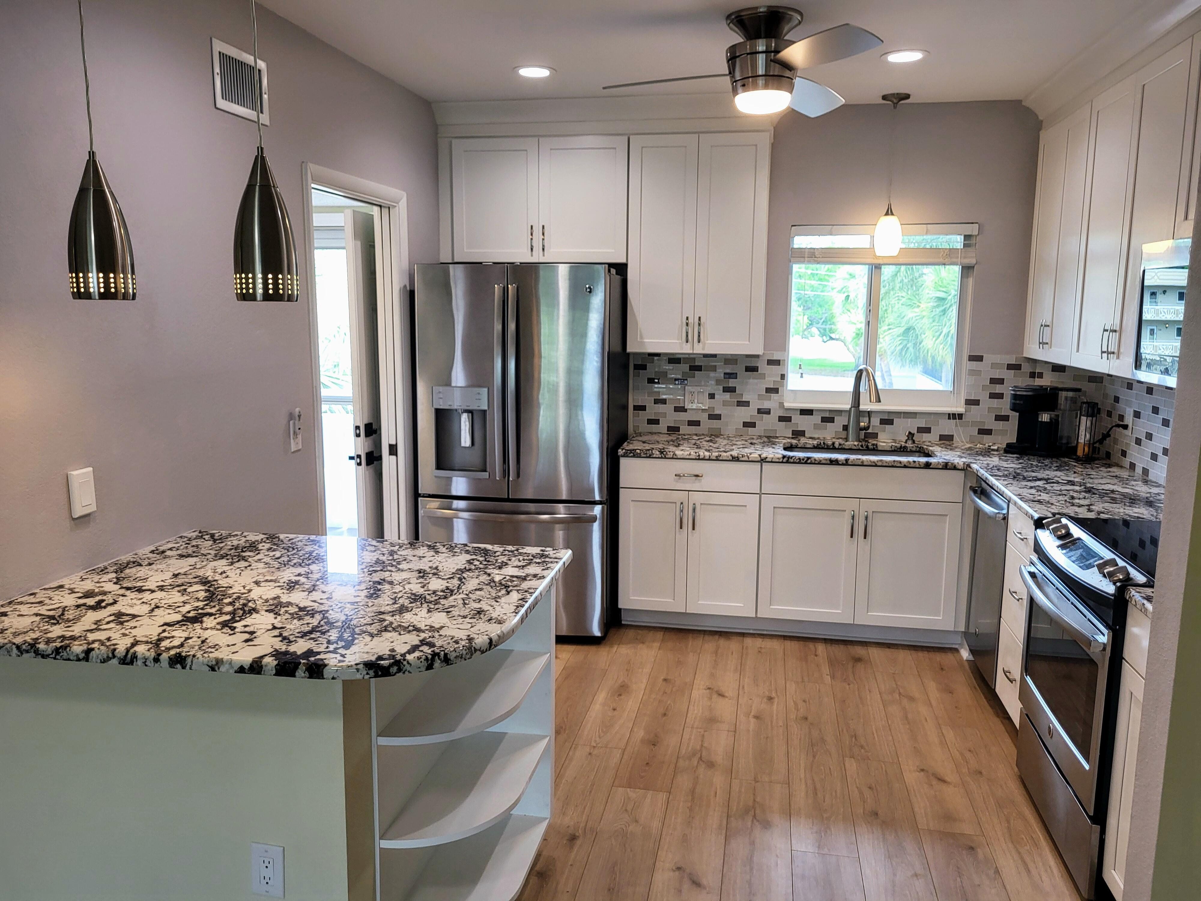 Discover this charming condominium located in the sought after On Top of the World complex in Clearwater. Featuring spacious living areas and abundant natural light this unit has been completely remodeled with an all new kitchen featuring shaker cabinets with slow close doors and drawers, granite counters and new stainless steel appliances. The bathrooms have been redone as well with new tile, new vanities and all new fixtures. With an all new floors, fresh soft yellow paint throughout and all new ceiling fans everything has been done for you. Nothing to do but to move in. This 1400 square foot unit features 8 closets so there's plenty of room for all your stuff. Two large bedrooms and a den mean there's plenty of room for yourself and your guests. On Top of the World has all the amenities you could ever want including two activity centers, two pools, a jacuzzi, a sauna, tennis courts, pickle ball courts, lawn bowling, a cafe, and much much more. There's also a 27 hole golf course which is free for residents so you can golf all day every day if you like. You're also right across the street from Lake Arbor which is nice for fishing or kayaking. There's even storage for kayaks so bring your own from home. Come here and you'll be just 15 minutes from the beaches with all the wonders of Dunedin, Safety Harbor and Tarpon Springs even closer. It's a wonderful place to make wonderful friends and you can even bring your dog along too. The HOA fees include internet, cable, sewer, water, and garbage - everything but the electric bill. Conveniently situated near shopping, dining, and recreational options, this property presents a wonderful opportunity for comfortable living. Some photos have been virtually rendered.